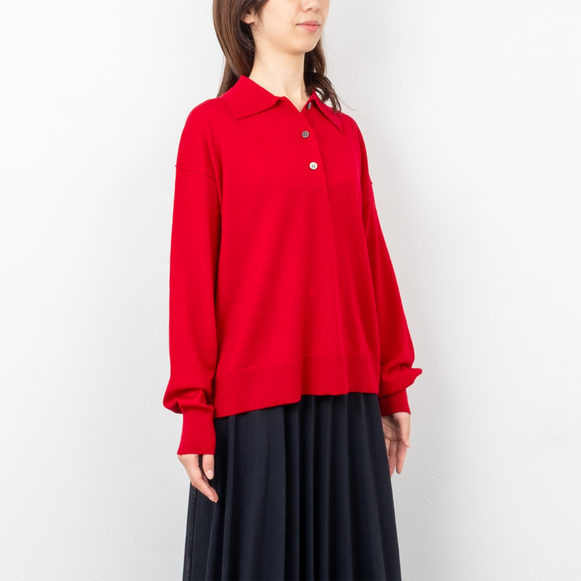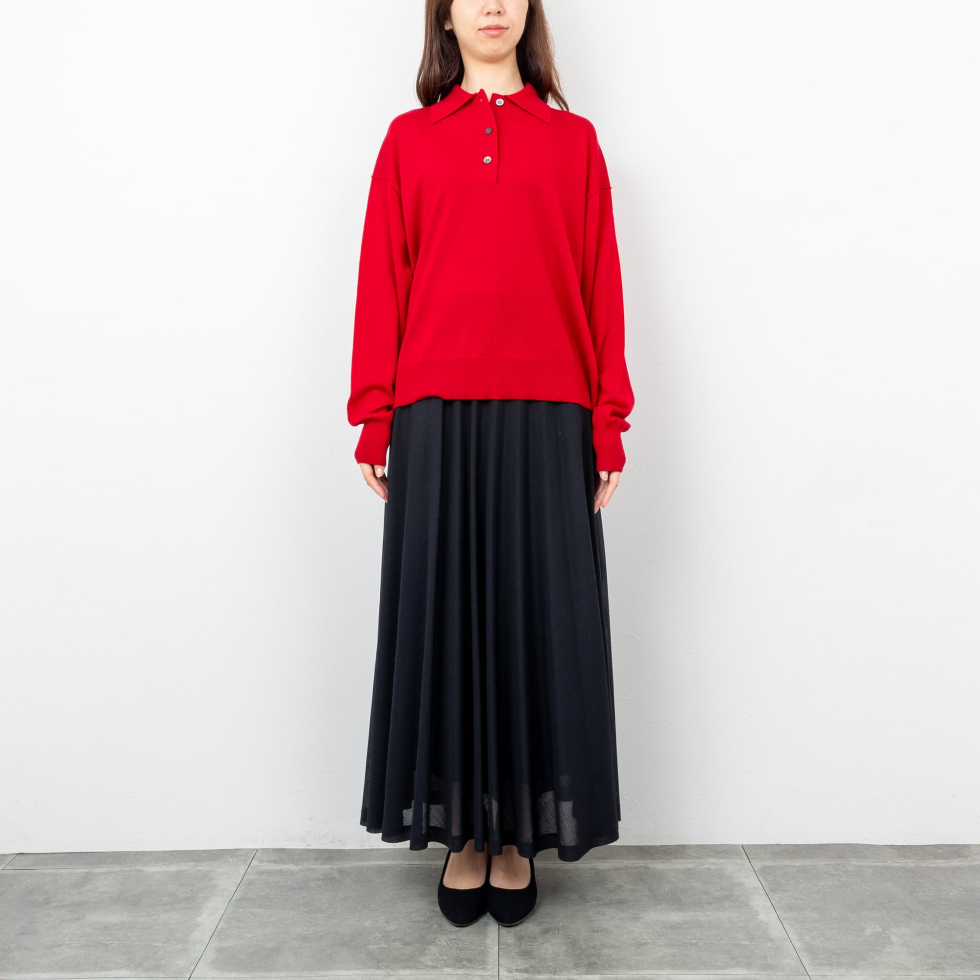 【EMMACULATE/エマキュレイト】ポロ襟ハイゲージニットプルオーバー(レッド)