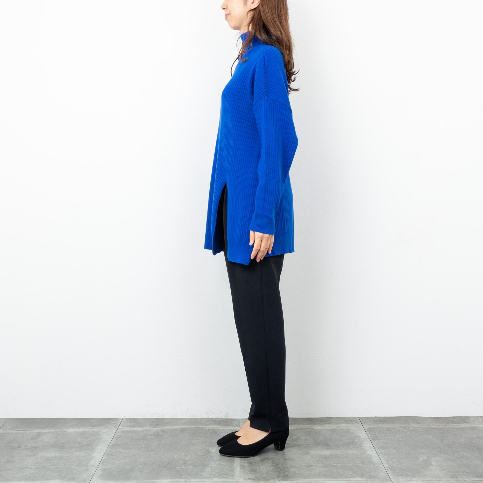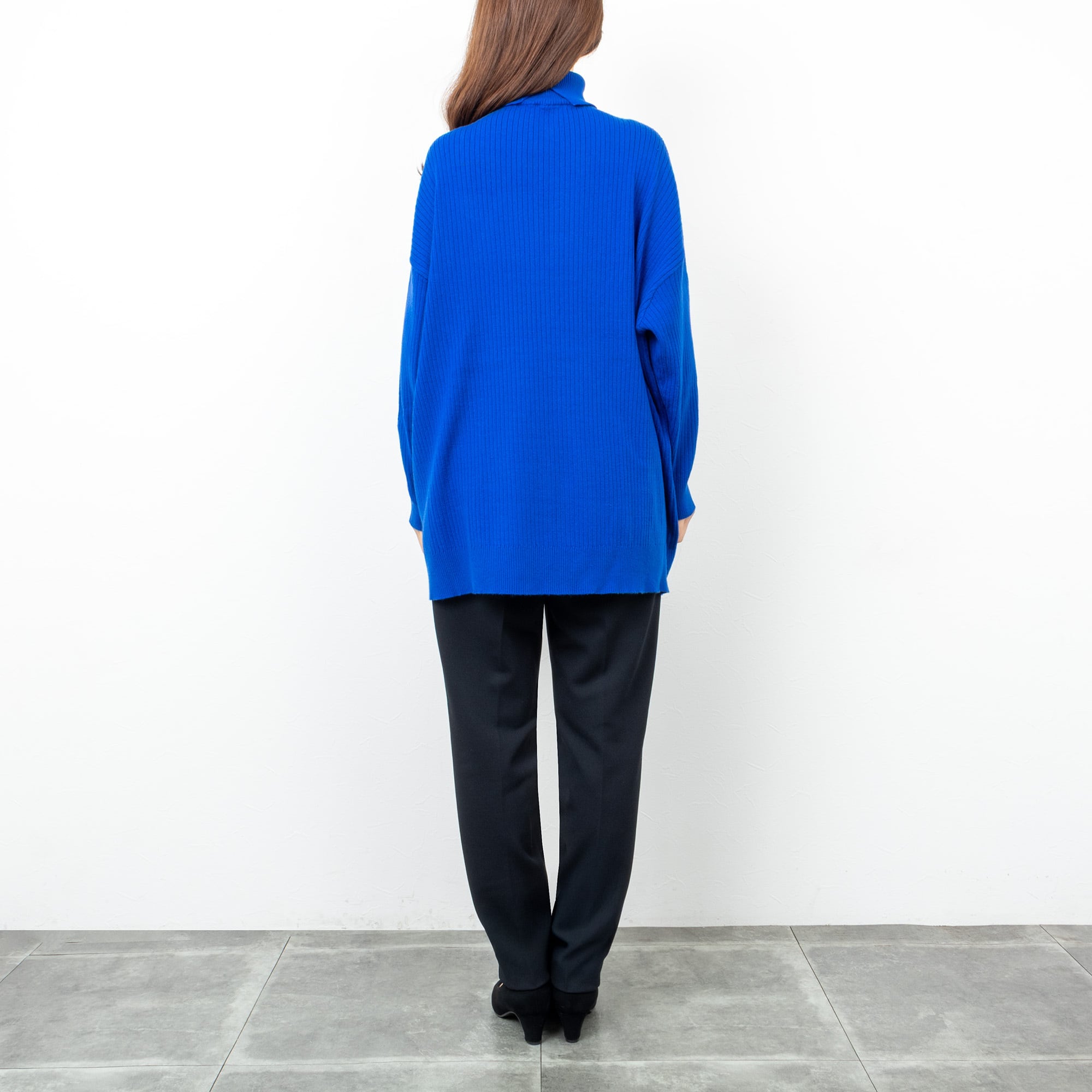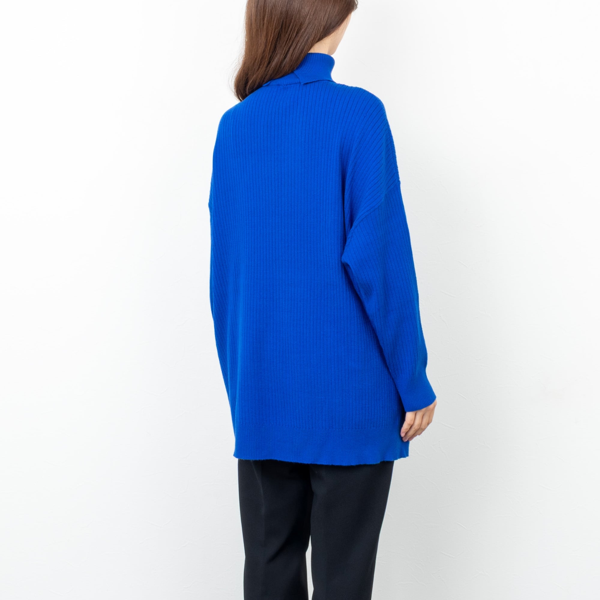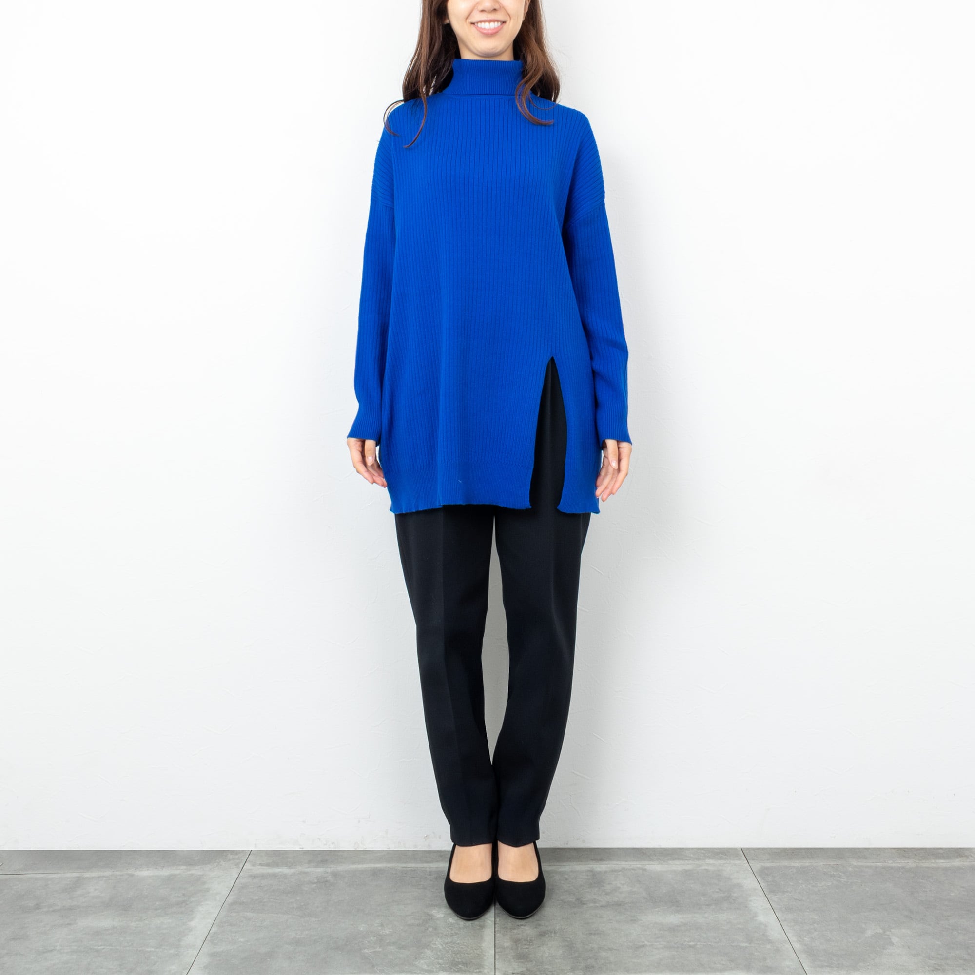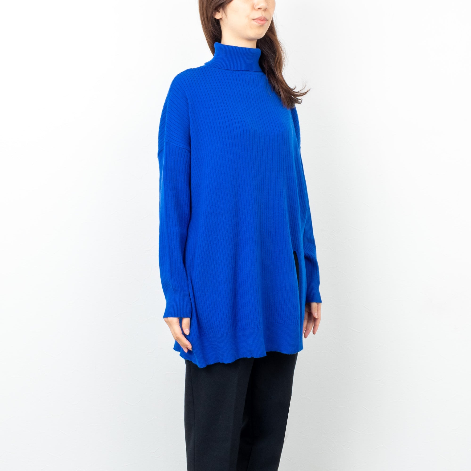 【CYAN TOKYO/シアン トーキョー】アシメスリットオーバータートル(ロイヤルブルー)