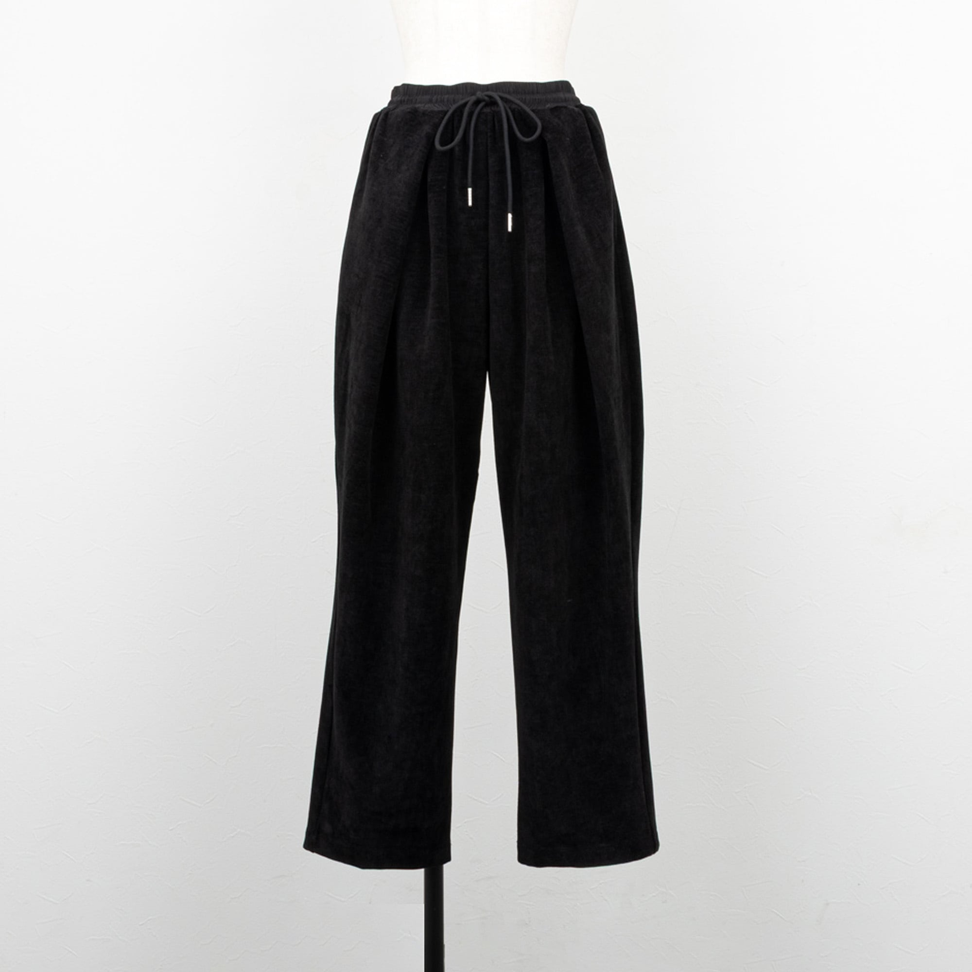【CYAN TOKYO/シアン トーキョー】ガルゼベロアオーバータックテーパードパンツ(ブラック)*再入荷予定