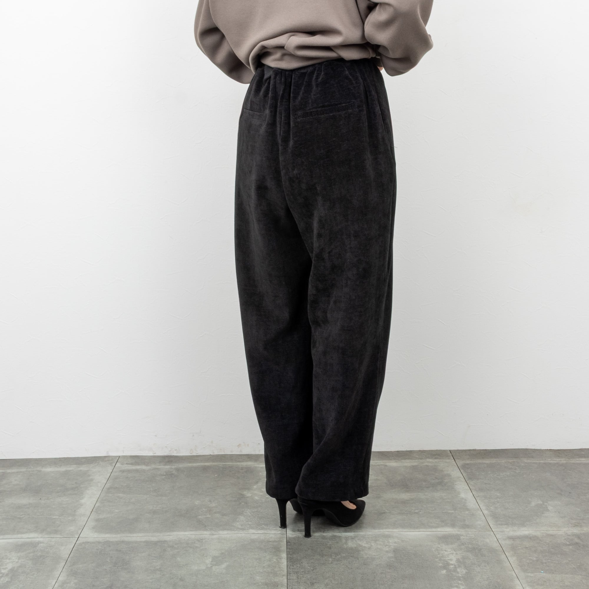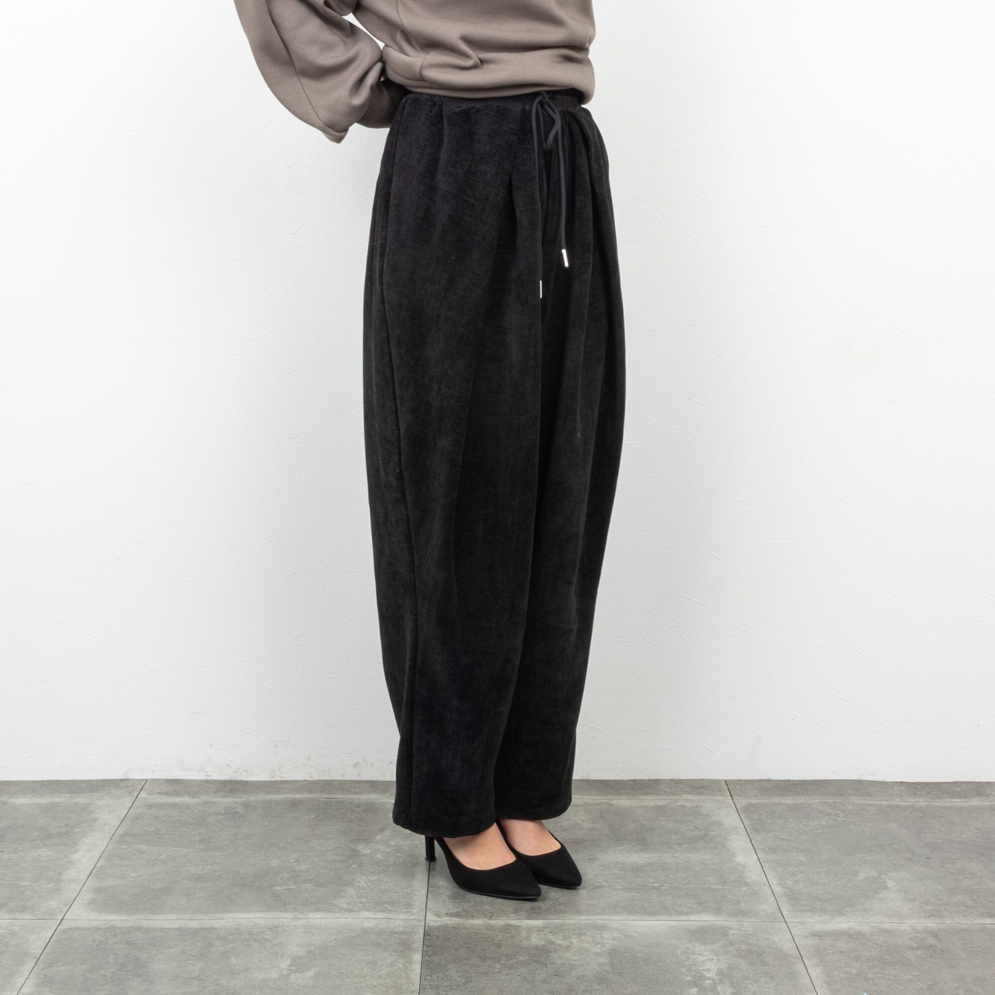 【CYAN TOKYO/シアン トーキョー】ガルゼベロアオーバータックテーパードパンツ(ブラック)