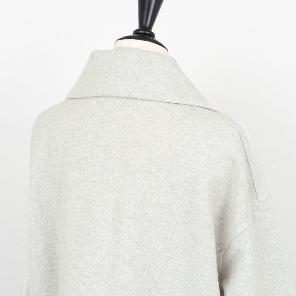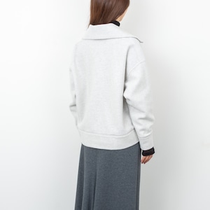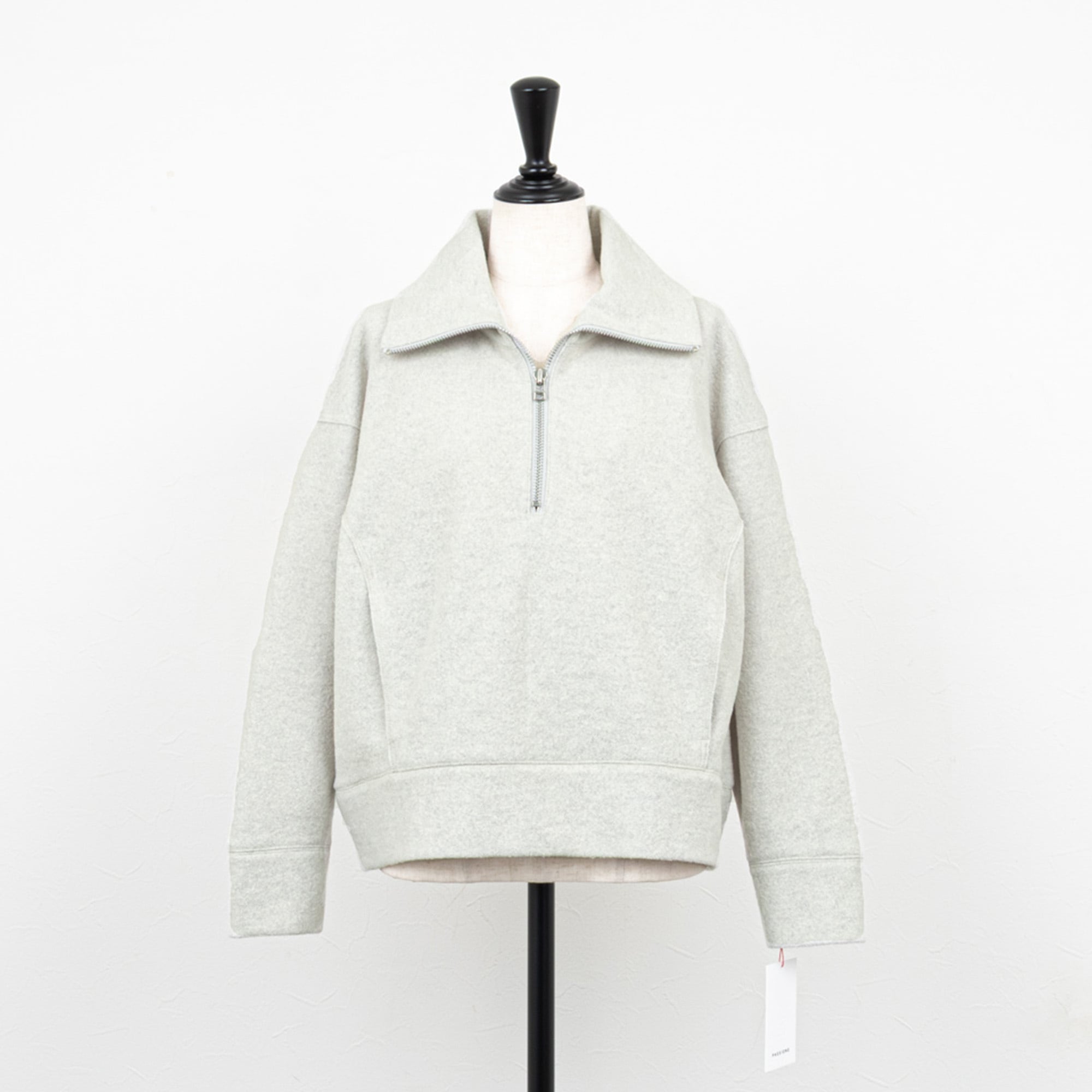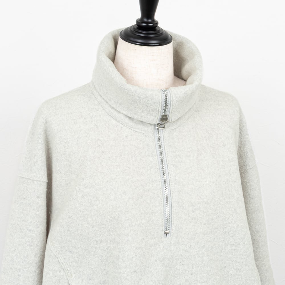 ファスナーの開き具合で、襟の形をアレンジできるハーフジップのプルオーバー。