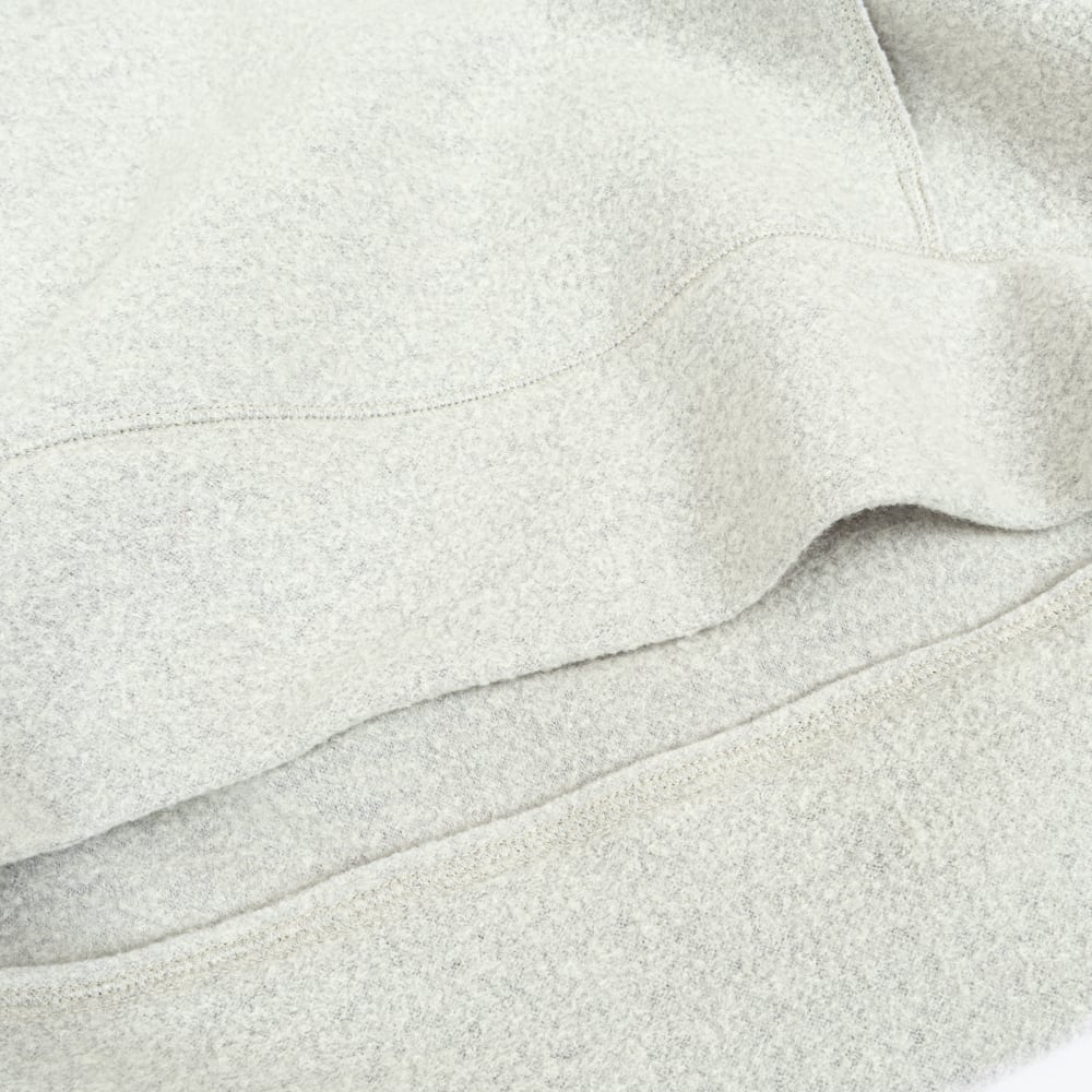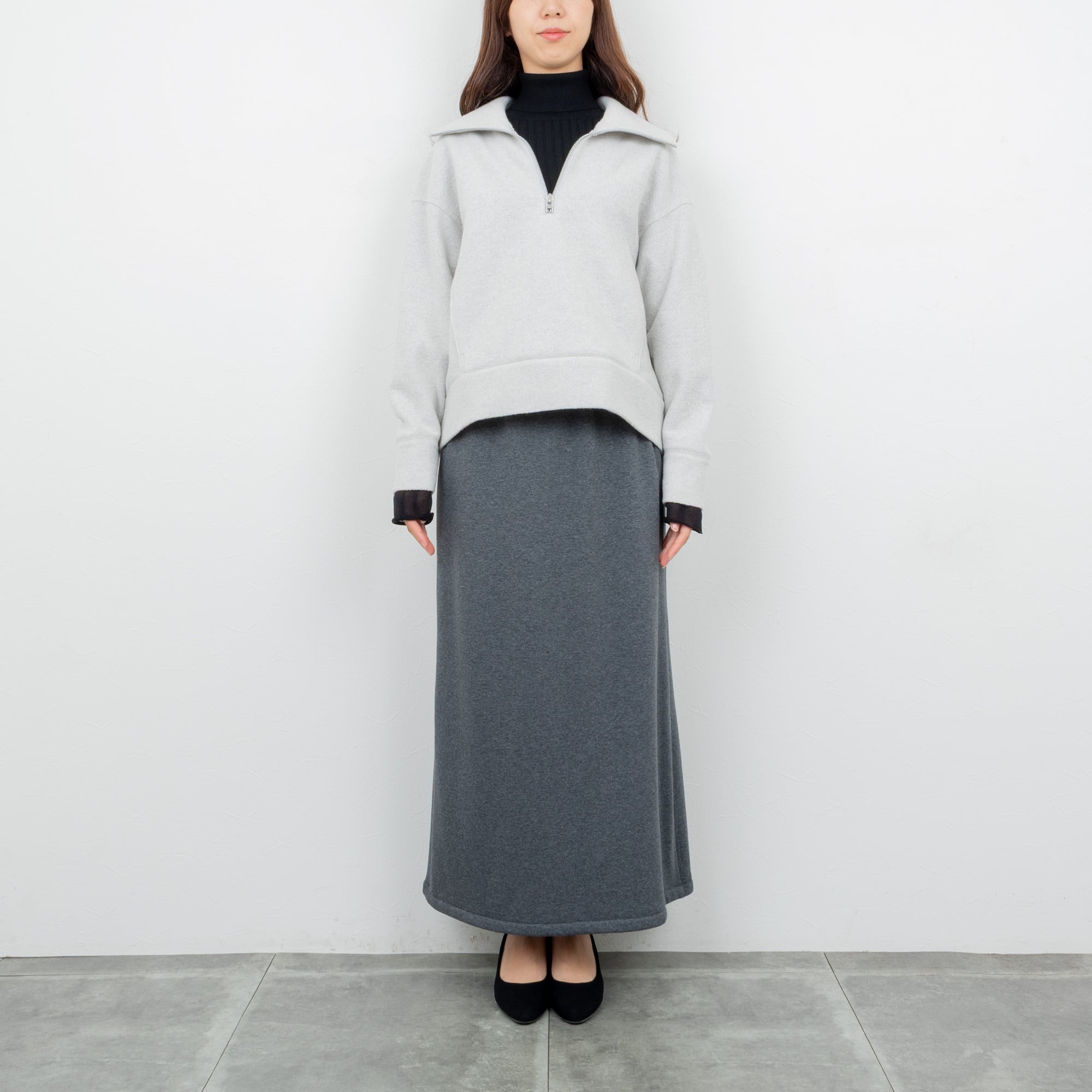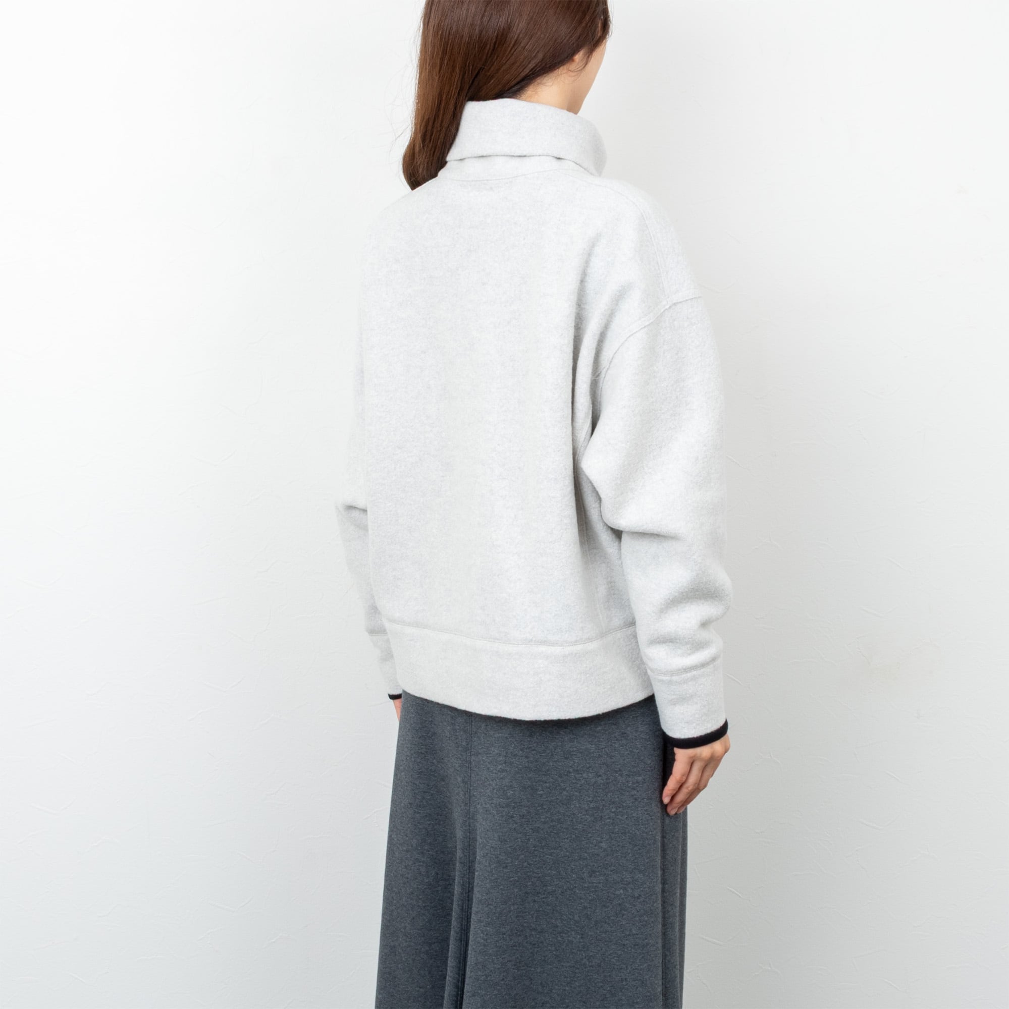 ファスナーの開き具合で、襟の形をアレンジできるハーフジップのプルオーバー。