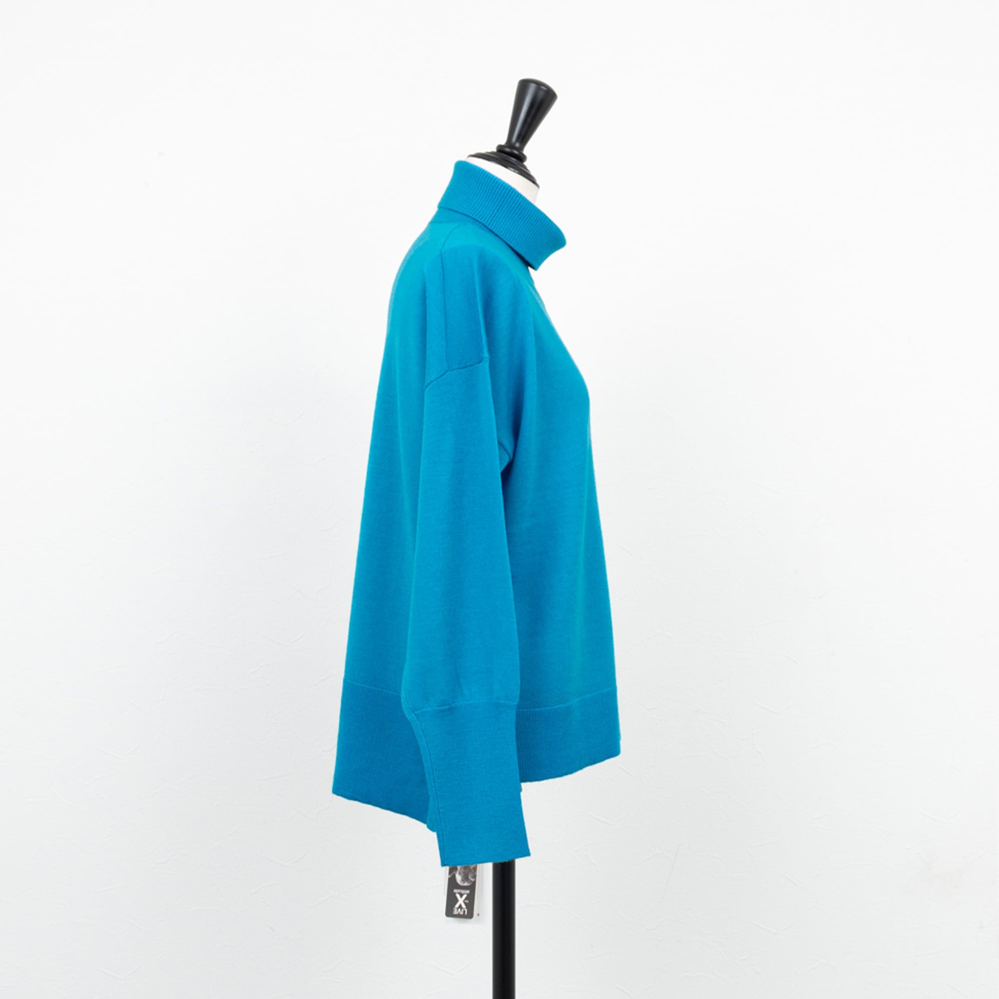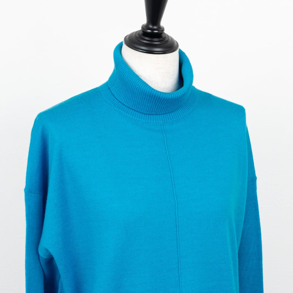 【PASSIONE/パシオーネ】タートルネックバックロングハイゲージニット(ブルー)
