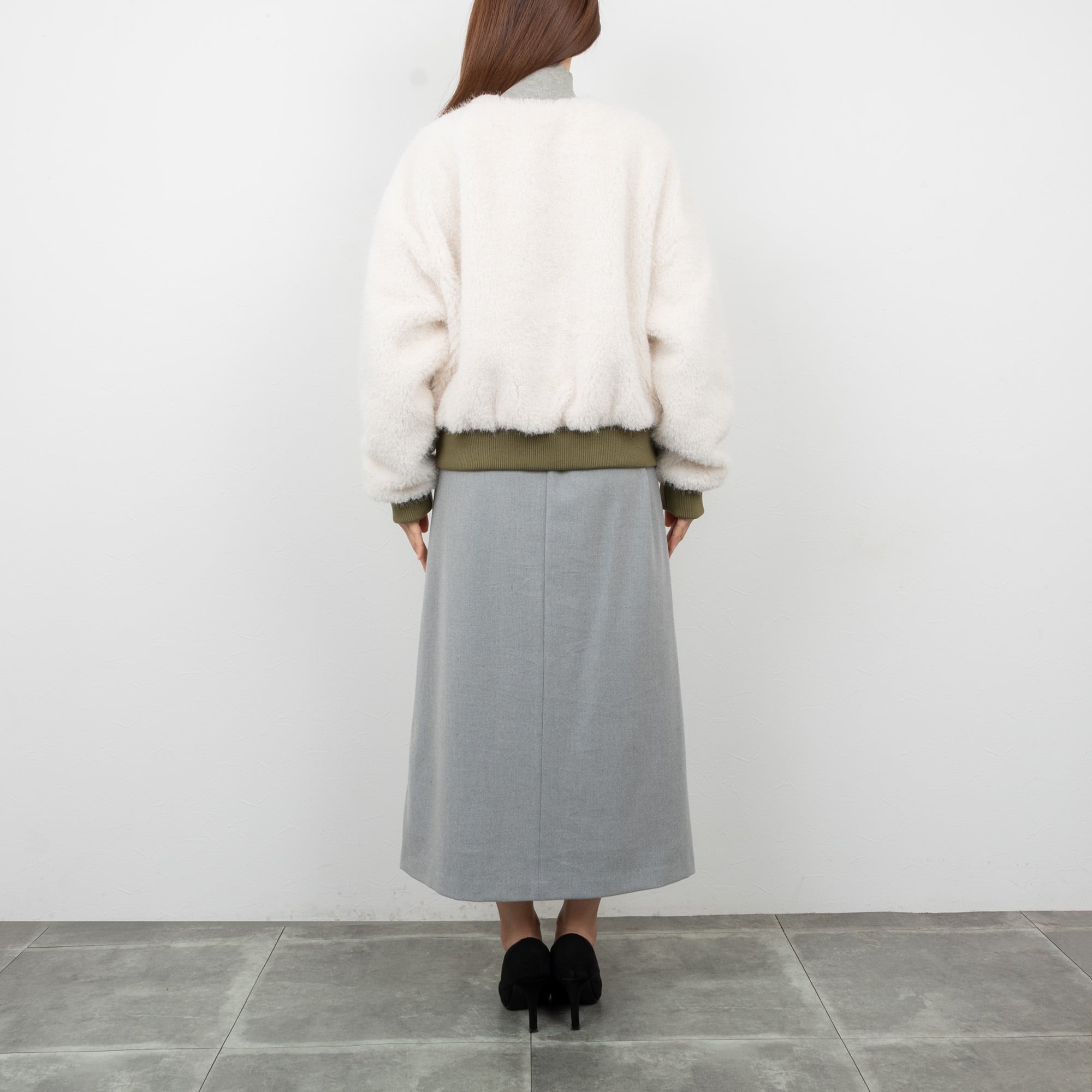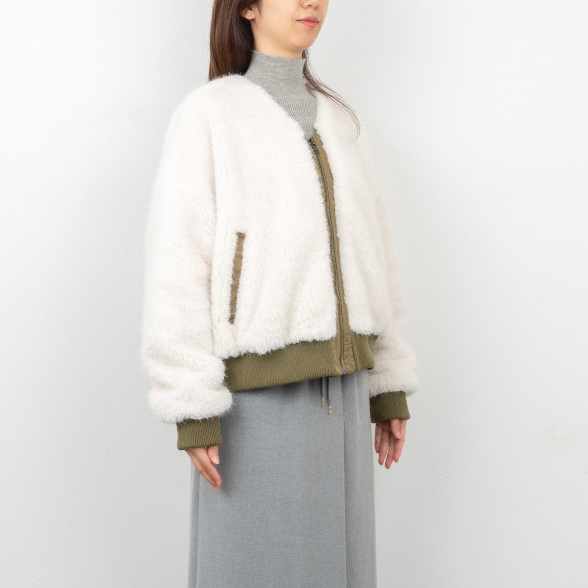 【PASSIONE/パシオーネ】エコファーバイカラーVネックブルゾン(オフホワイト)