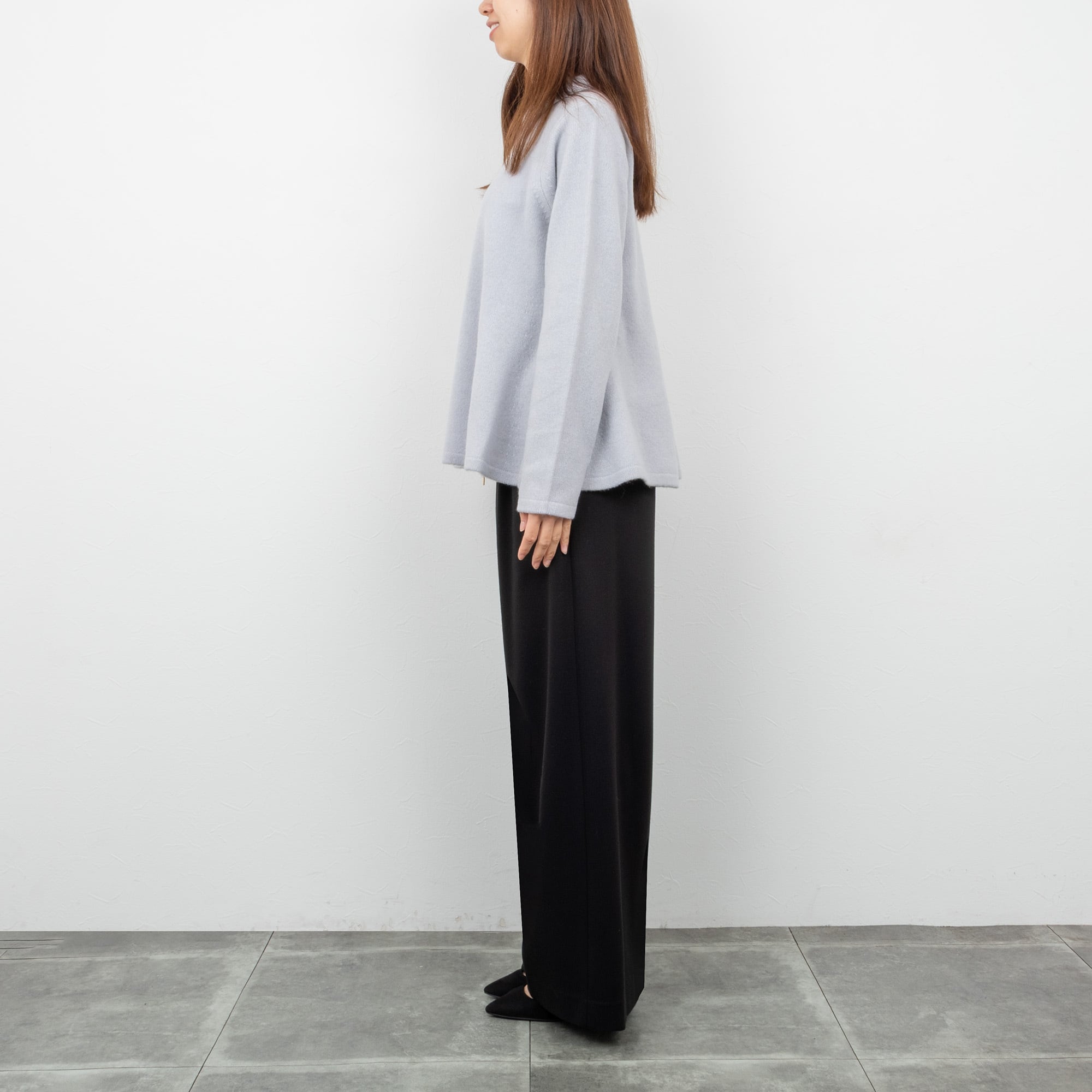 適度なハリ感がきれいなストレートラインを保ち、きれいめにも使いやすいアイテムです。