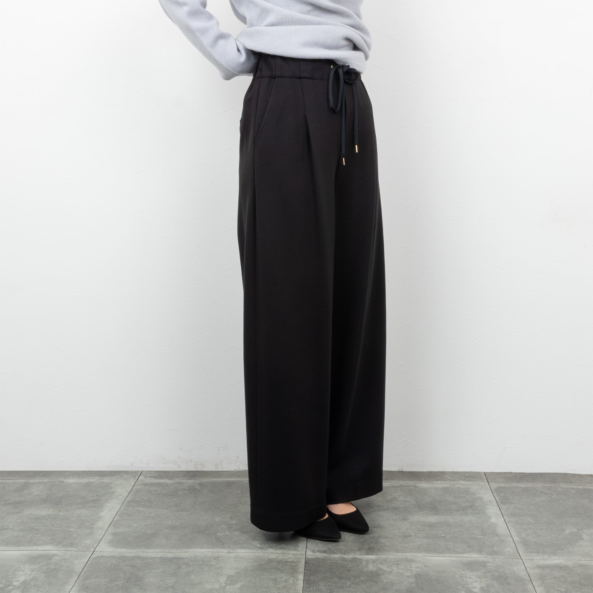 きれいめにも使いやすいジャージー素材のワイドパンツ