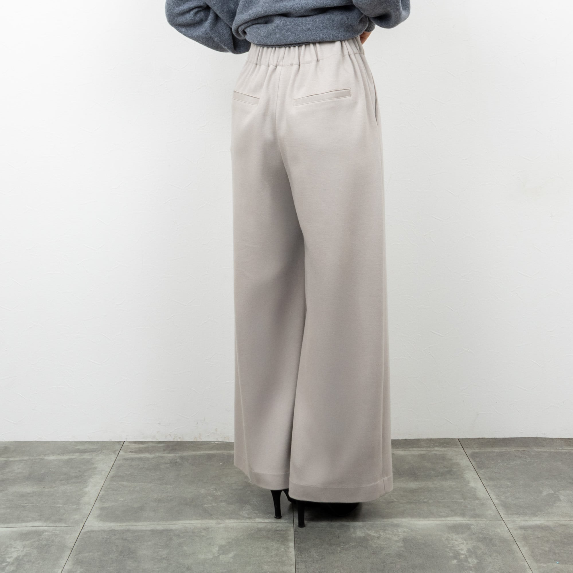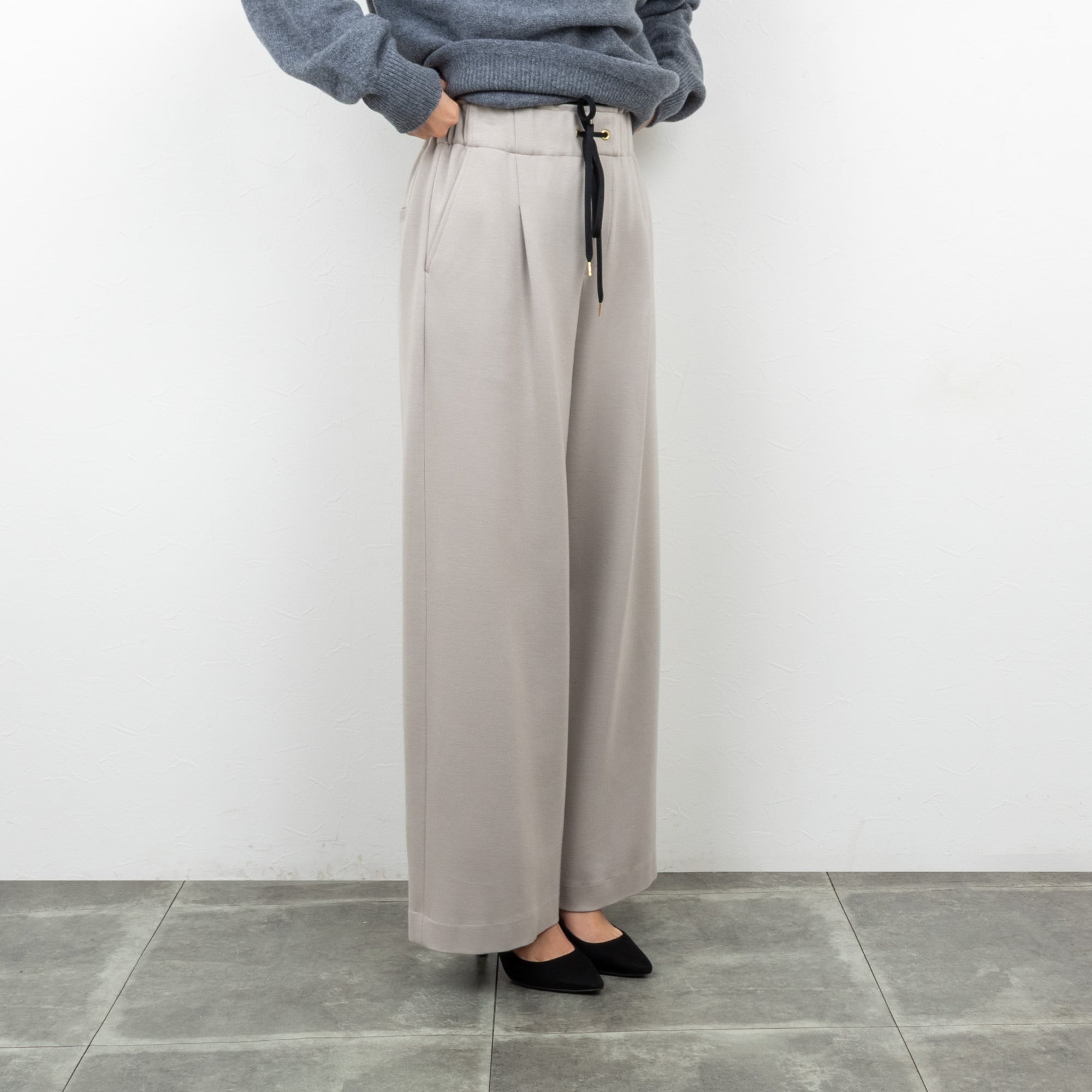 きれいめにも使いやすいジャージー素材のワイドパンツ