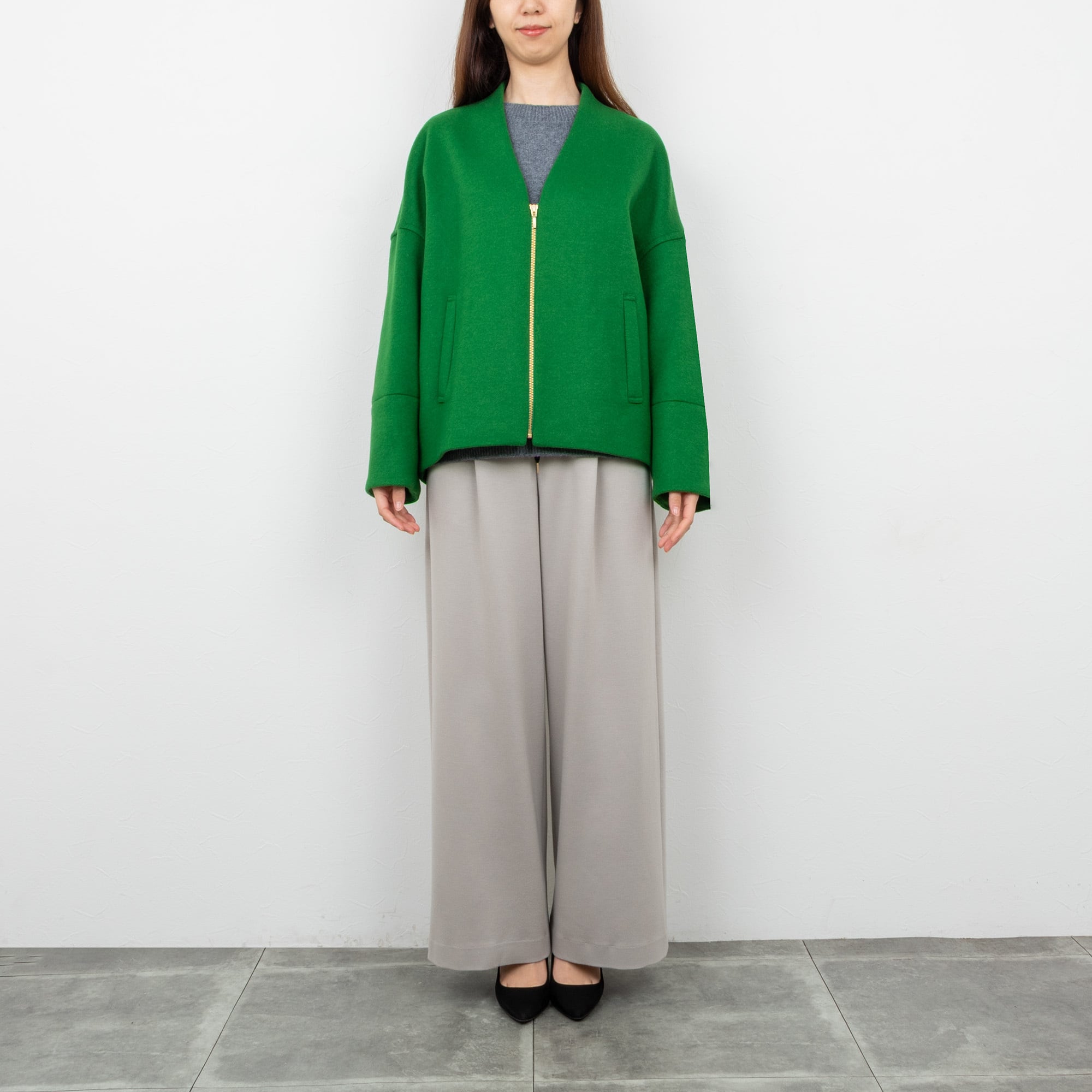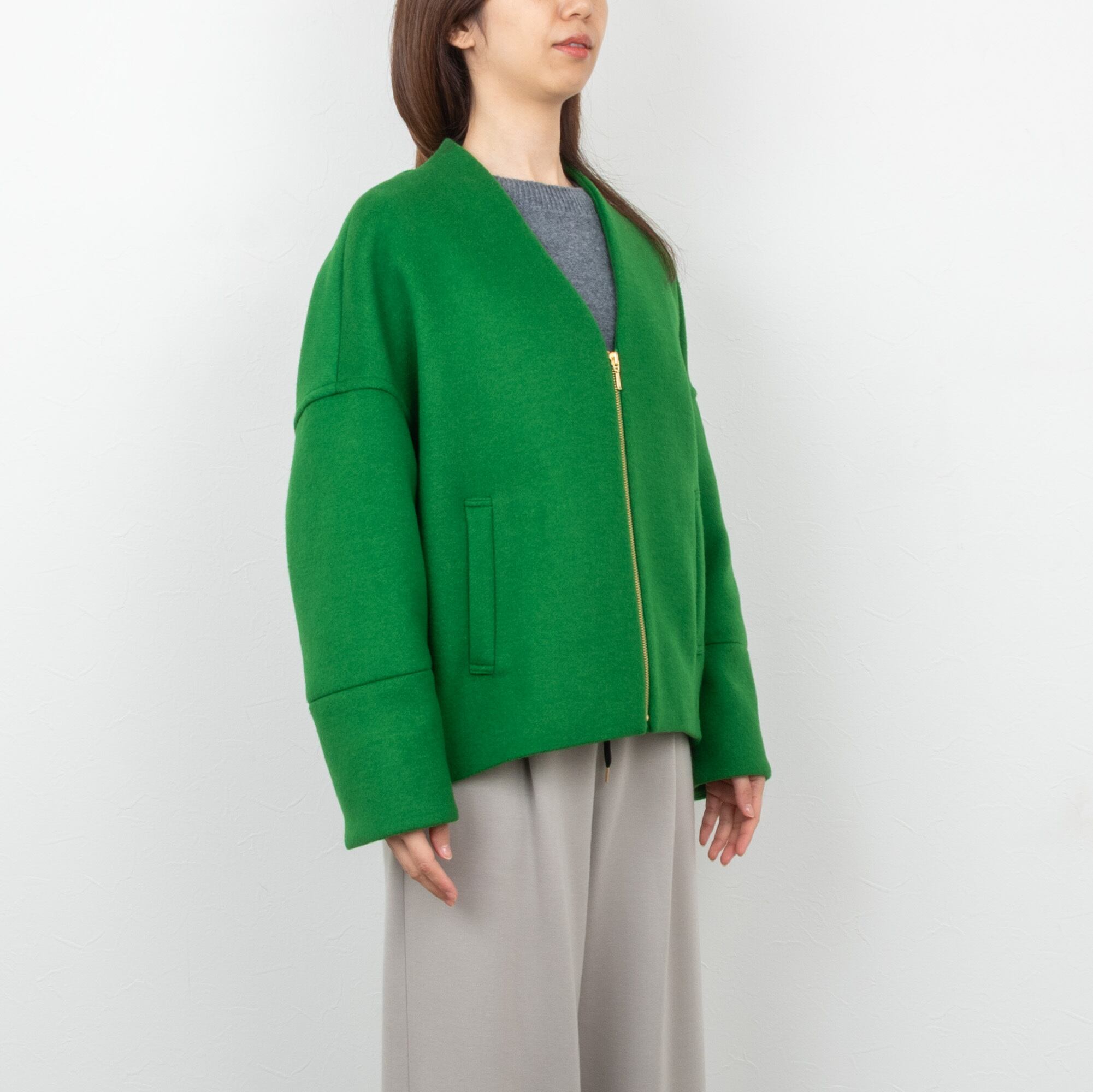 【PASSIONE/パシオーネ】フロントジップコクーンジャケット(グリーン)