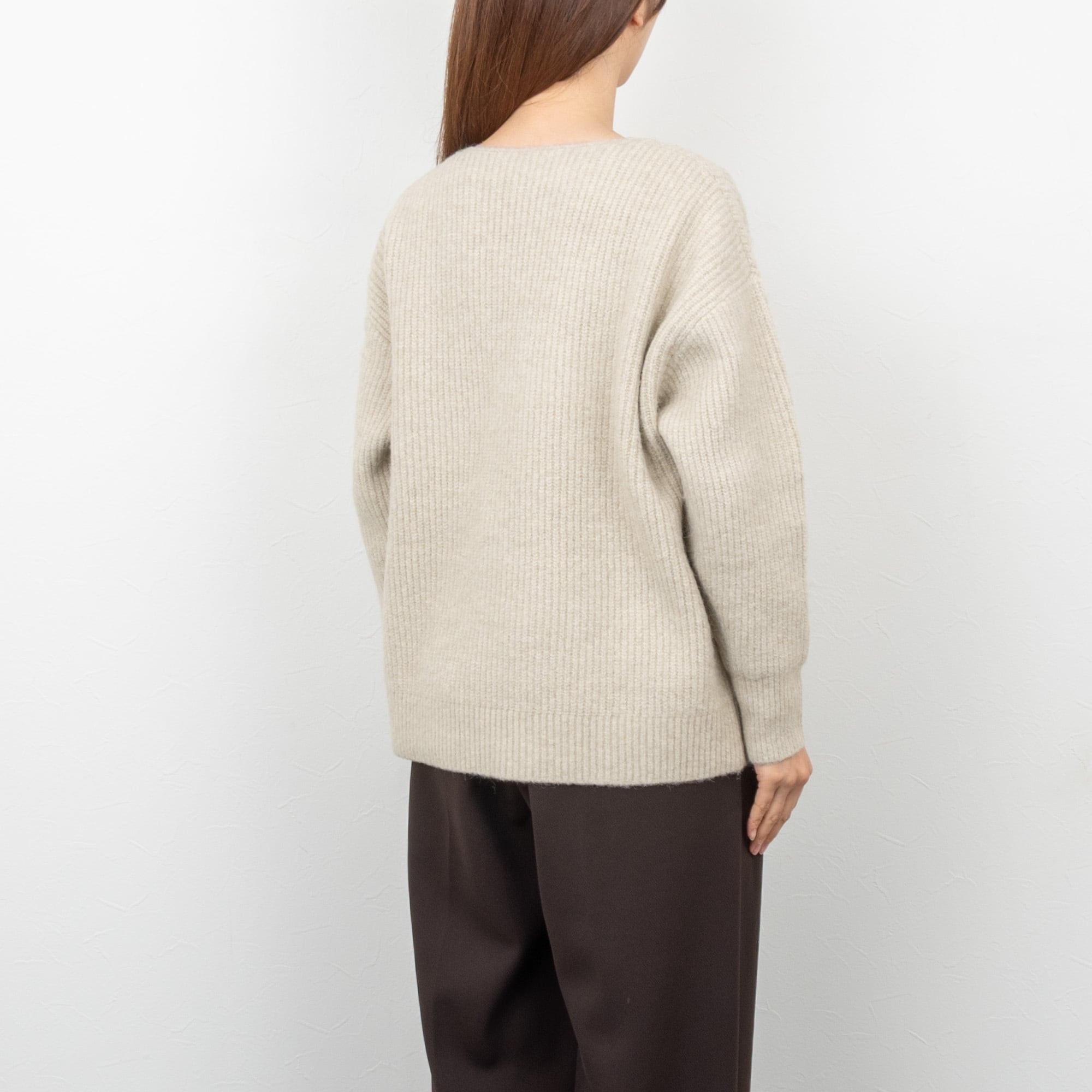 ドロップショルダーでややゆとりのある身幅に、ベーシックなラインのニットプルオーバー。