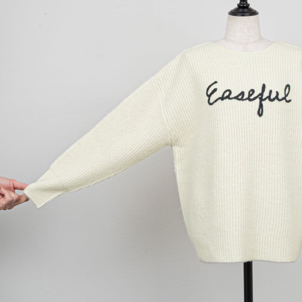 【Dignite collier/ディニテコリエ】畦編み刺繍ロゴニットプルオーバー(ホワイト)