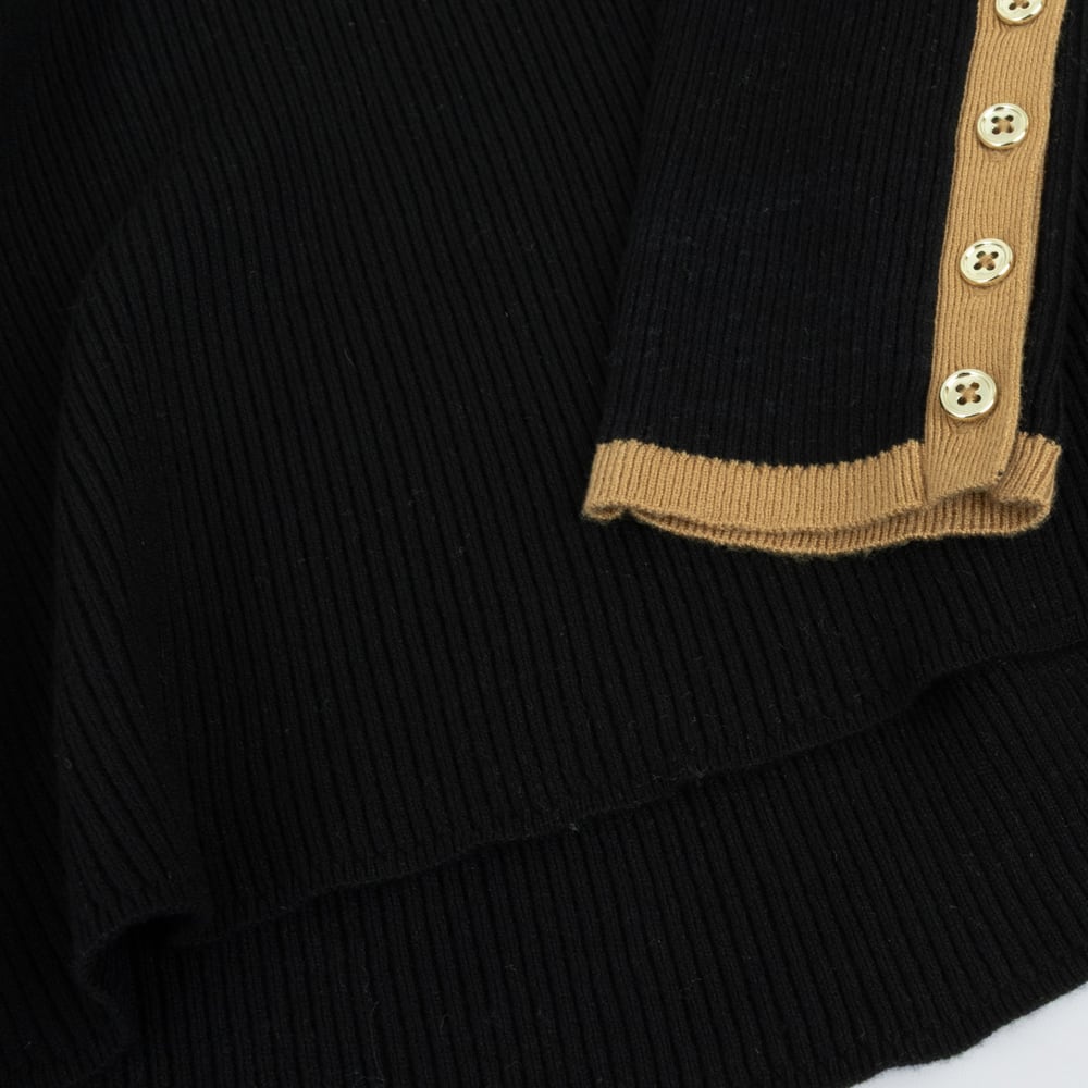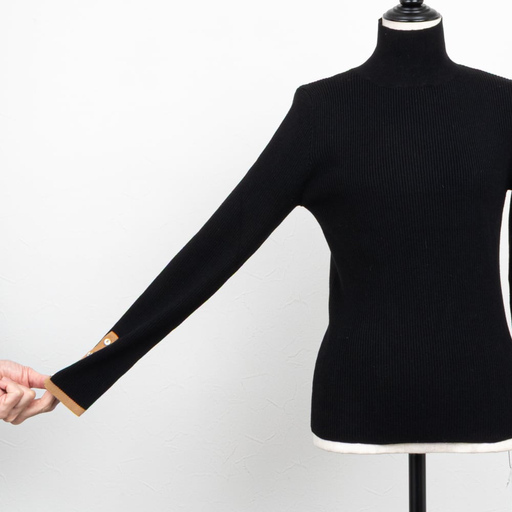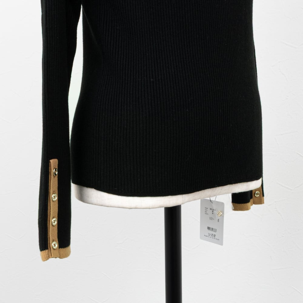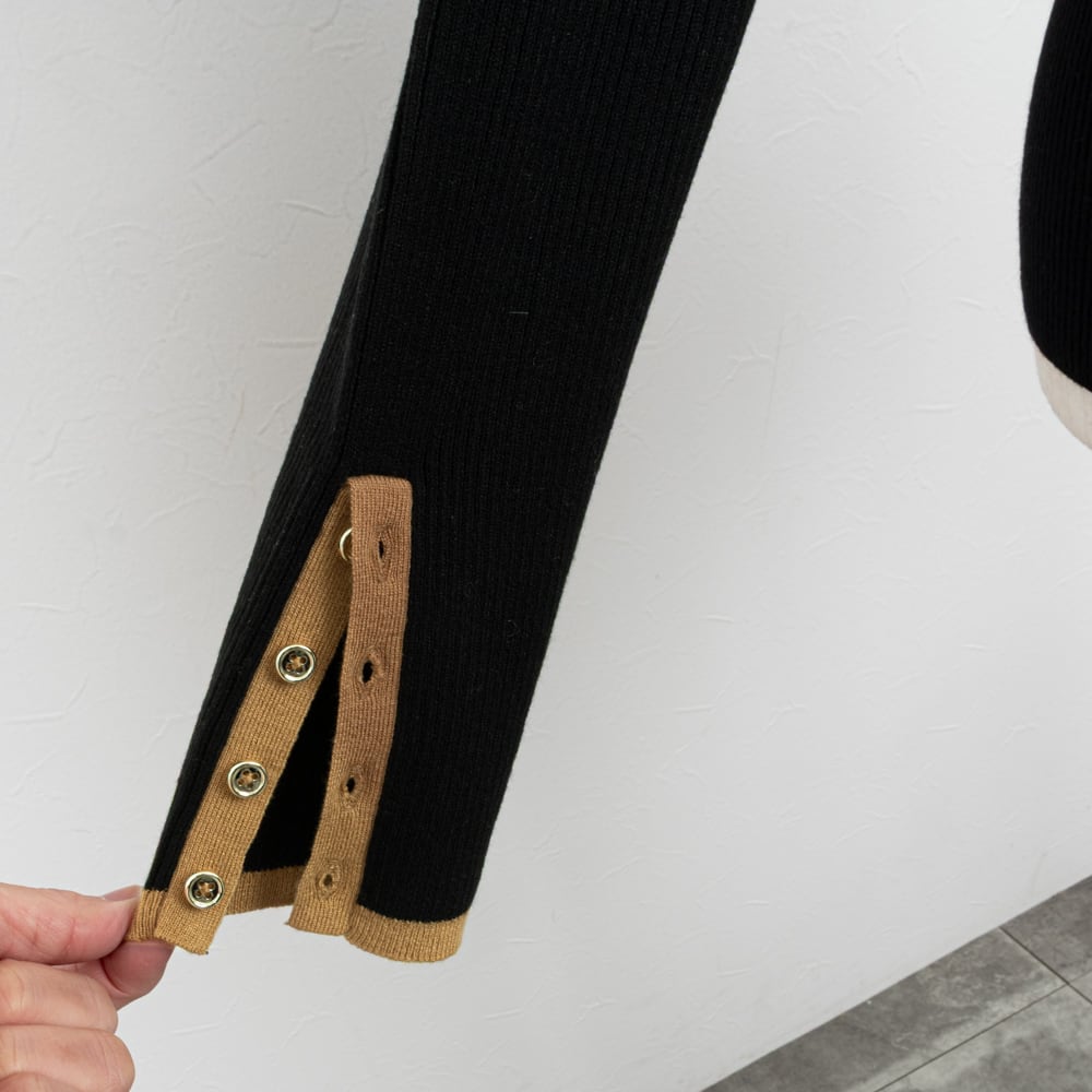 【QTUME/クチューム】アクセントカラーリブニットトップス(ブラック)