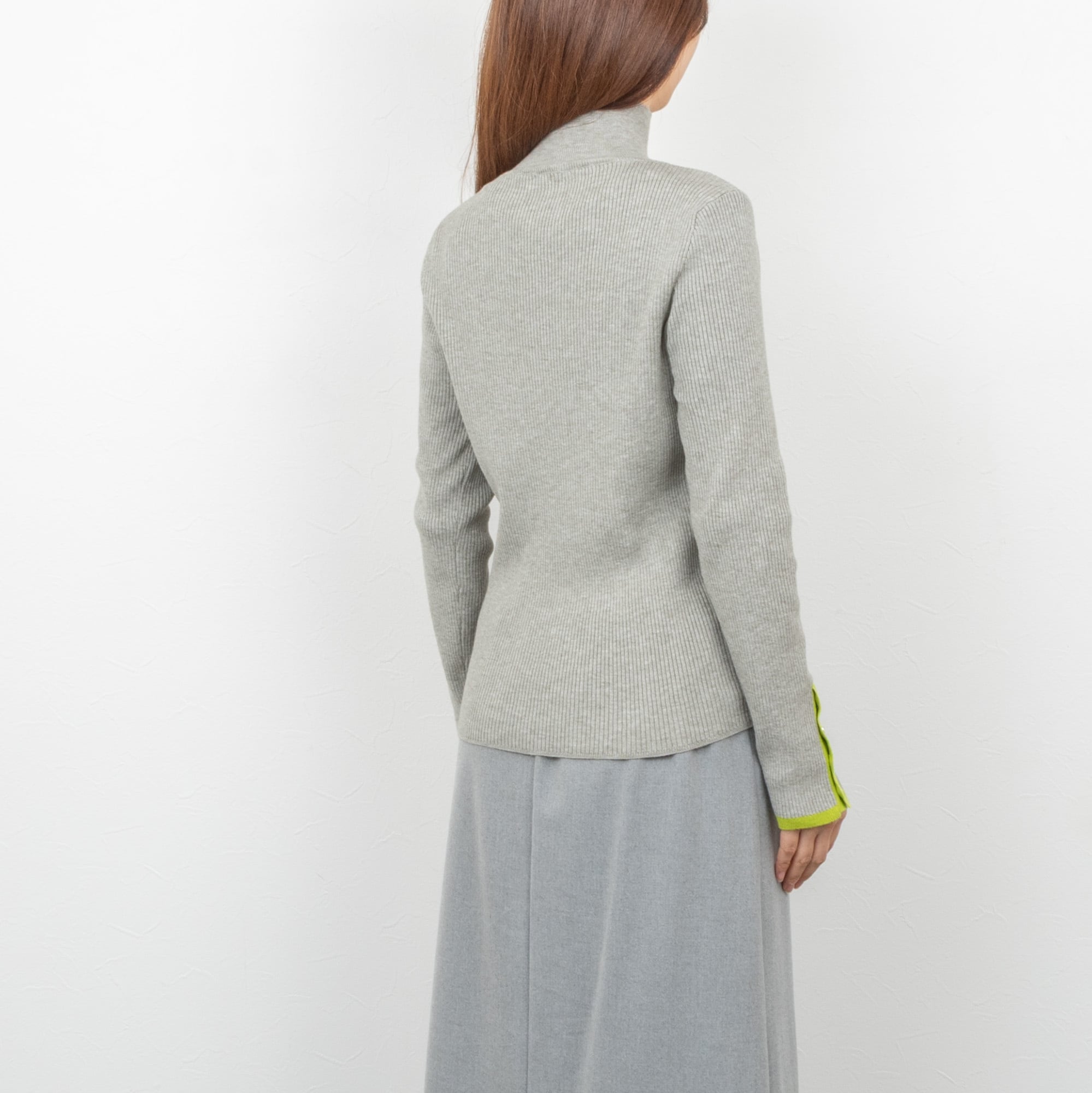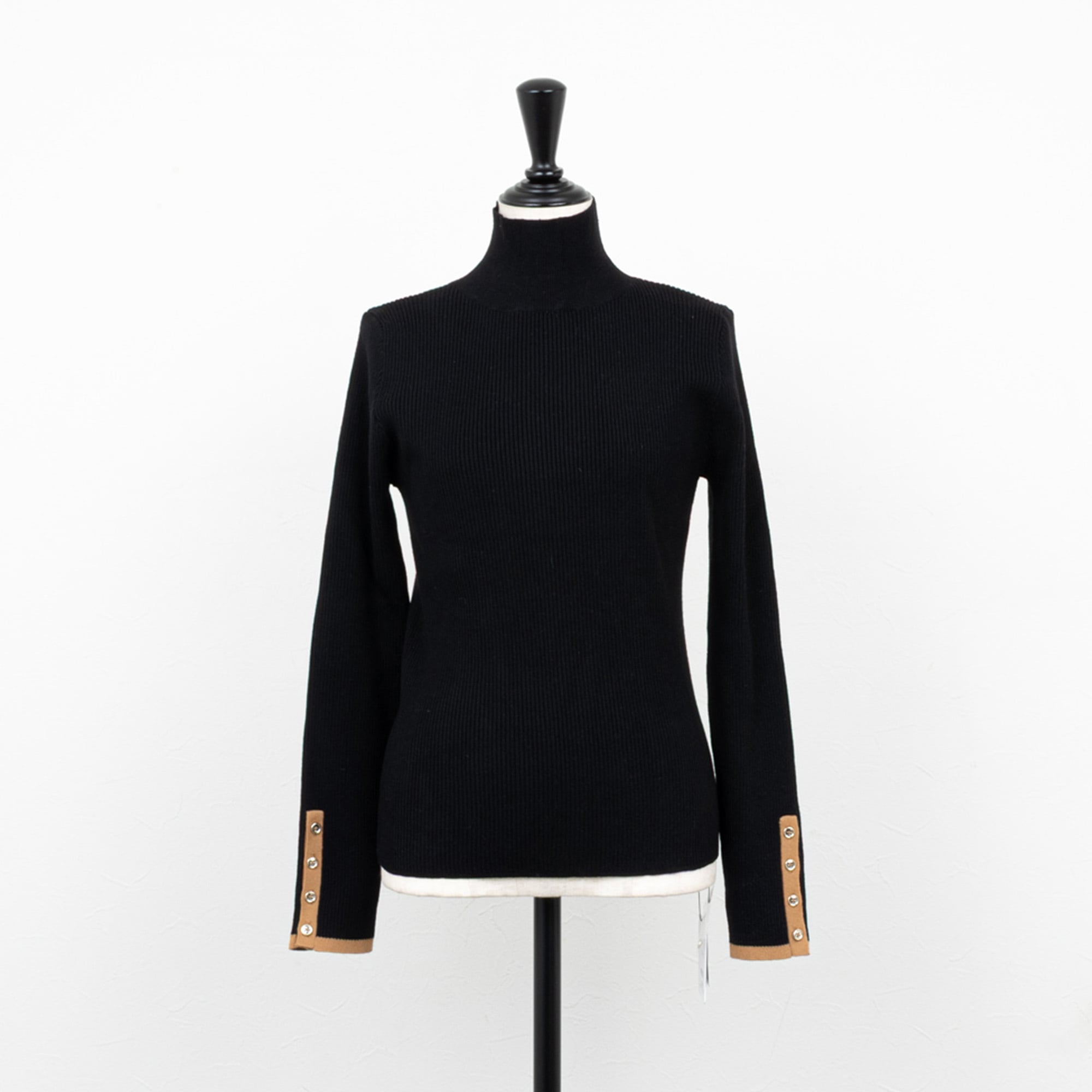 インナーにも使いやすいベーシックなハイネックのリブニット。