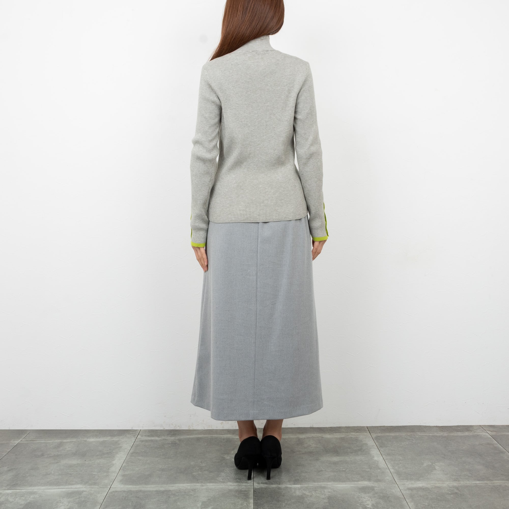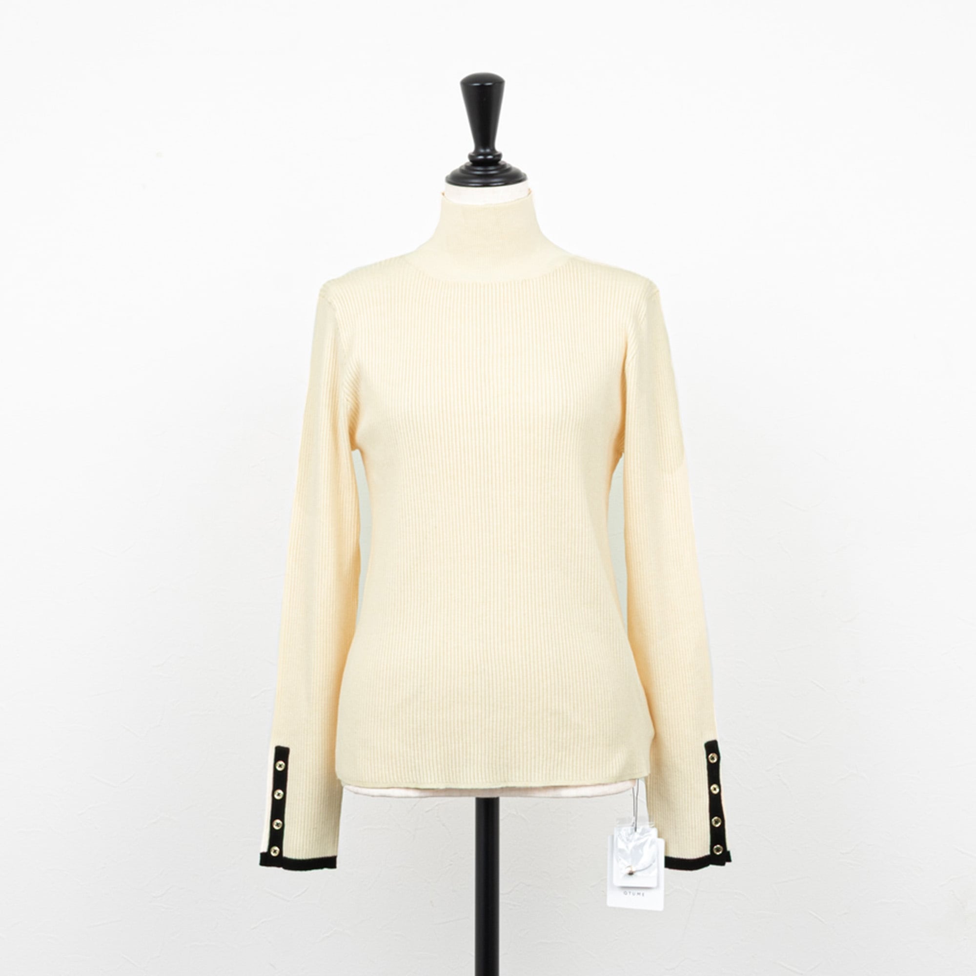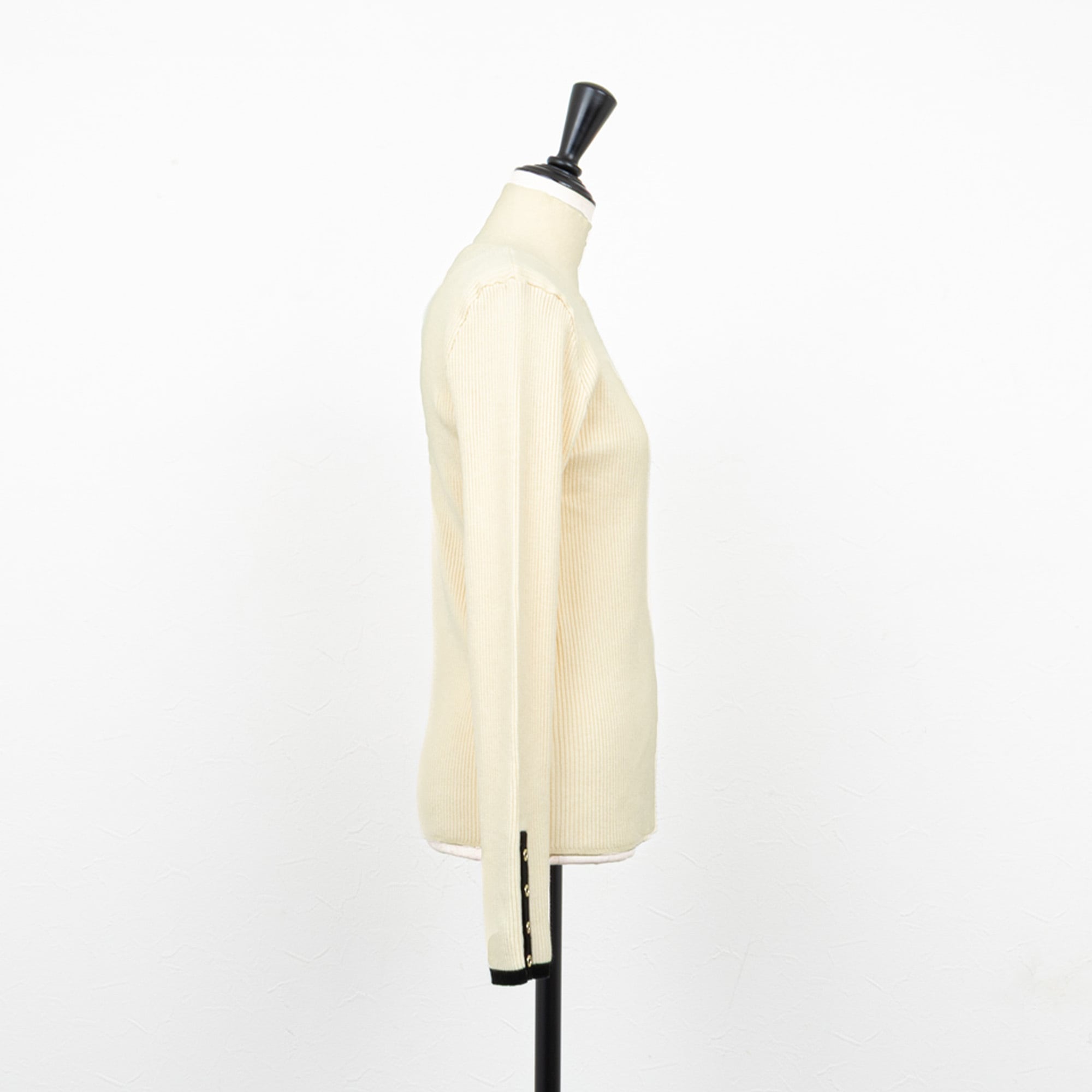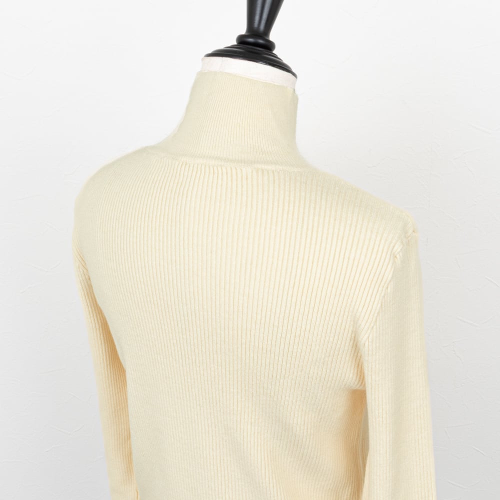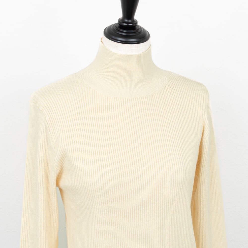 インナーにも使いやすいベーシックなハイネックのリブニット。