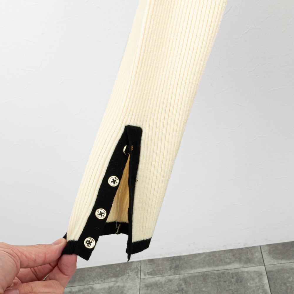 【QTUME/クチューム】アクセントカラーリブニットトップス(オフホワイト)