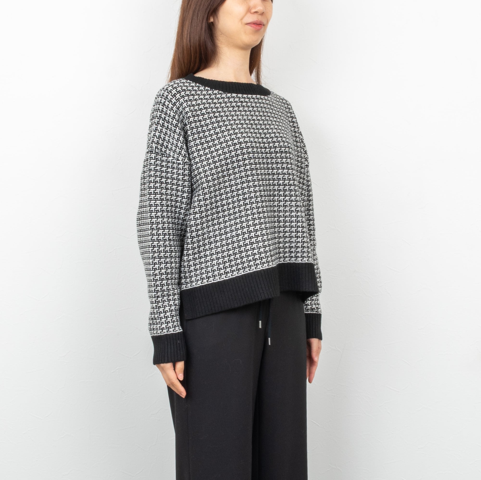 【QTUME/クチューム】ウールライクツイードジャガードトップス(ブラック)