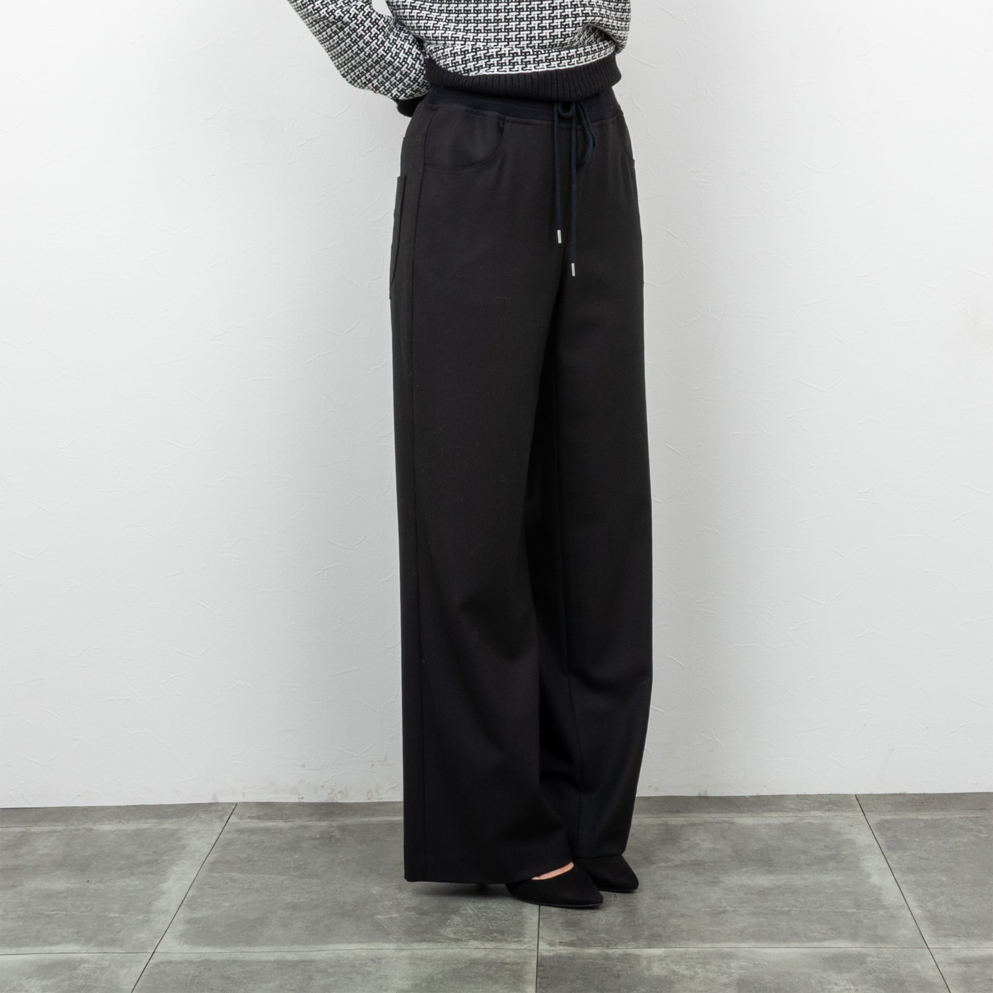 エレガントな落ち感のあるウール調の生地に、裏微起毛を施した暖かみのあるパンツ。