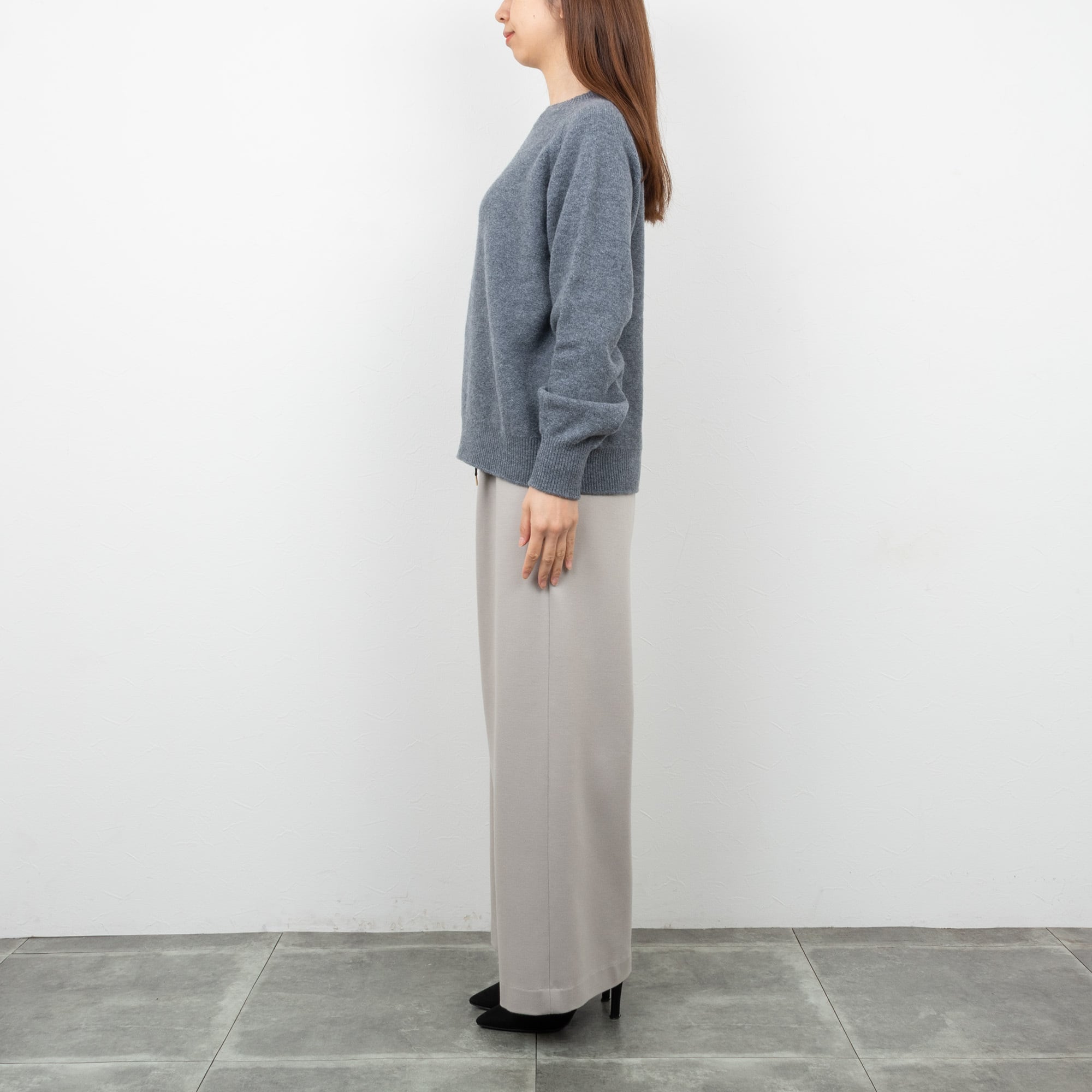 デニムからスラックスまで。きれいめからカジュアルまであらゆるボトムに合わせやすいアイテム。上質な素材感が大人っぽく品良く見せます。