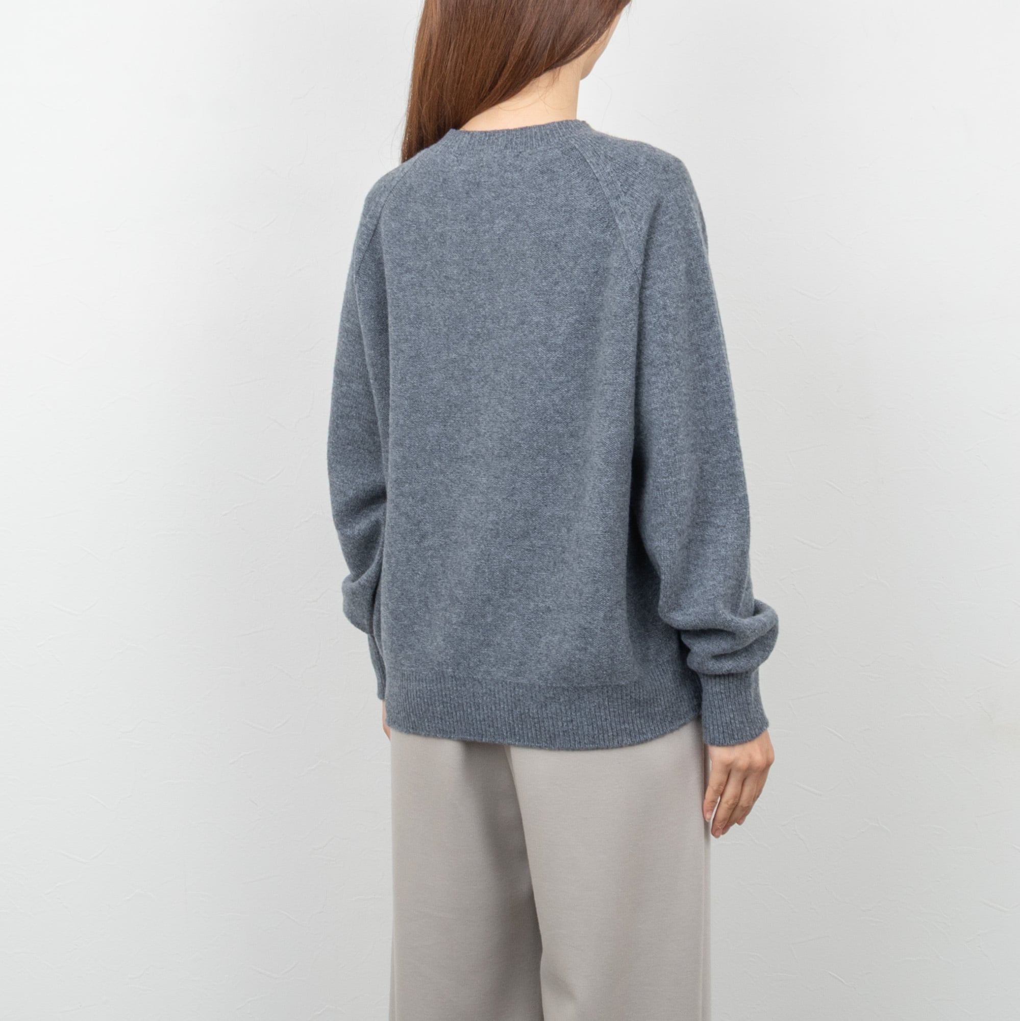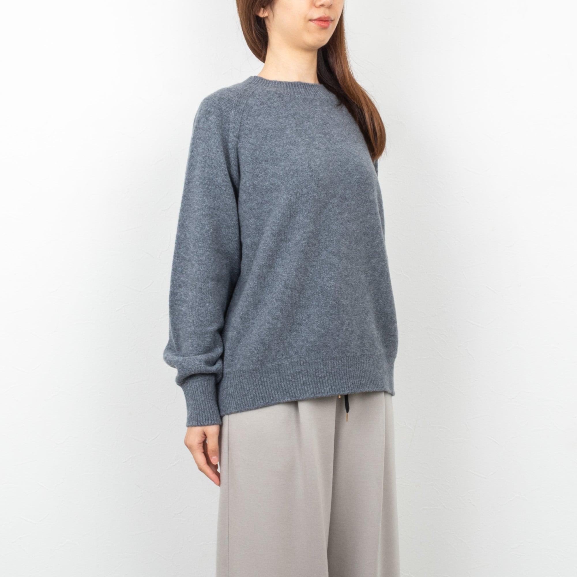 ベーシックなクルーネックに、腕周りにゆとりのあるラグランスリーブ。