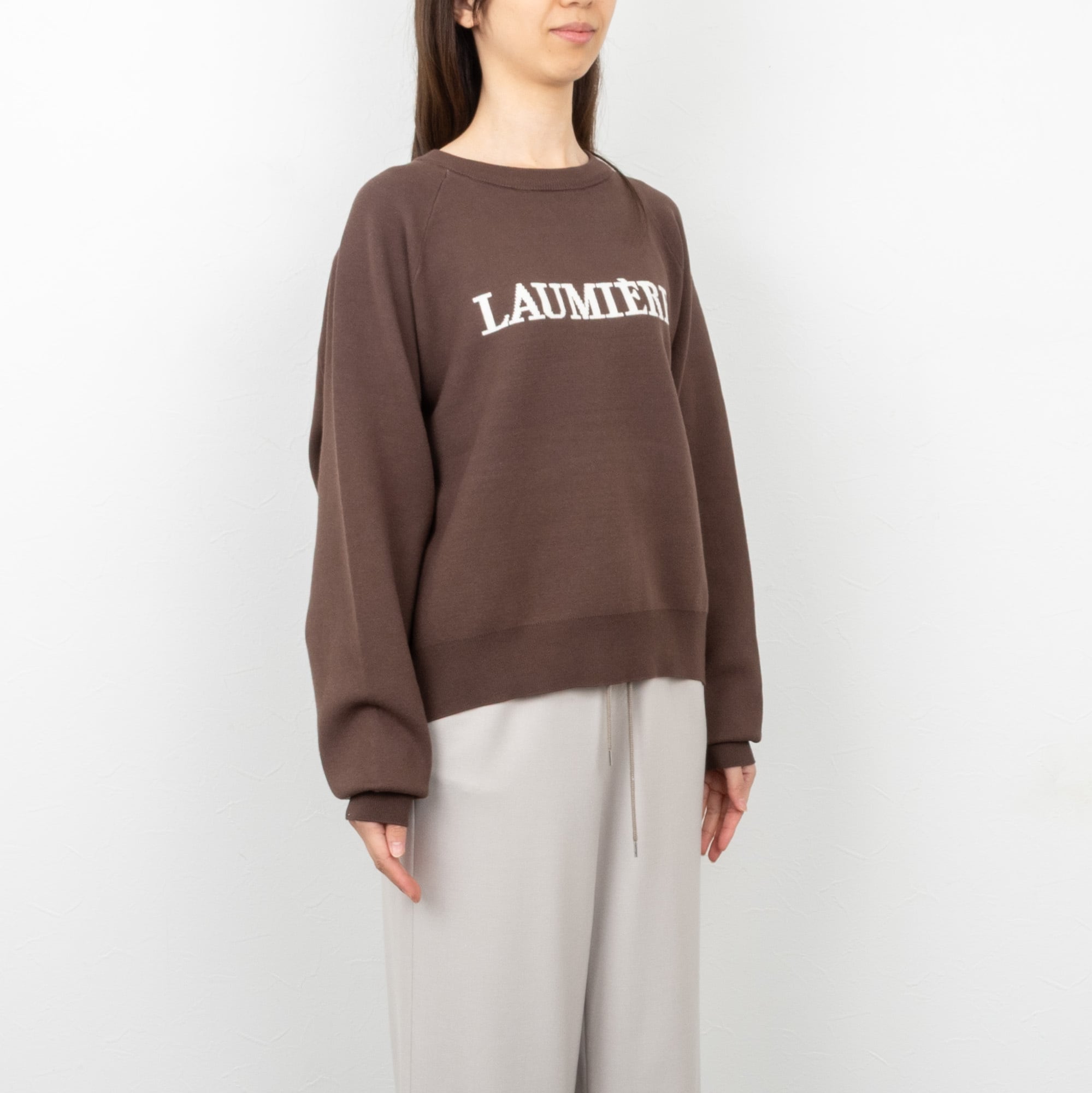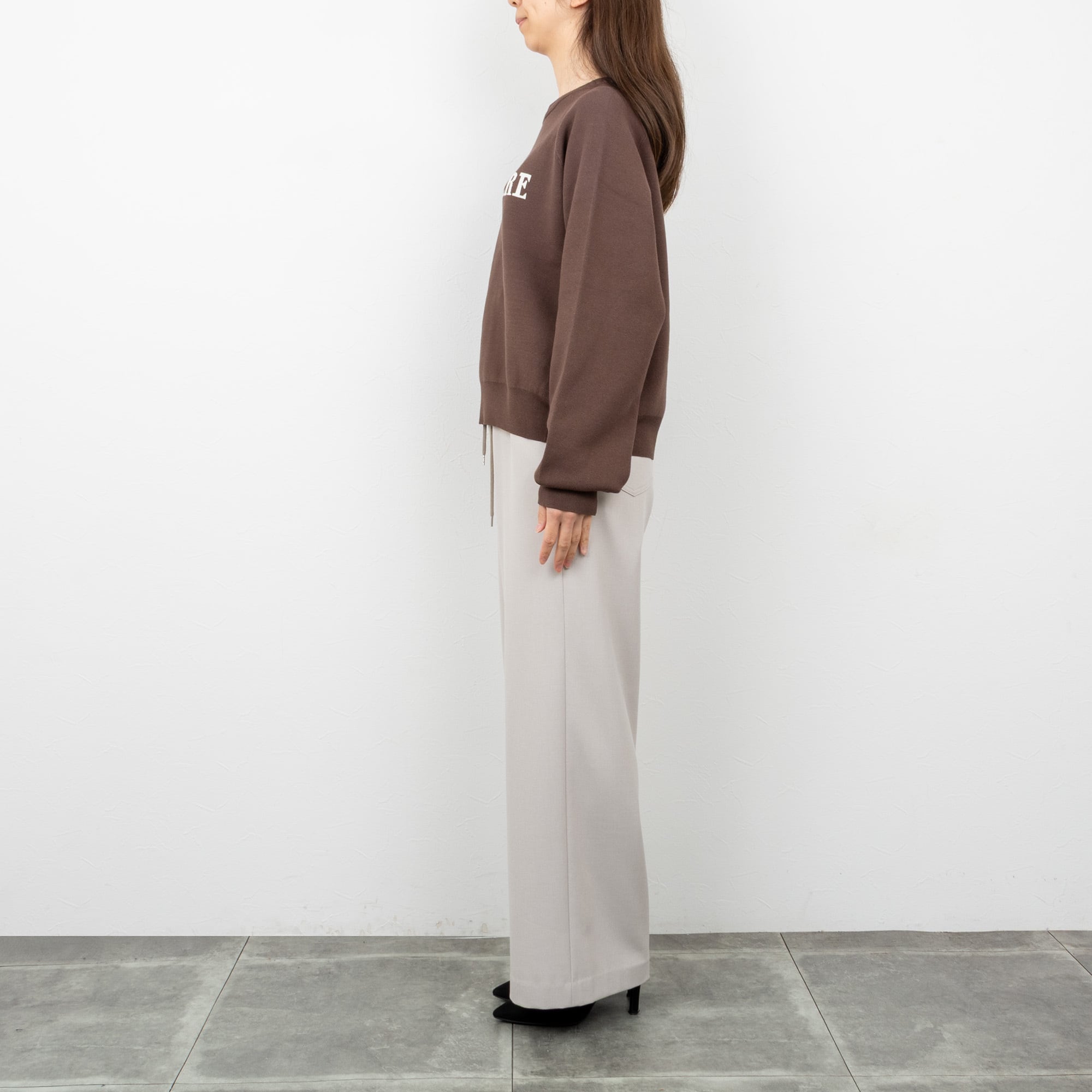 様々なボトムと好相性な着丈のロゴニット。