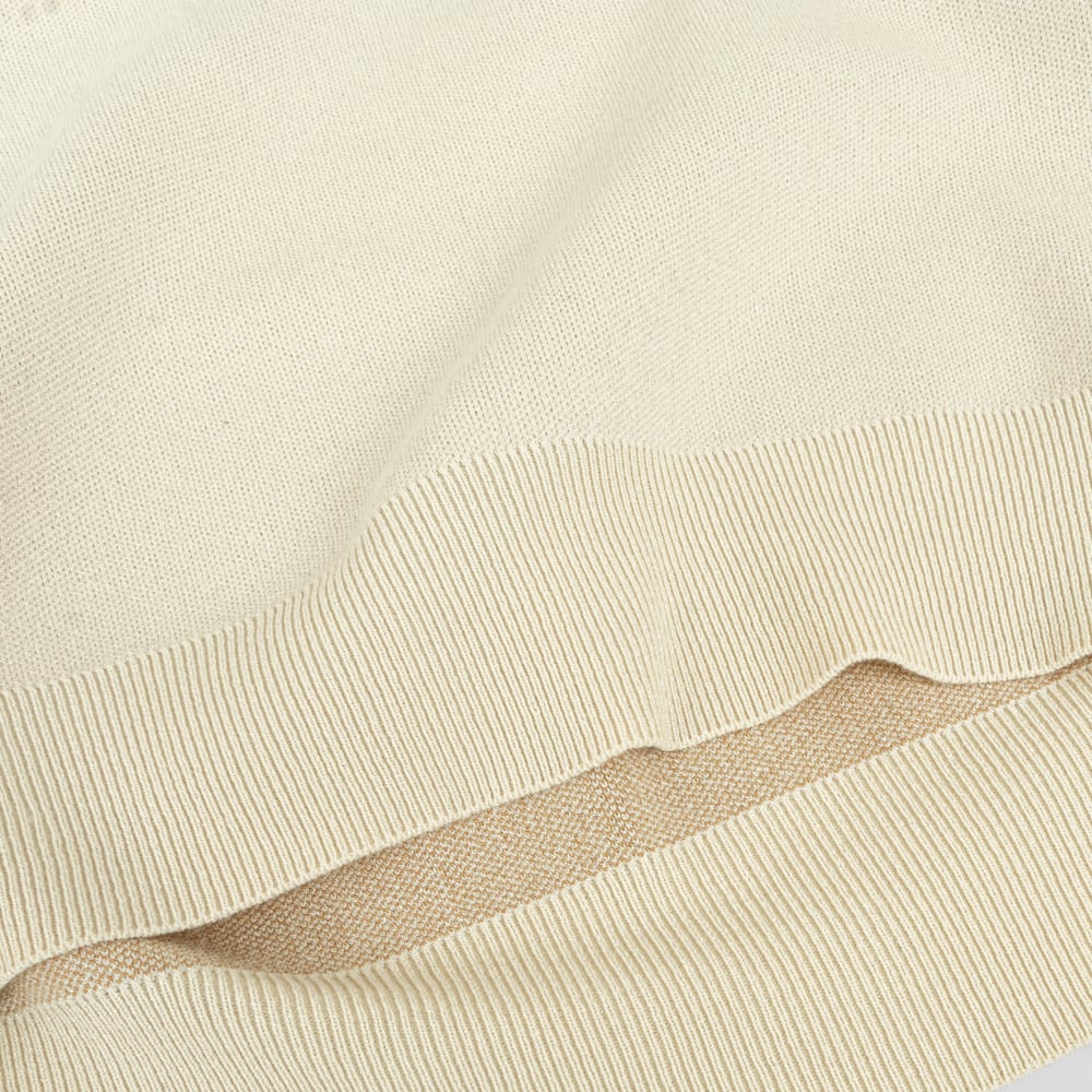 フチのリブ編みがアクセントに、ニュアンスのある1枚です。