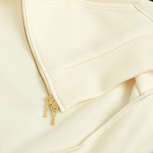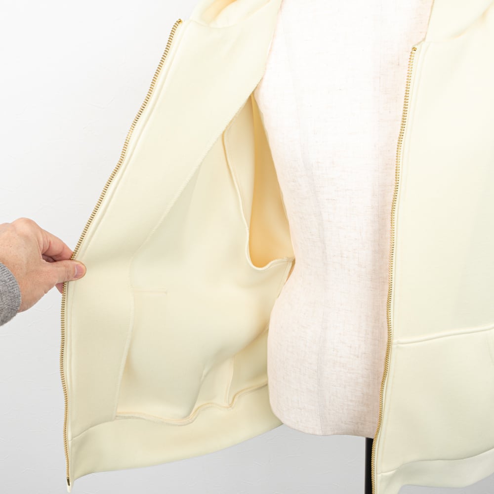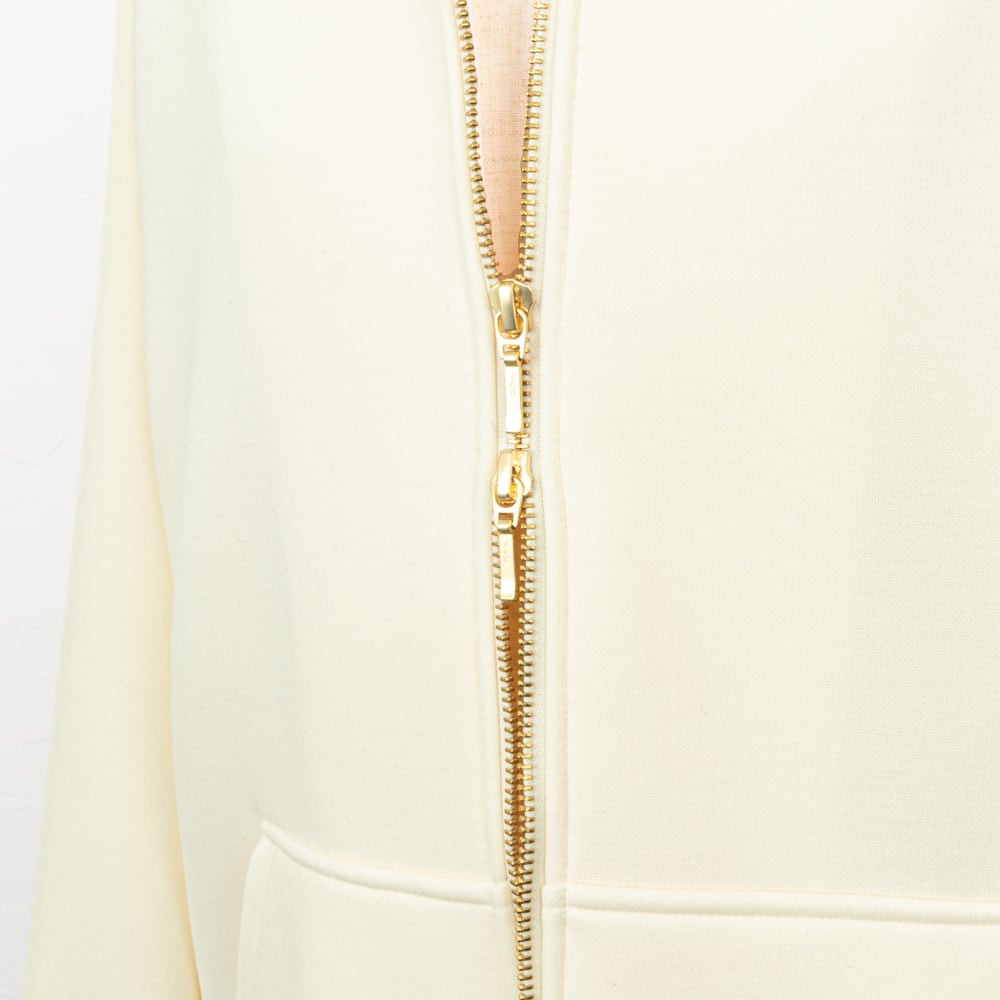 フロントのゴールドファスナーが女性らしさを演出します。