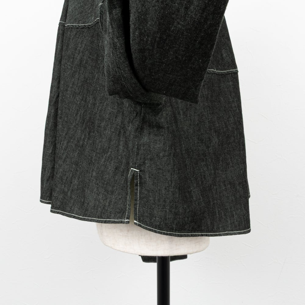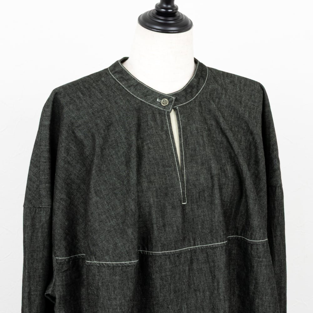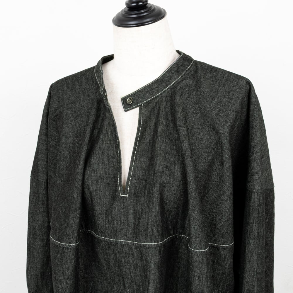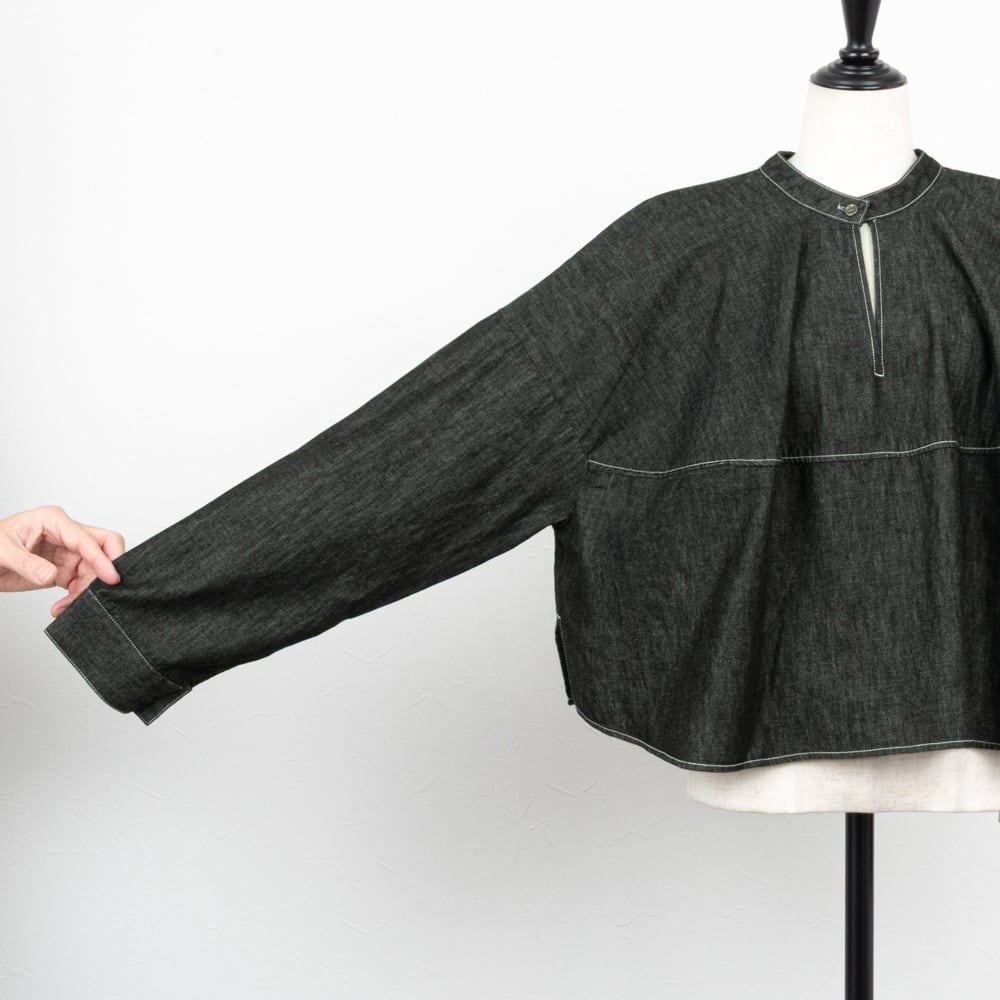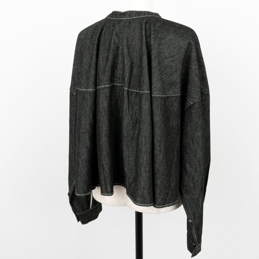 ライトな6オンスのデニムを、ソフトな風合いの綾デニムで柔軟仕上げを施したデニムブラウス。