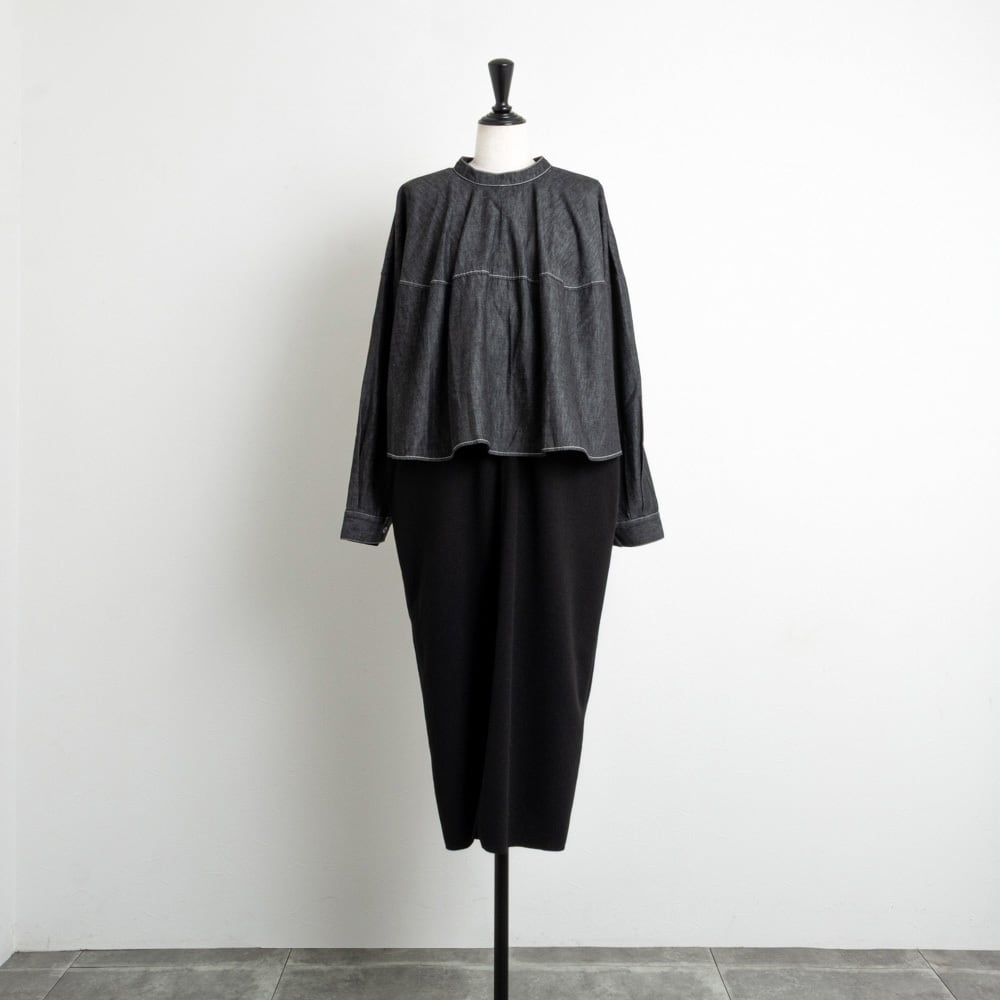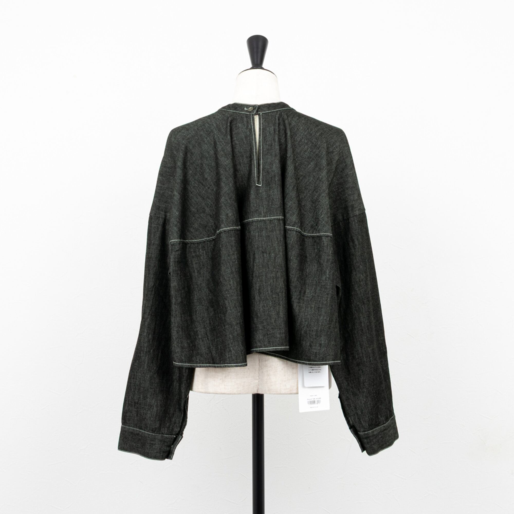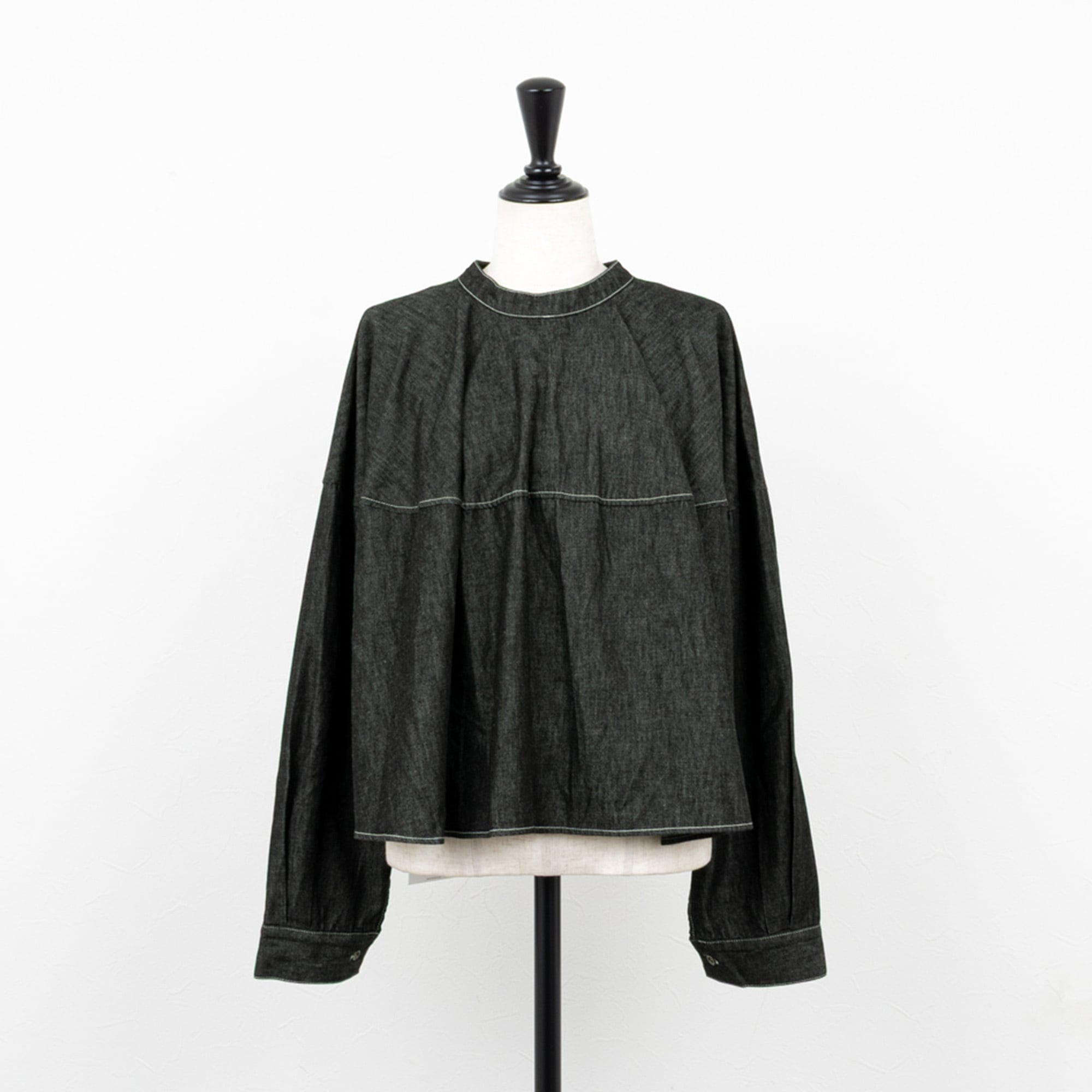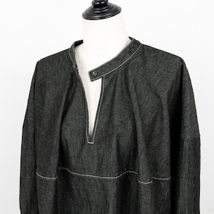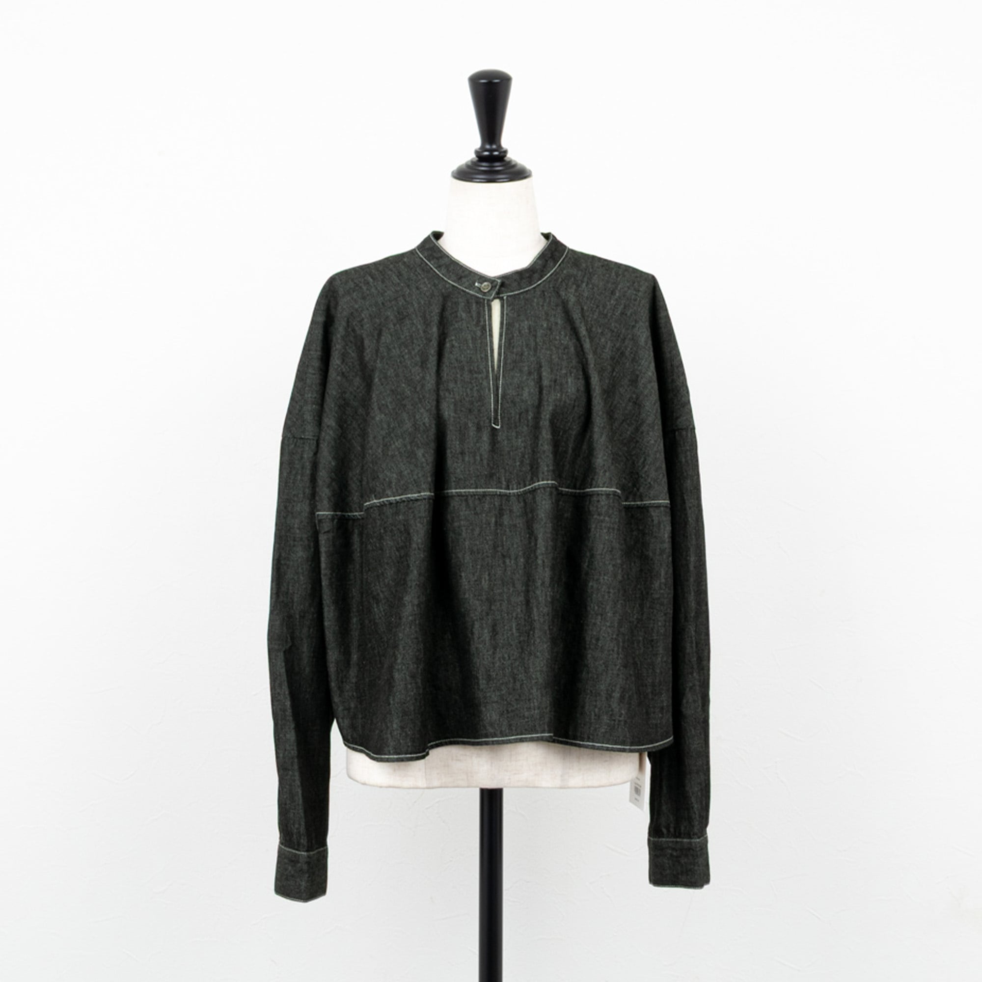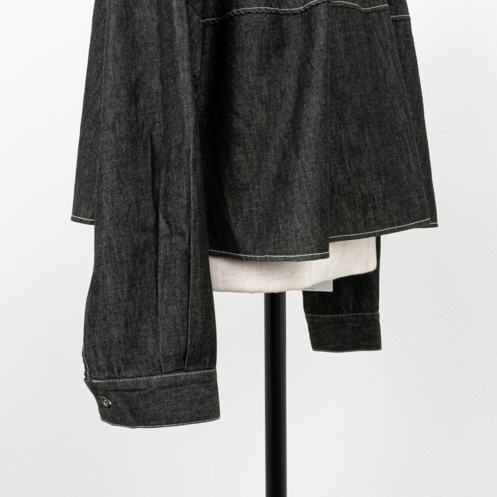 ライトな6オンスのデニムを、ソフトな風合いの綾デニムで柔軟仕上げを施したデニムブラウス。