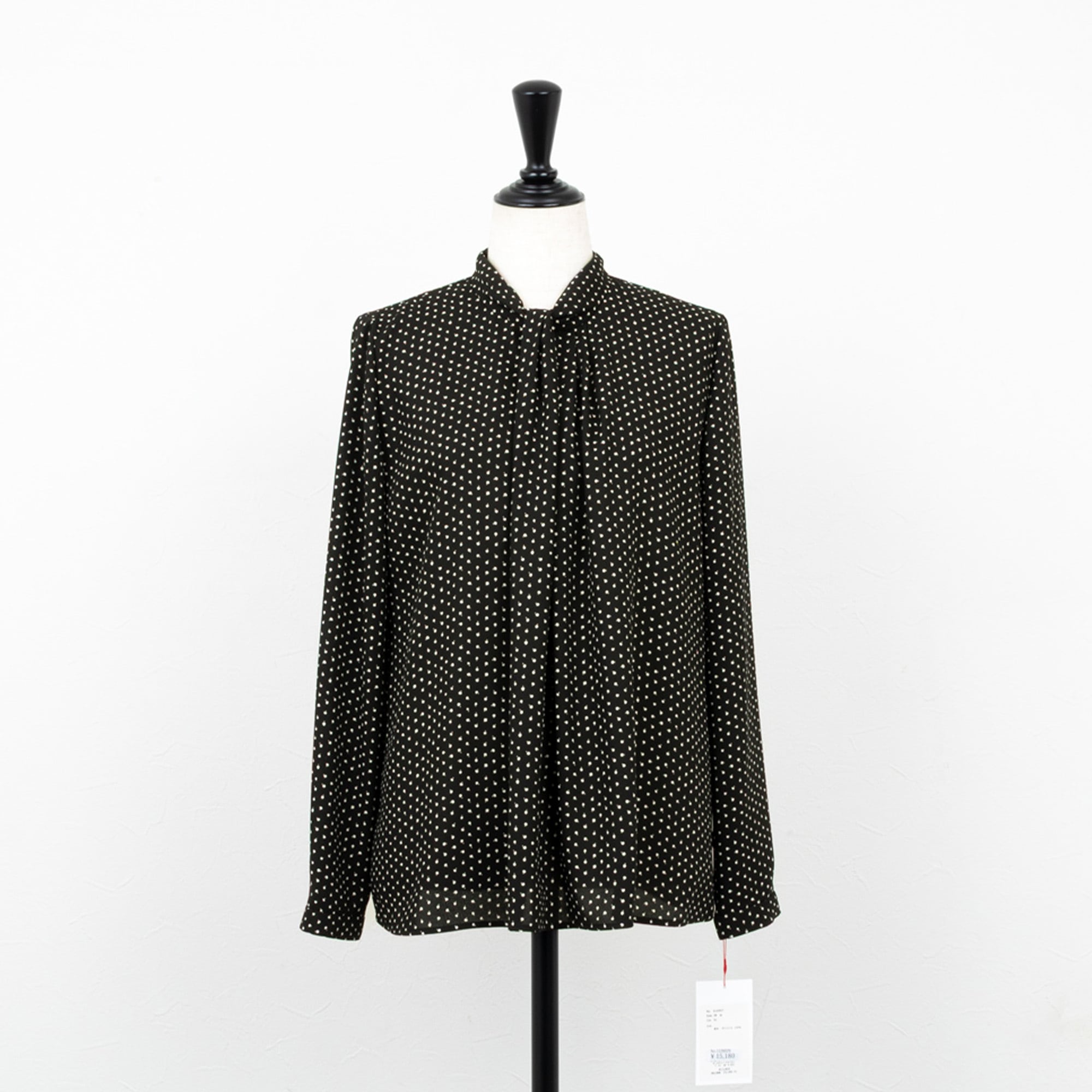 【PASSIONE/パシオーネ】変形ドットボウタイ風ブラウス(ブラック系)
