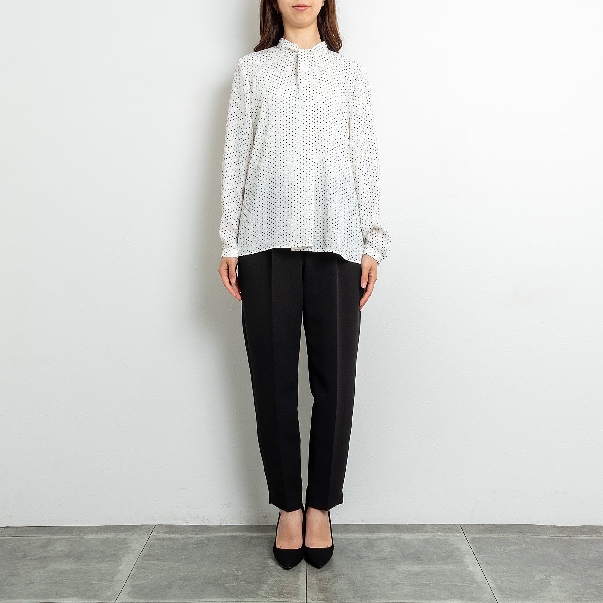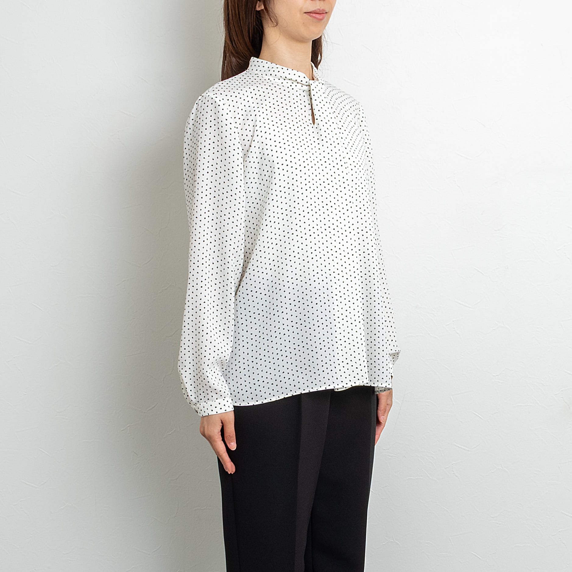 ボウタイ風のスタンドカラーがポイントのプルオーバーブラウス。