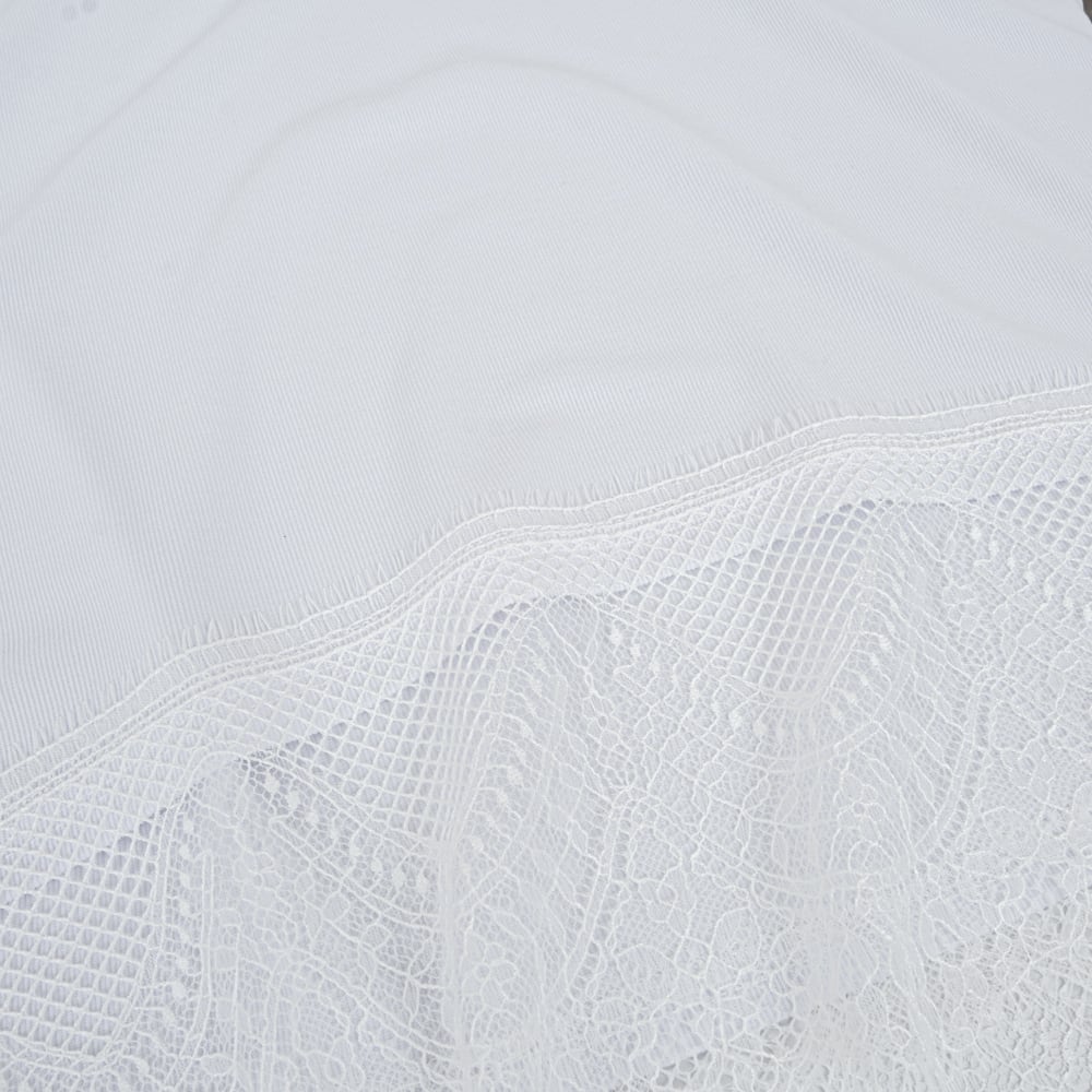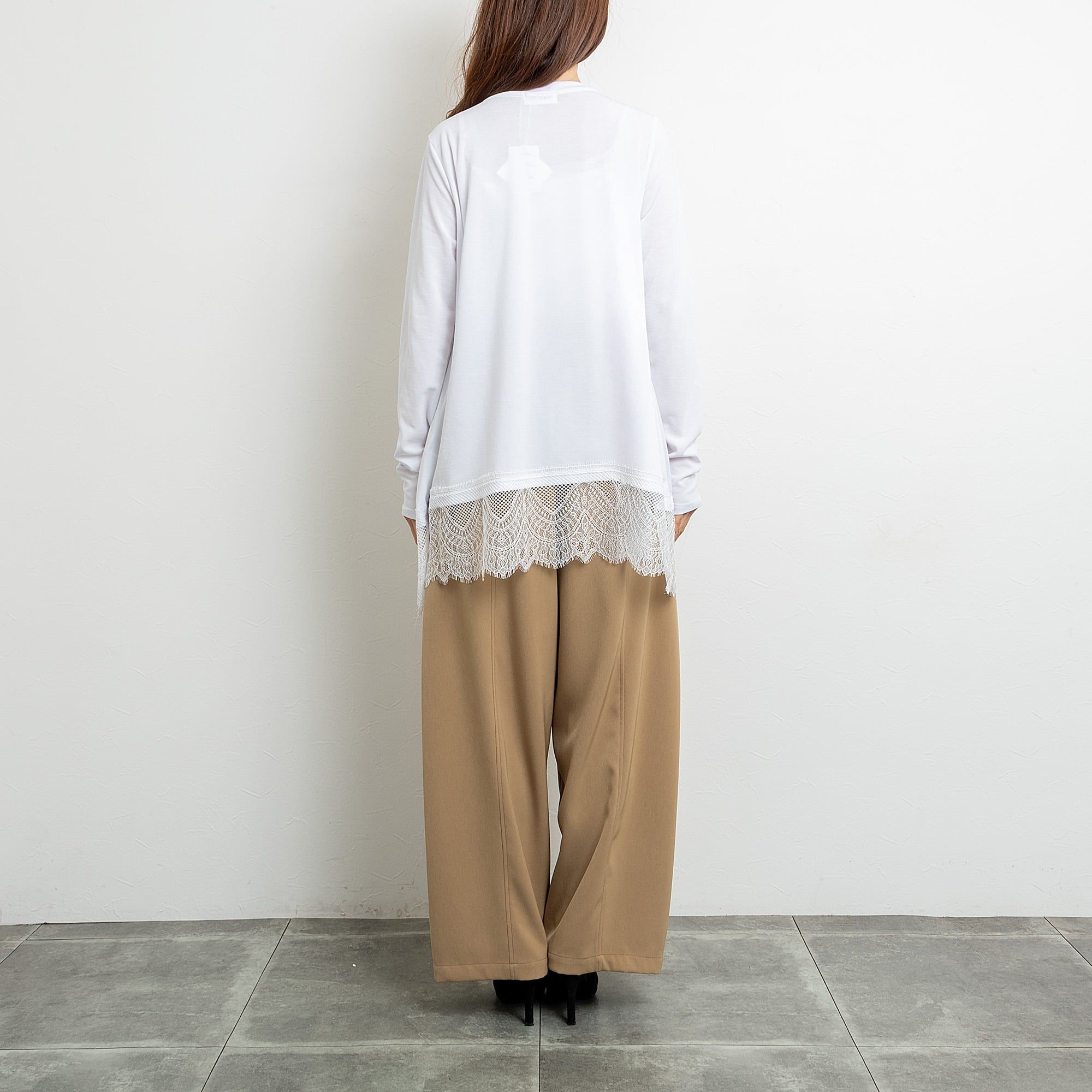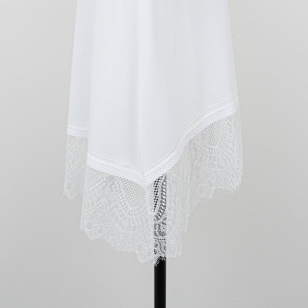 裾のレースがさりげなく女性らしさをプラスし、シンプルながらも一枚で存在感のある仕上がりに。