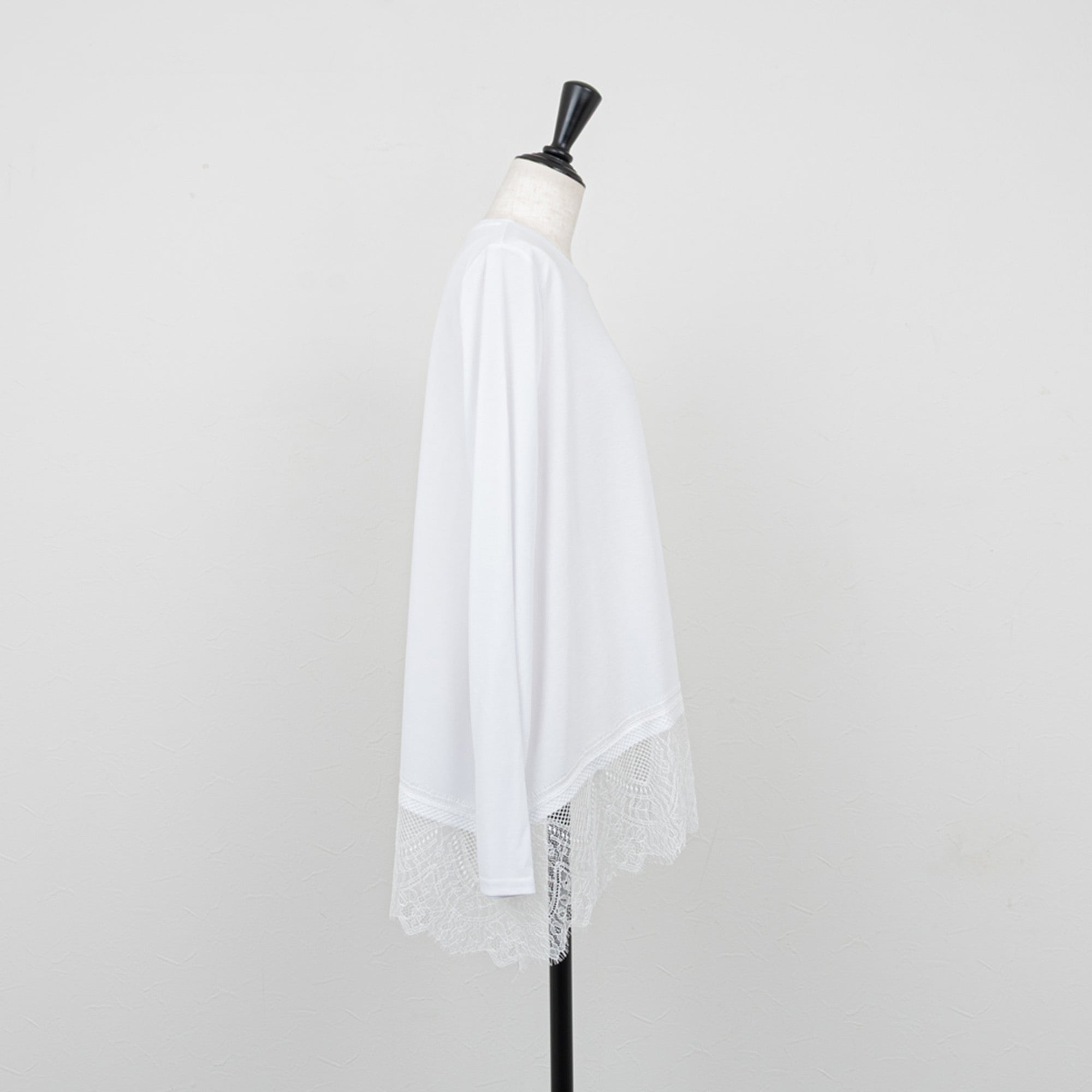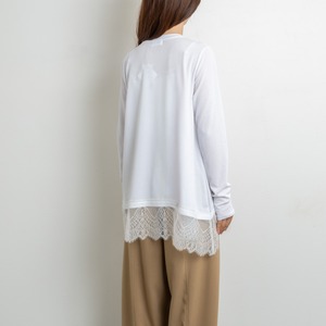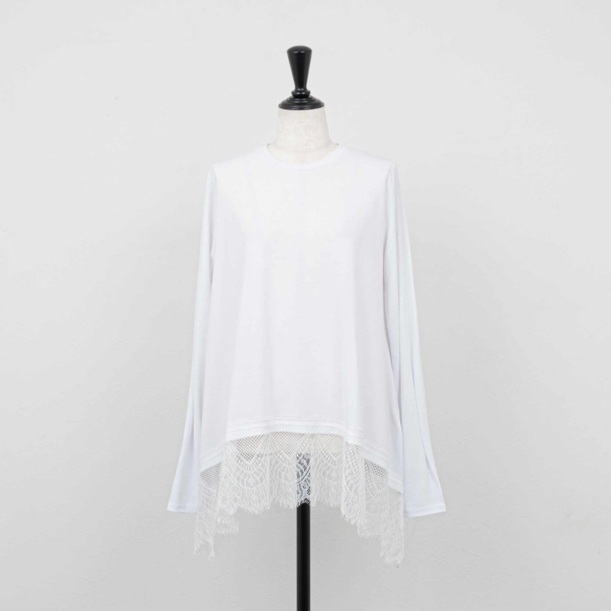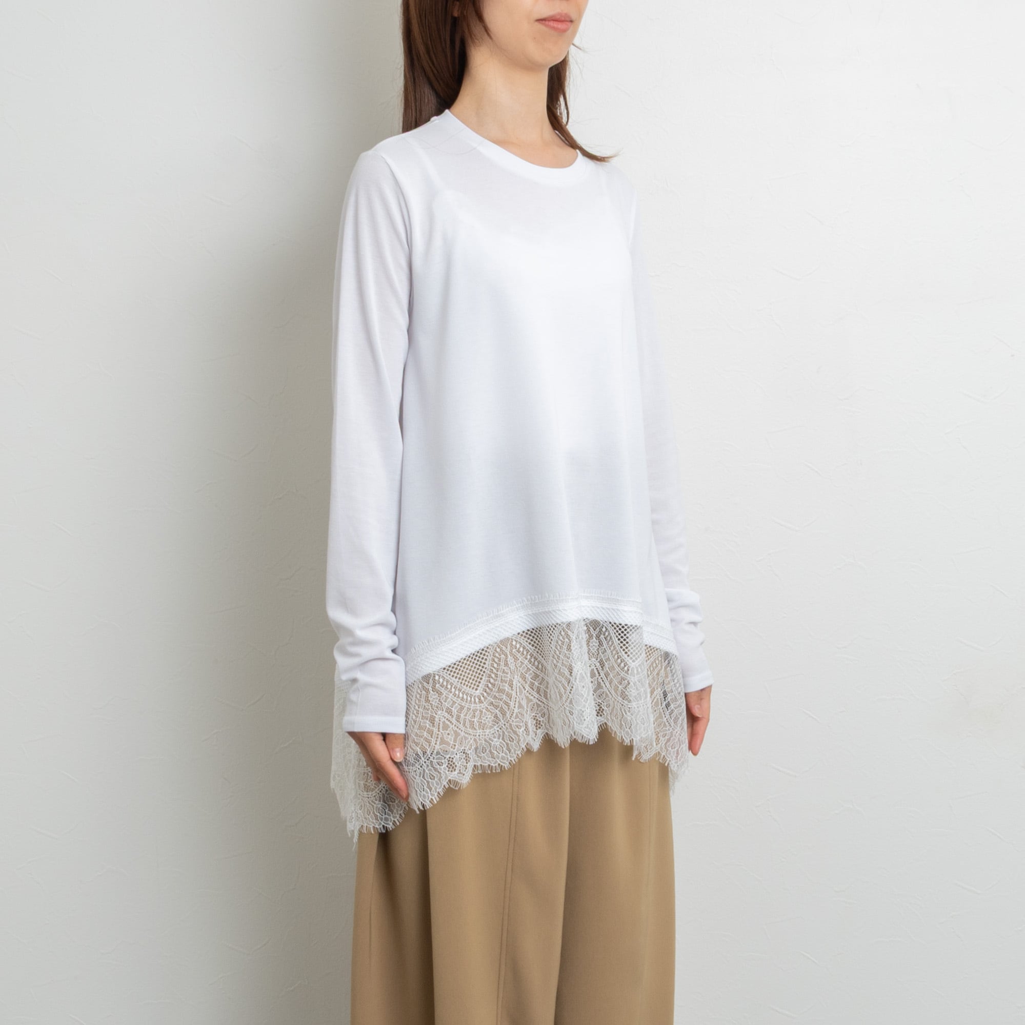 柔らかく伸縮性のあるカットソーに、裾部分は繊細なレースをドッキングしたデザイントップス。