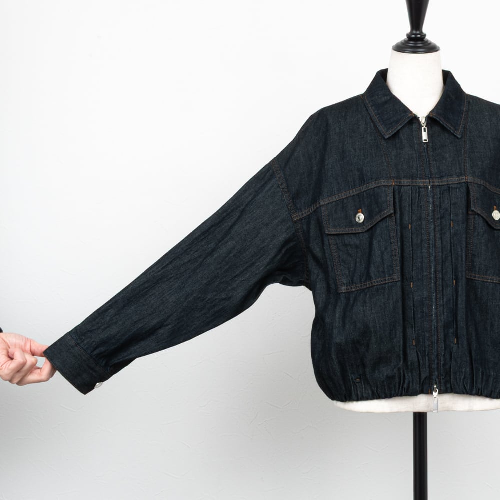スカートなきれいめなパンツなど様々なボトムに合わせやすい丈のデニムブルゾン。