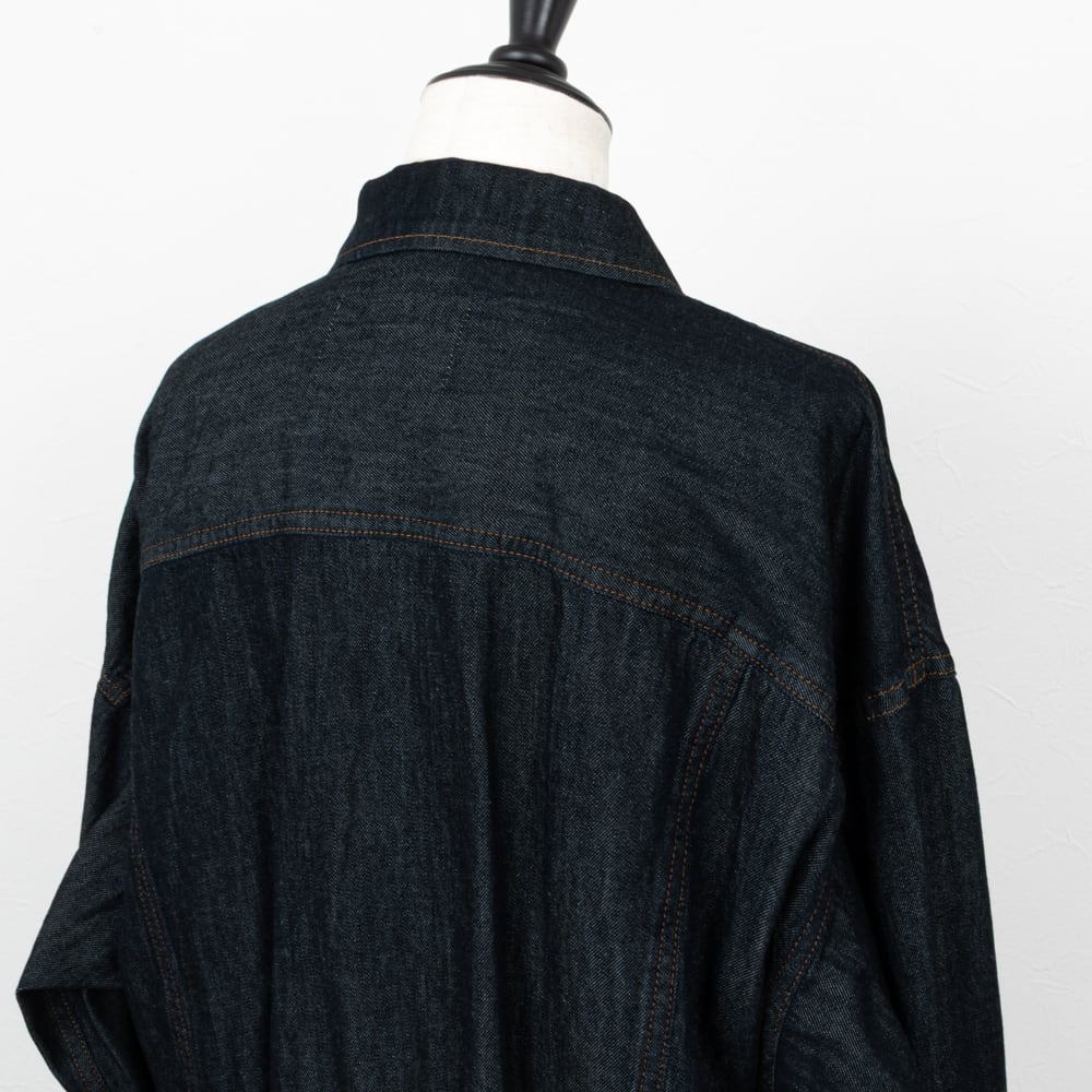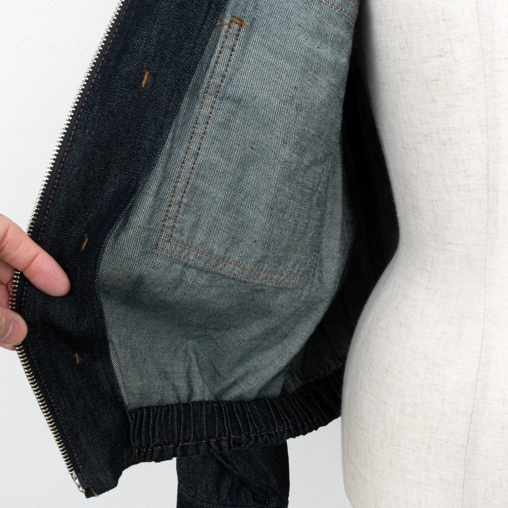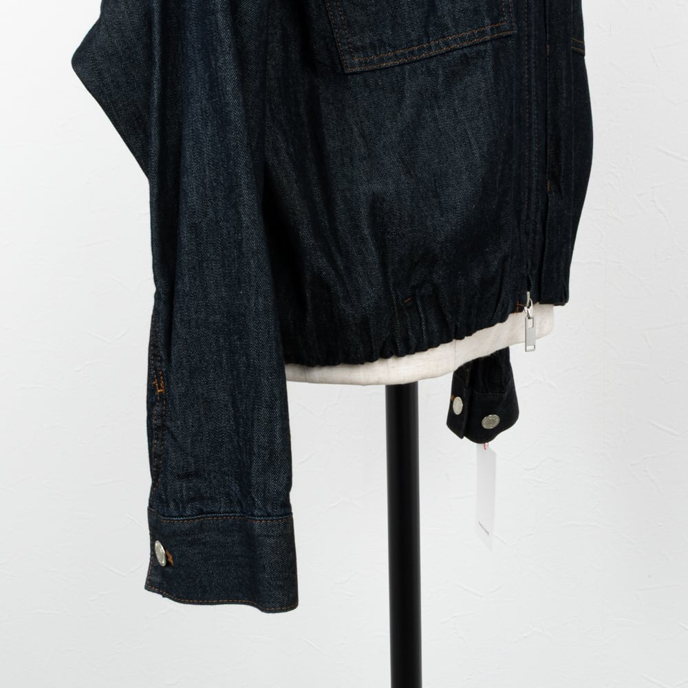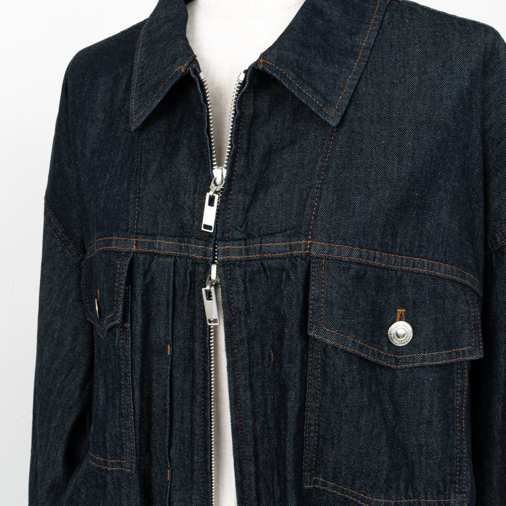 ベーシックなシャツカラーに開閉のしやすいフロントジップのデニムブルゾン。