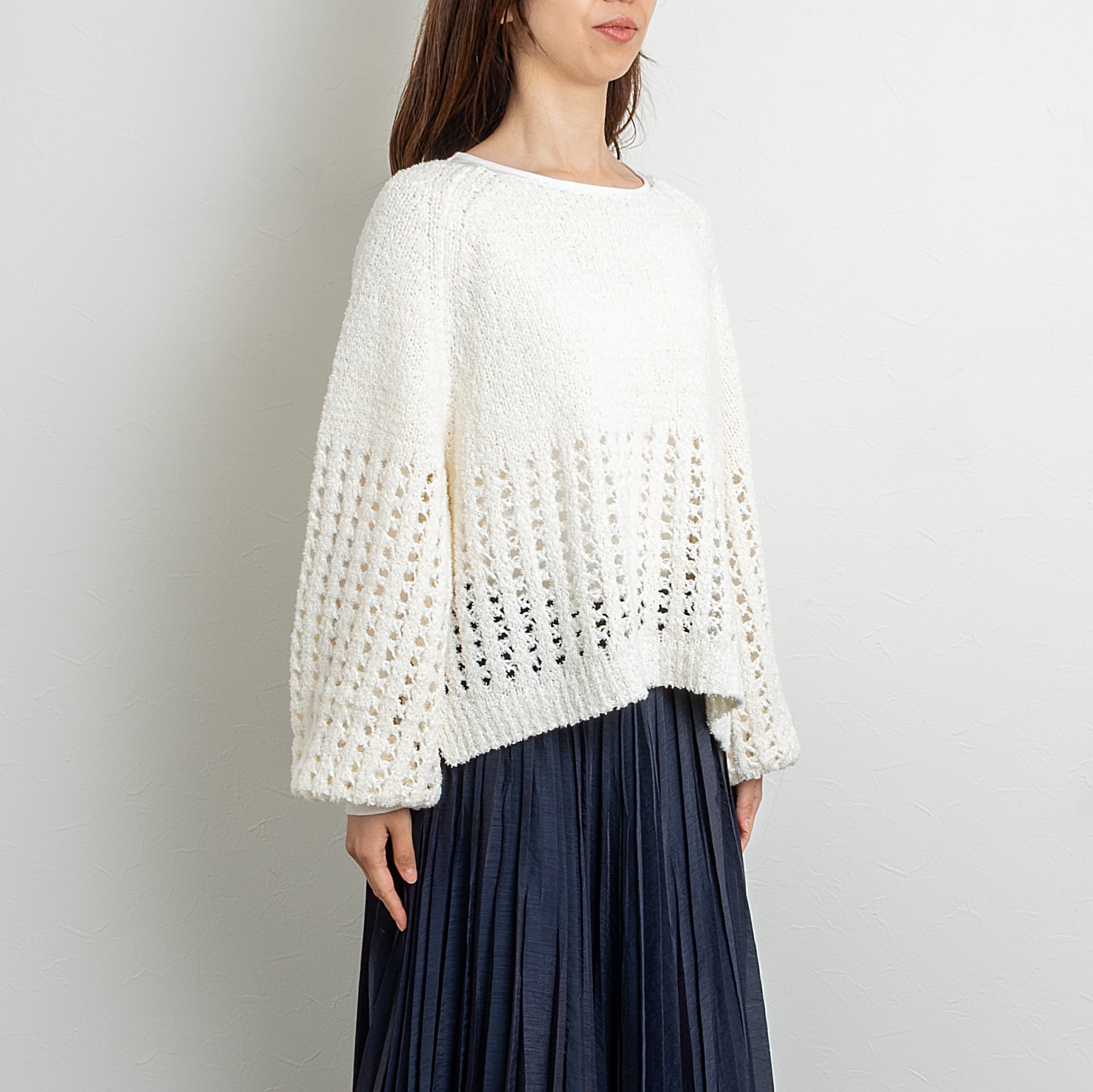 中間の季節のレイヤードに使いやすい、快適な綿素材のメッシュ編みプルオーバー。
