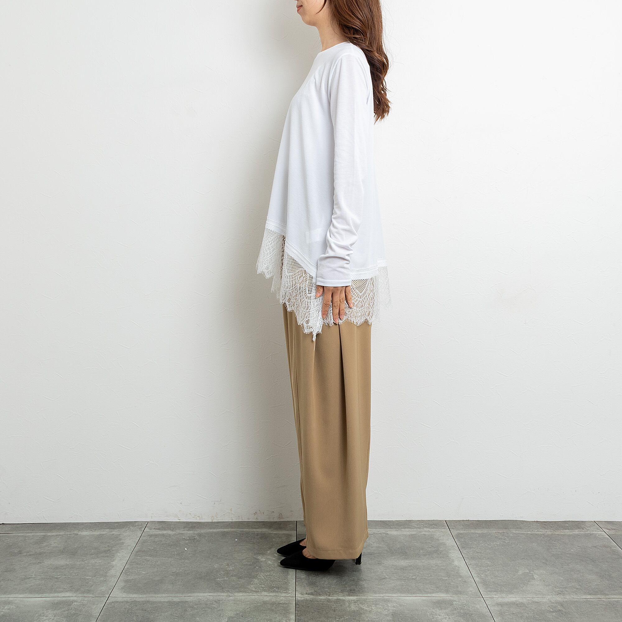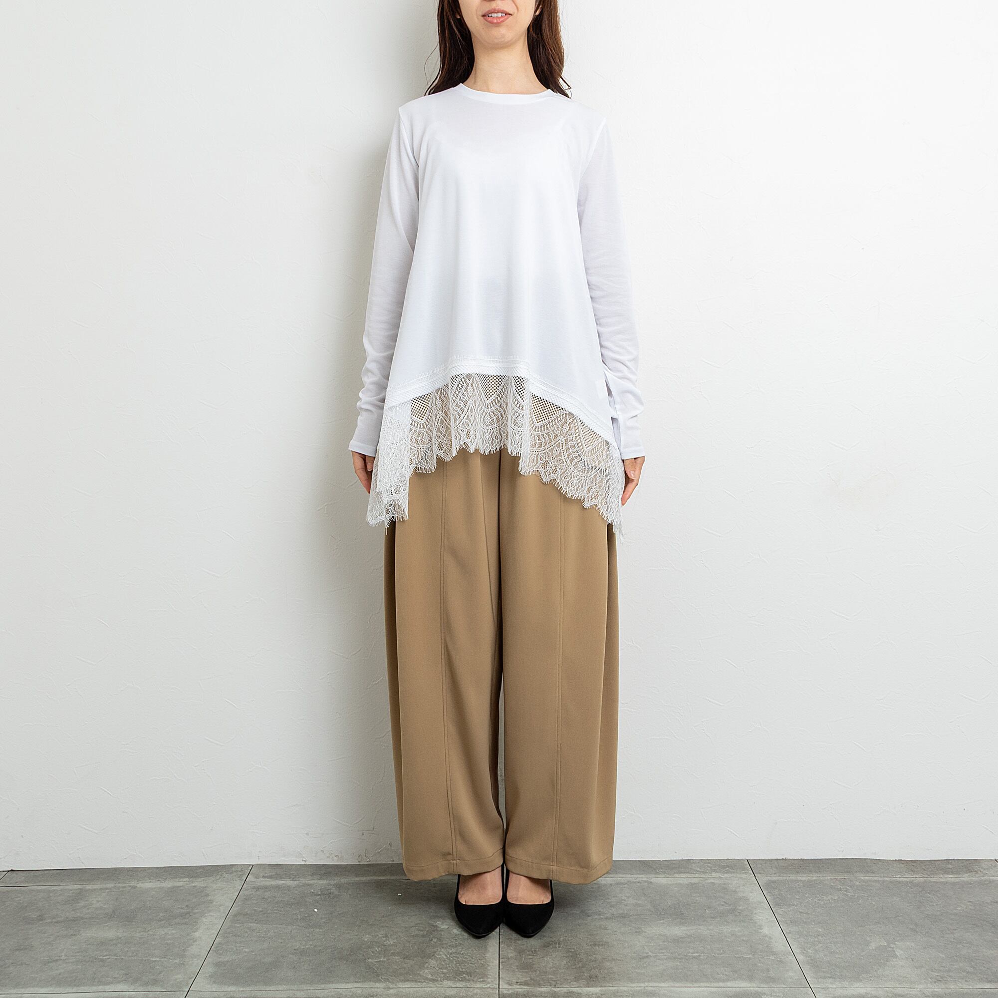 コンパクトなトップスと好相性でも、ロング丈のエレガントなブラウスと合わせていただいても大人っぽく着ていただけます。