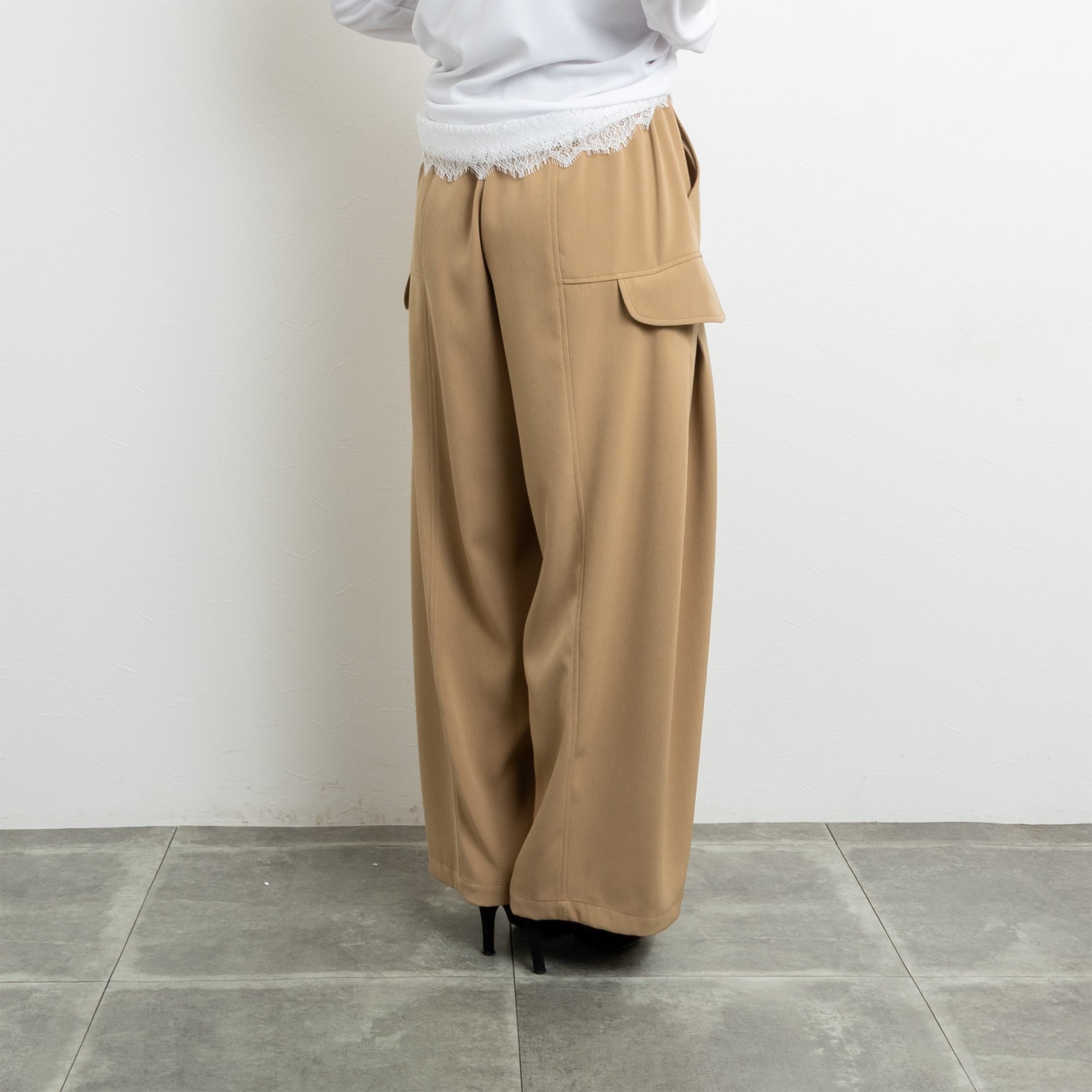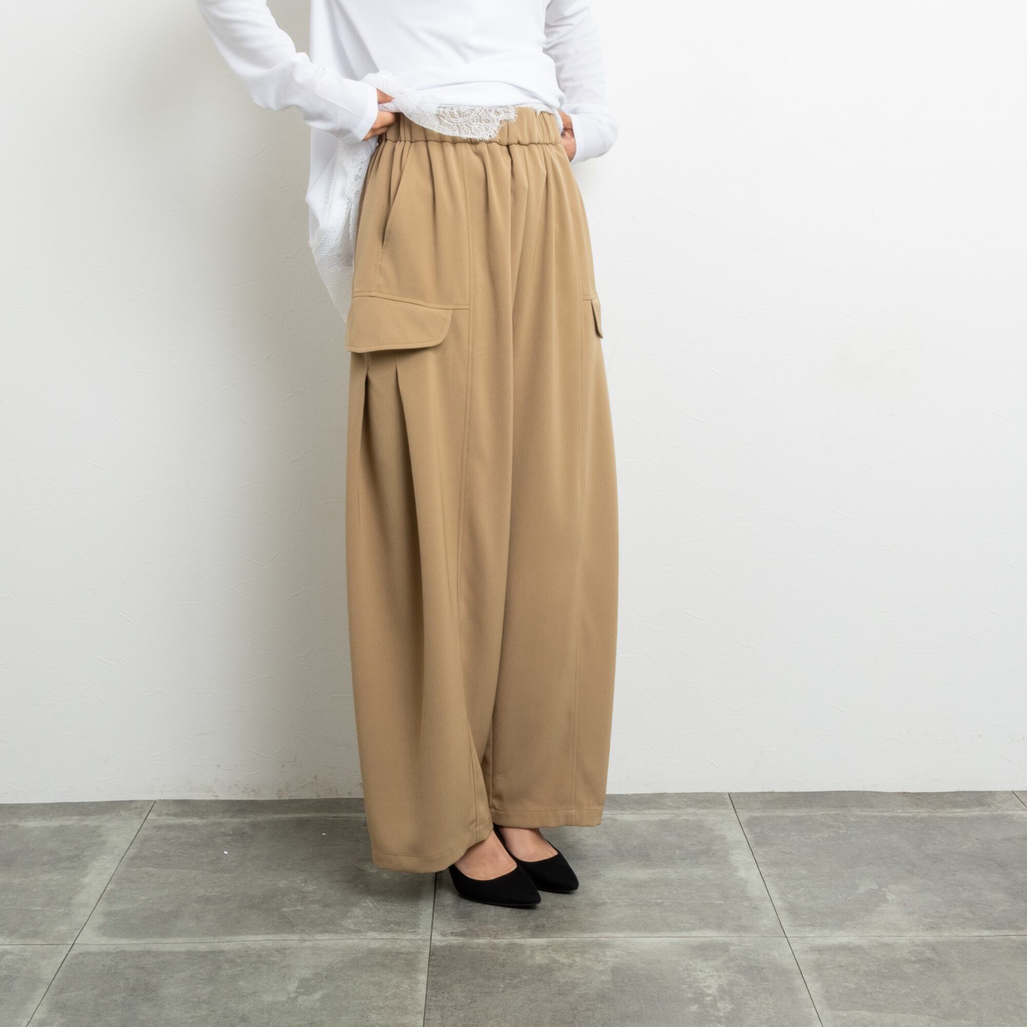 カーゴポケット部分のタックデザインで少し広がるカーブラインに。