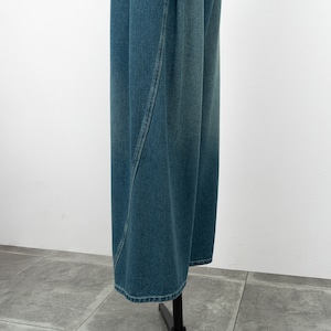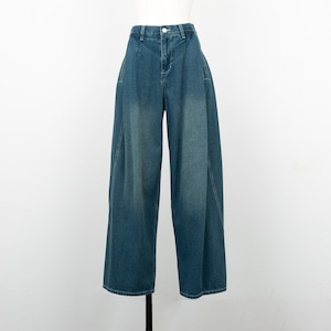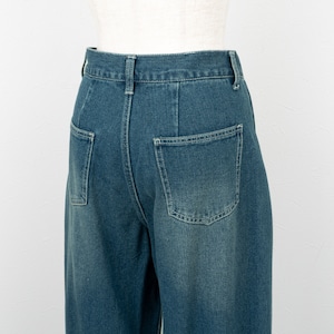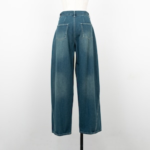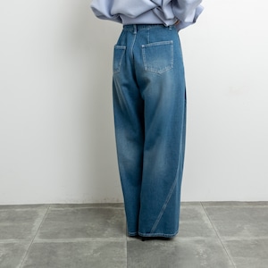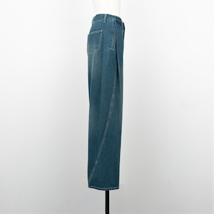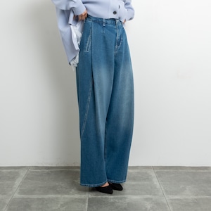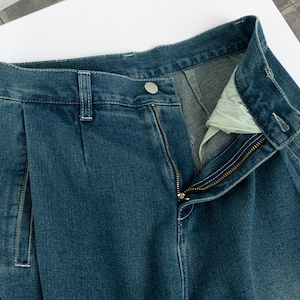 フロントの深めのタックラインがポイントのデニムパンツ。