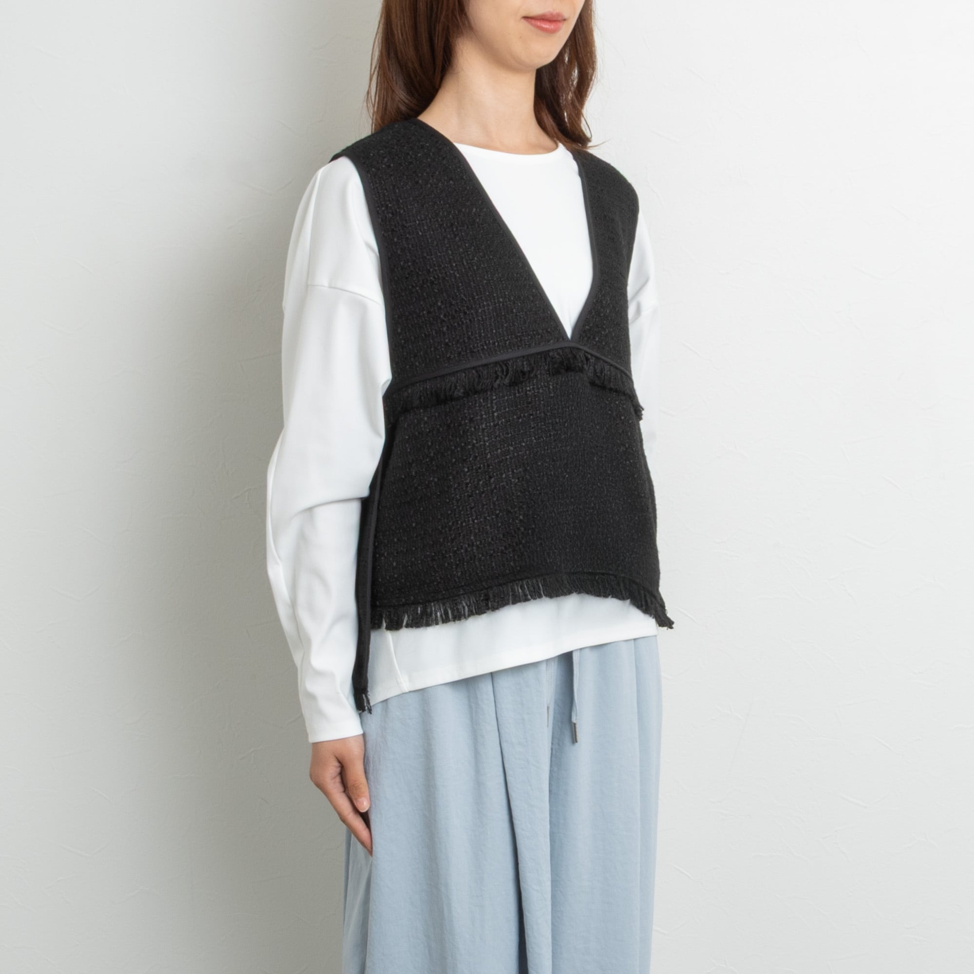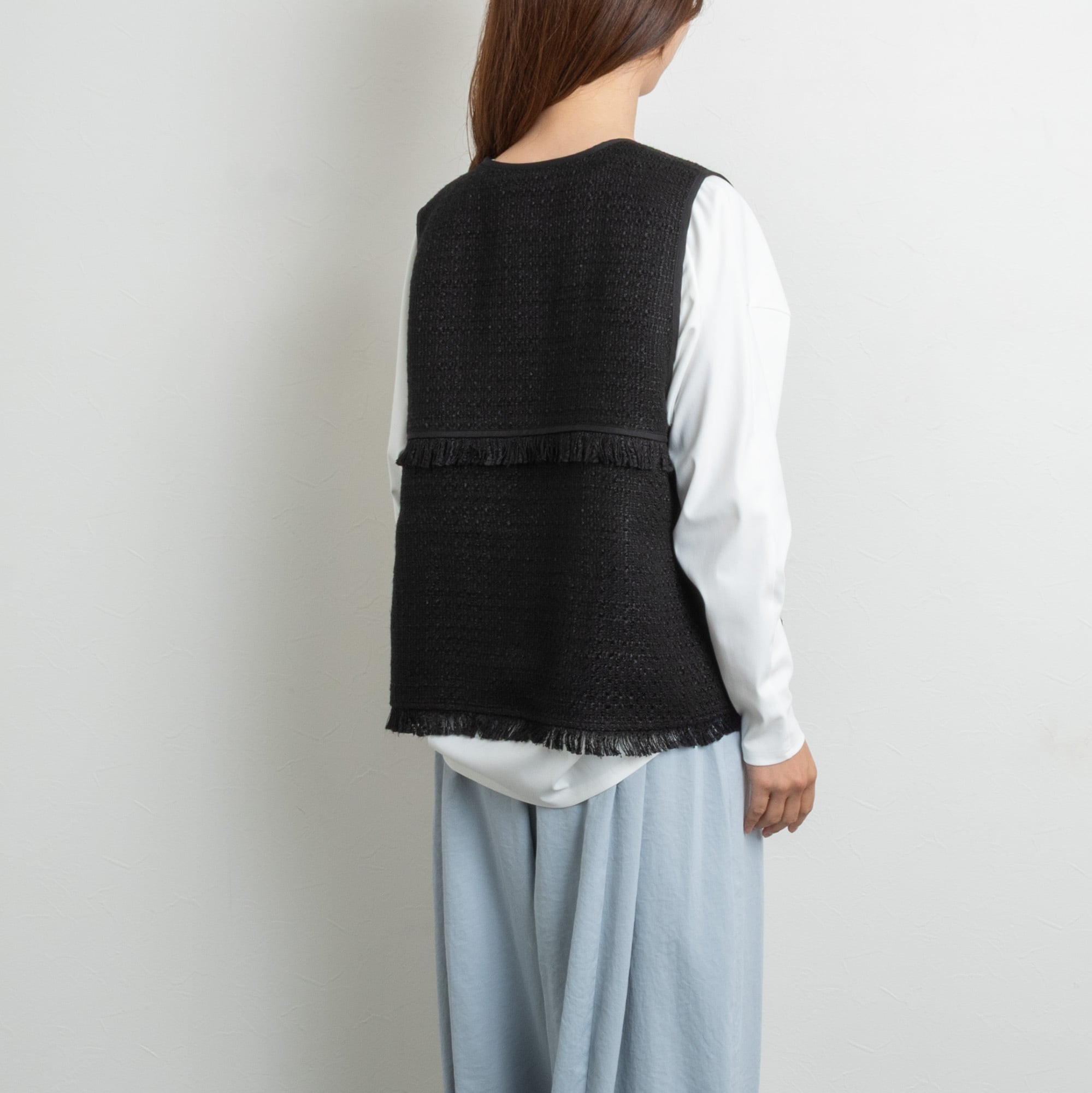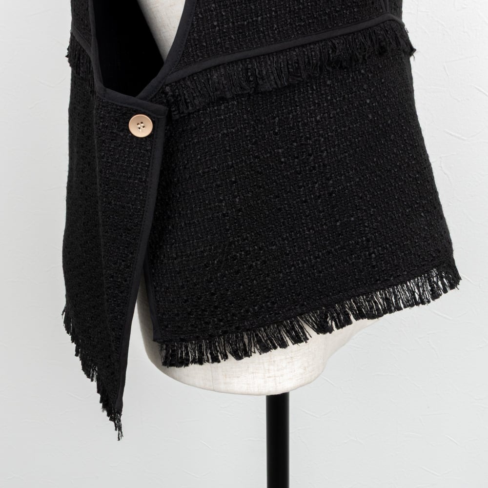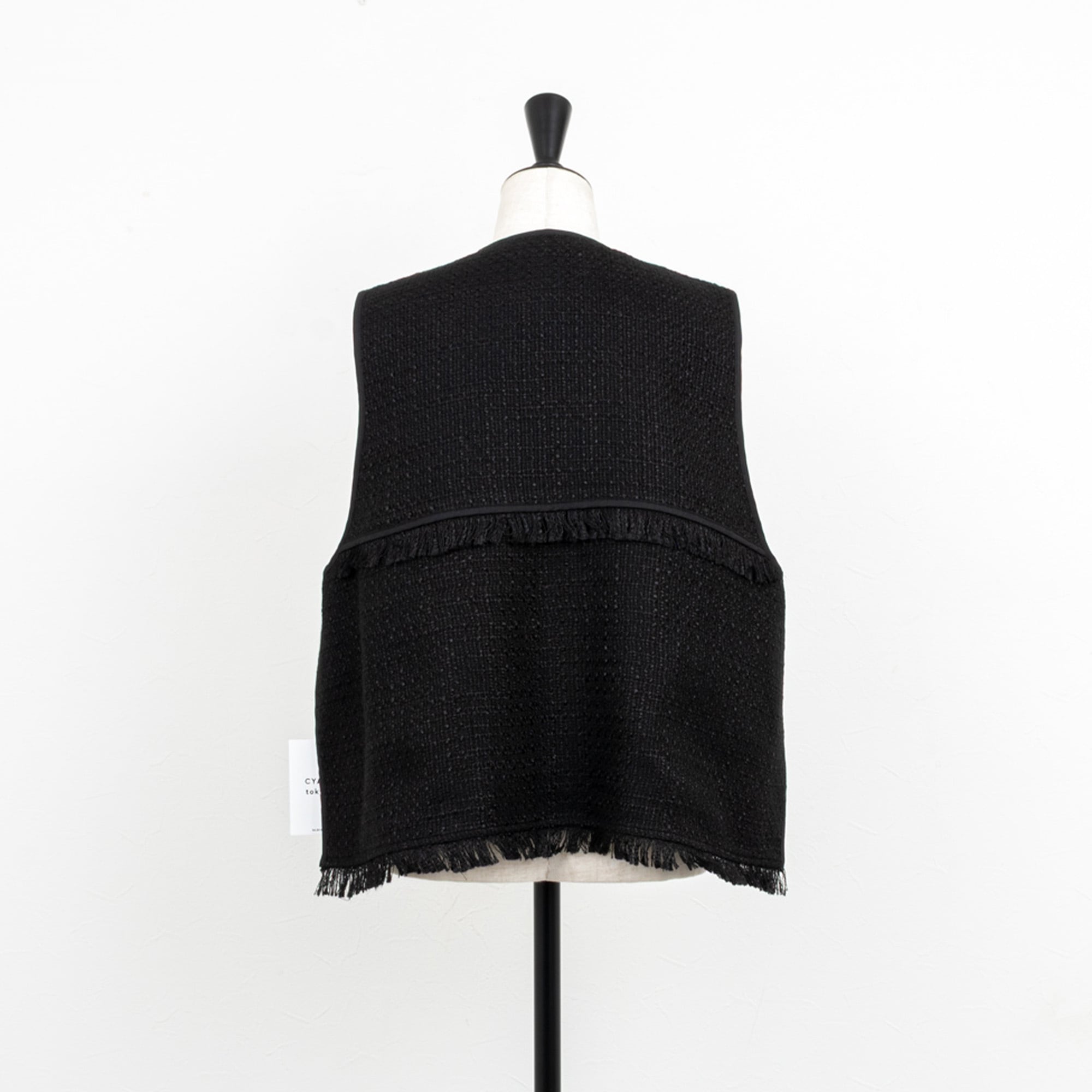 【CYAN TOKYO/シアン トーキョー】バックオーバートリムツィードベスト(ブラック)