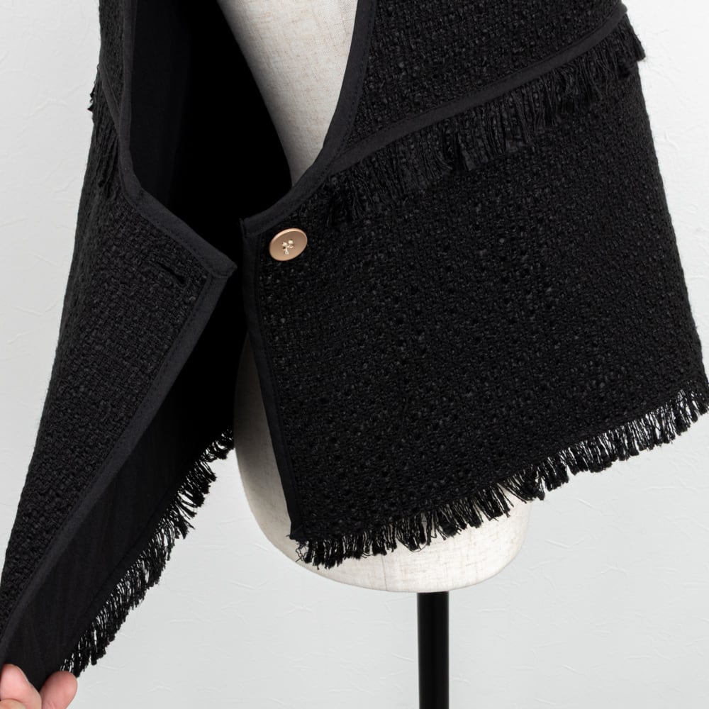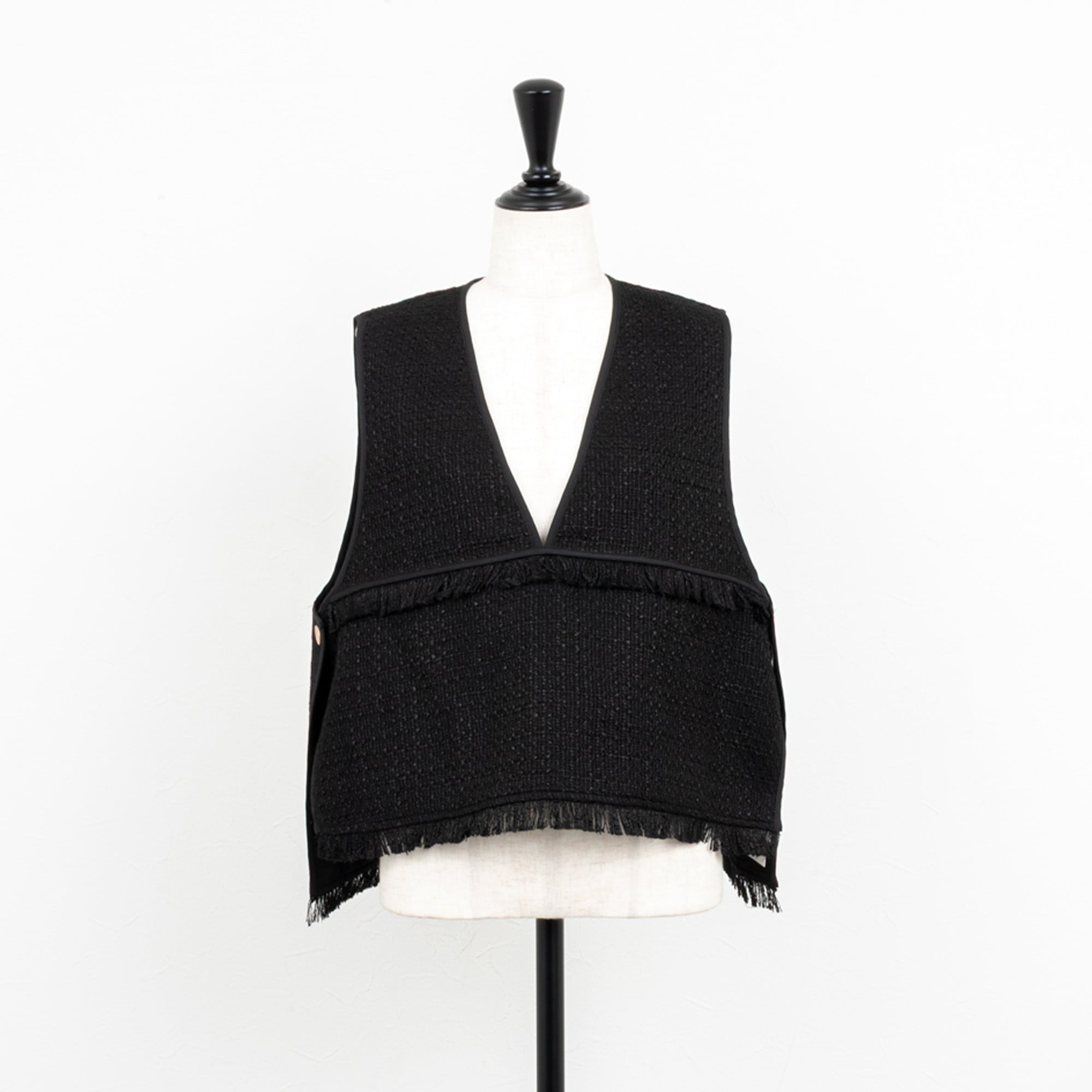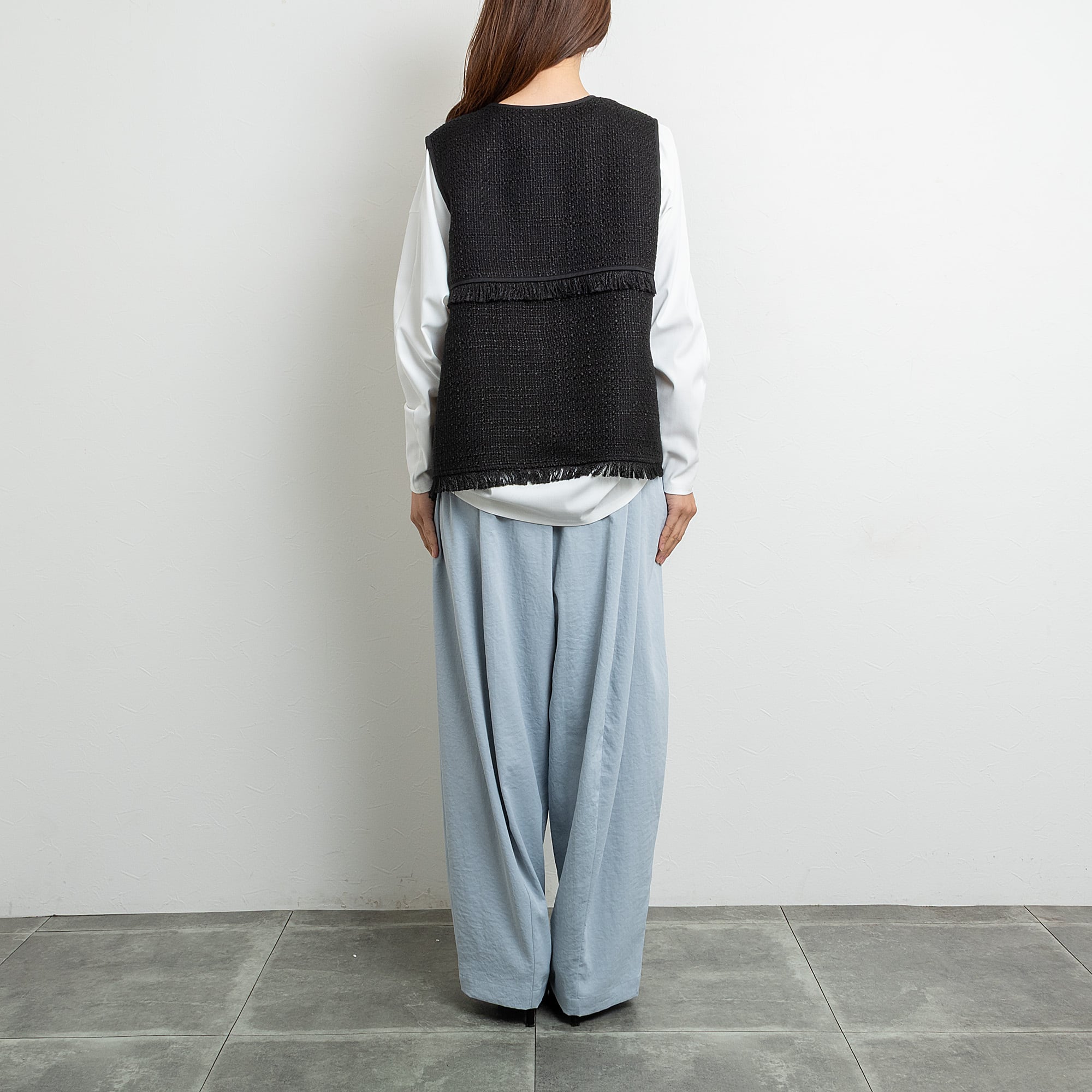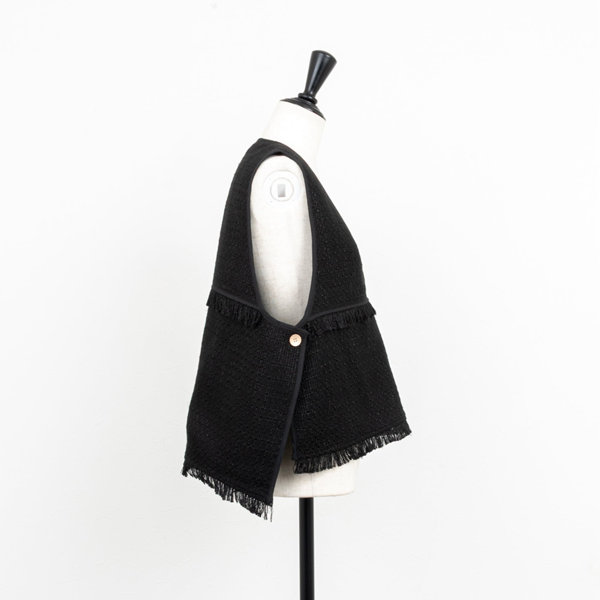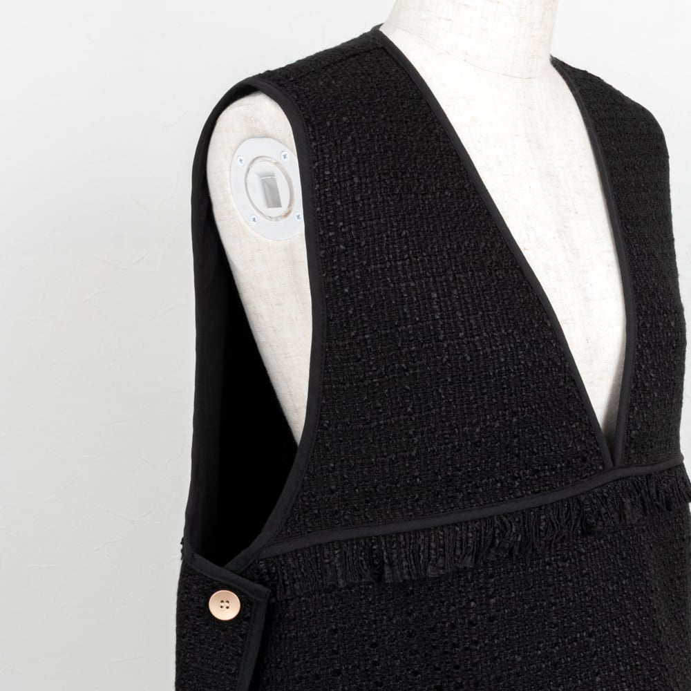 【CYAN TOKYO/シアン トーキョー】バックオーバートリムツィードベスト(ブラック)