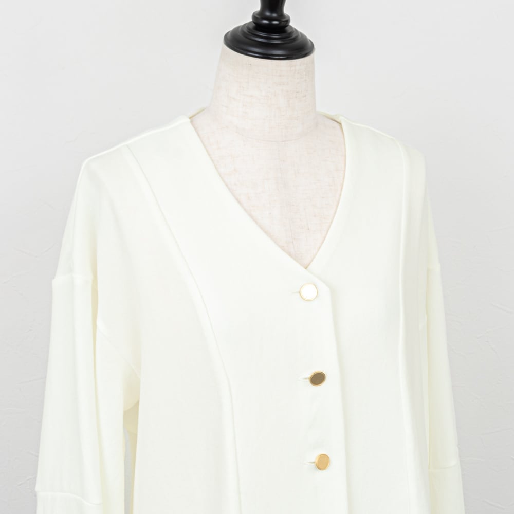 【Dignite collier/ディニテコリエ】前開きフレアブラウス(オフホワイト)
