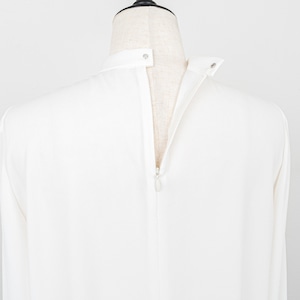 ボウタイ風のスタンドカラーがポイントのプルオーバーブラウス。