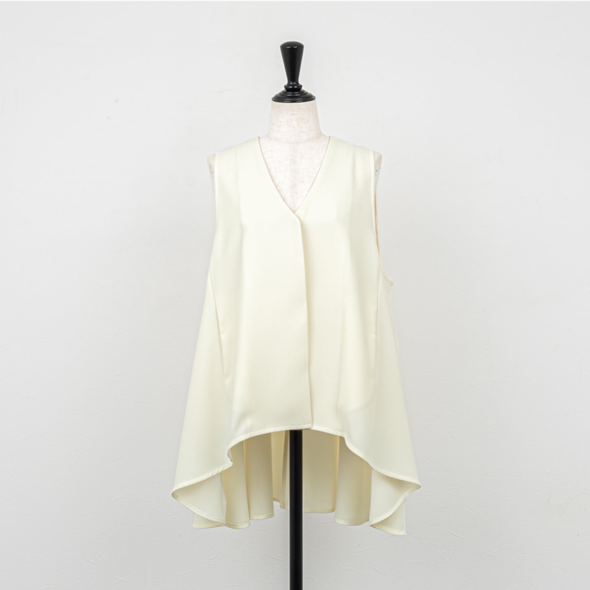 【Dignite collier/ディニテコリエ】裾フレアノースリーブジャケット(アイボリー)