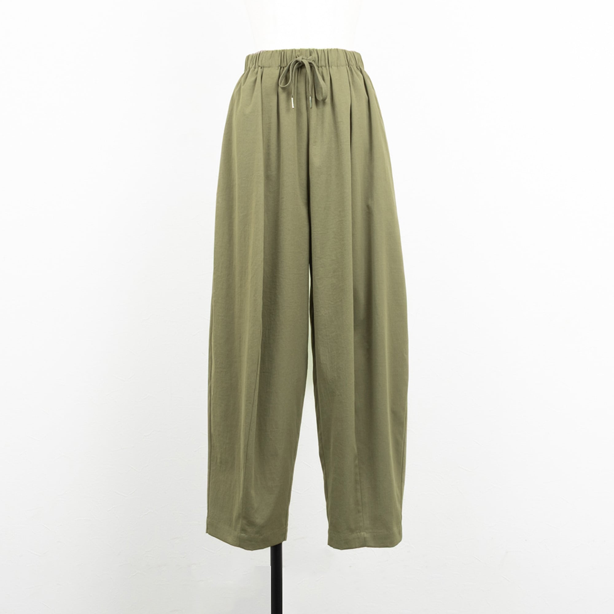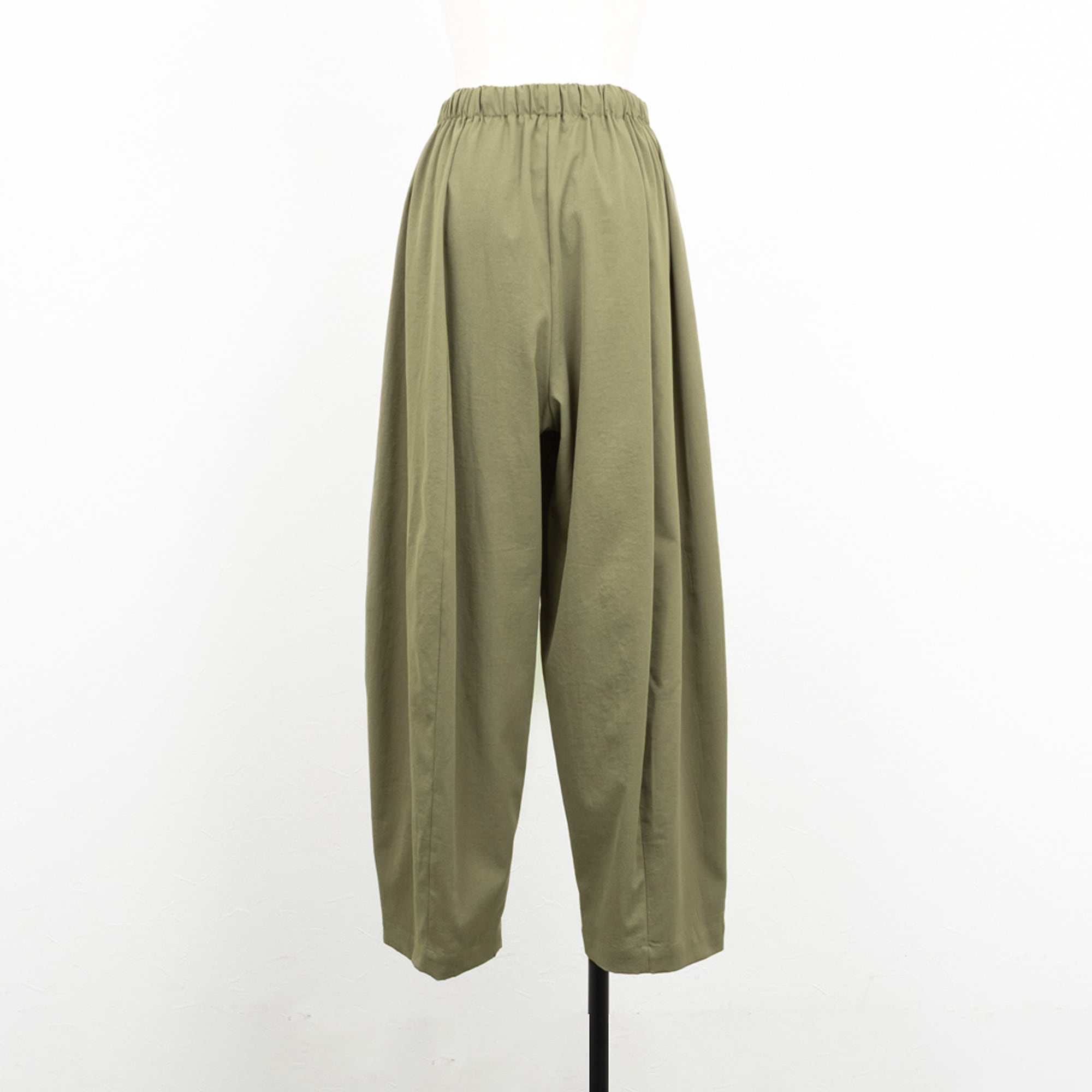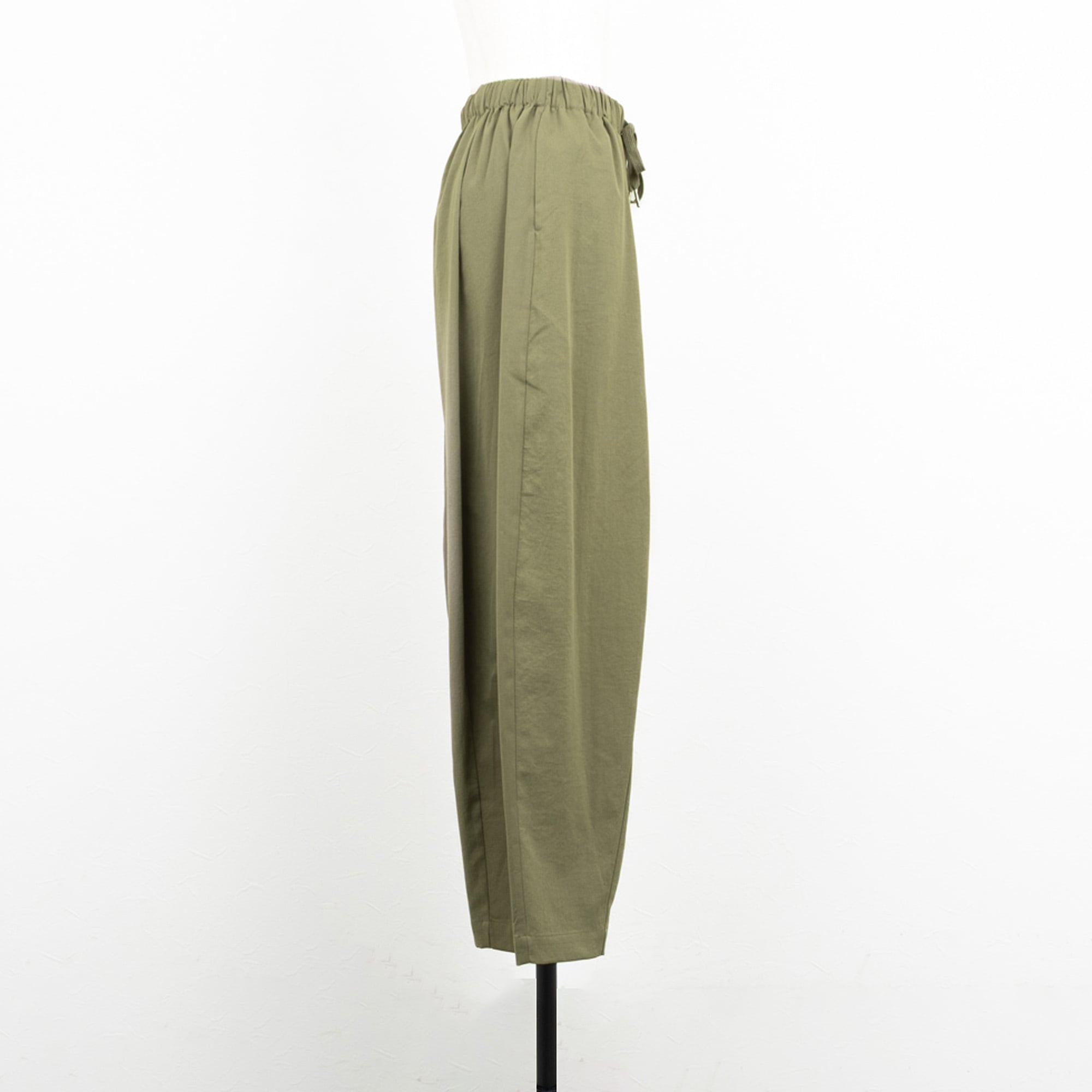 ハイウェストにゆとりのある股上から、ワイドに裾に向かってやや細くなるバルーンシルエットのパンツ。