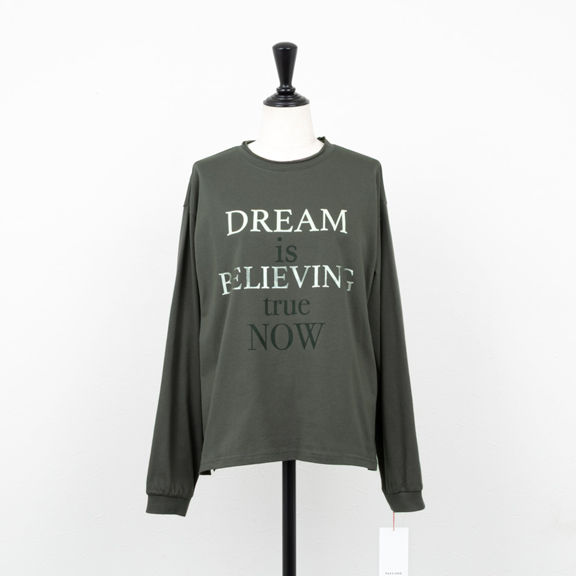【PASSIONE/パシオーネ】箔プリントロゴ長袖カットソー(チャコール)