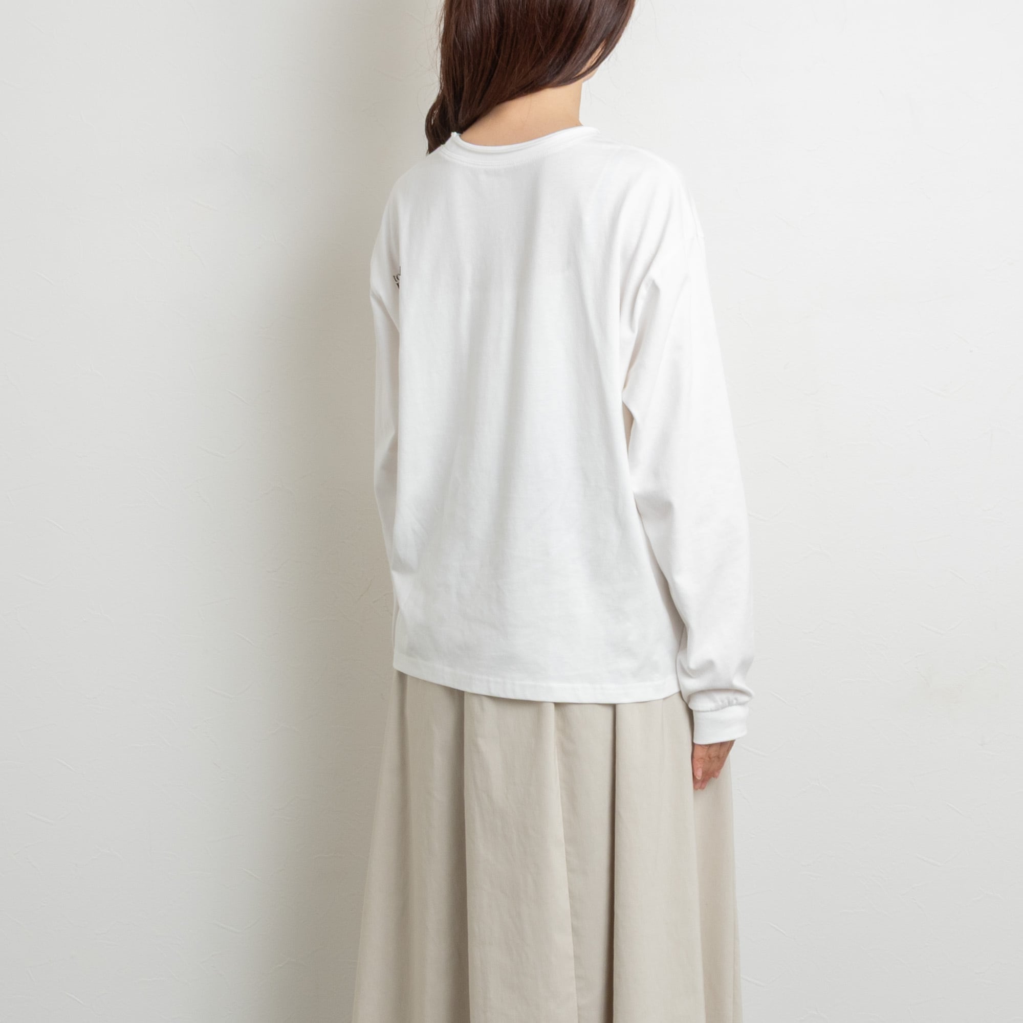 ベーシックなクルーネックに、左後ろ肩の小さなロゴもポイントになっています。