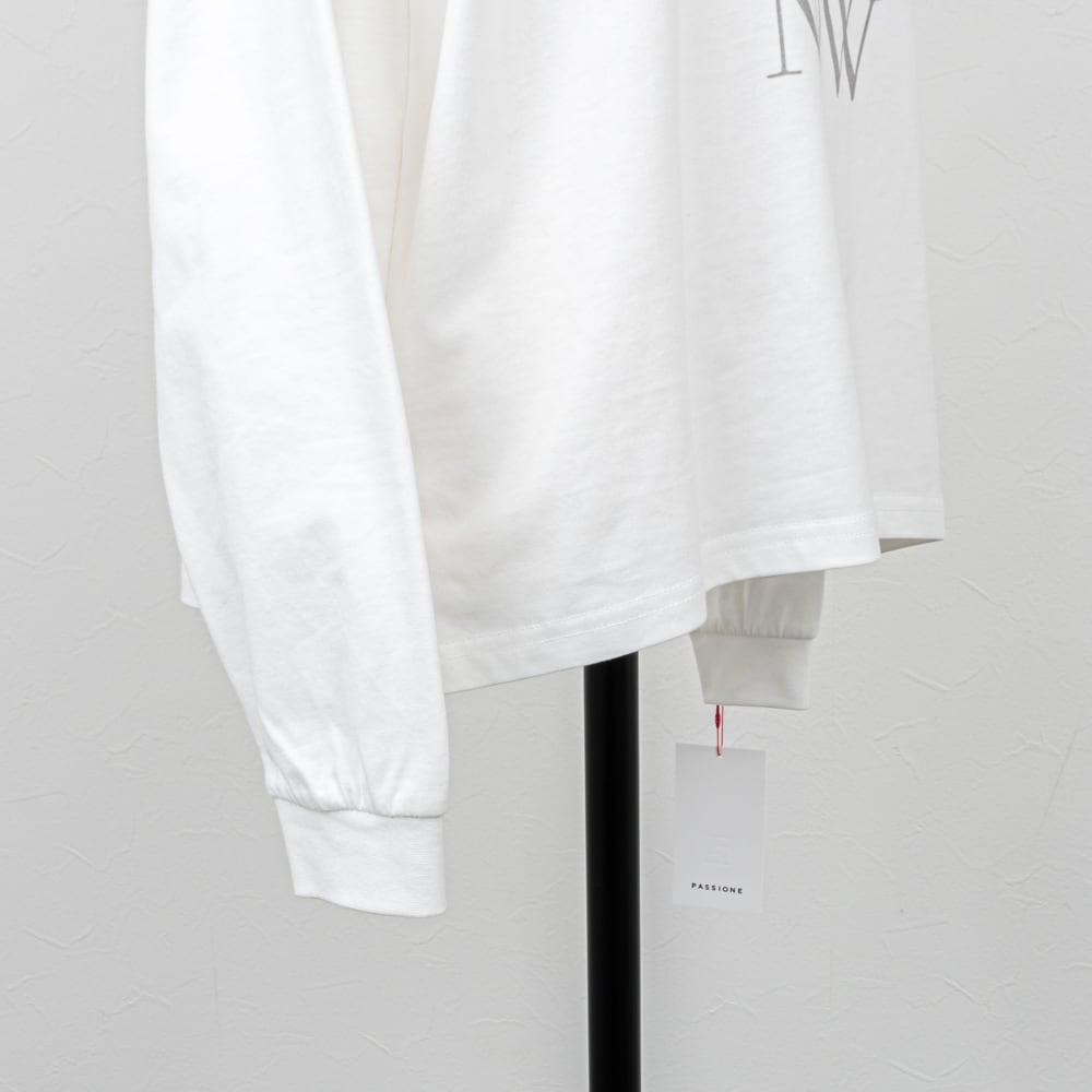 【PASSIONE/パシオーネ】箔プリントロゴ長袖カットソー(ホワイト)