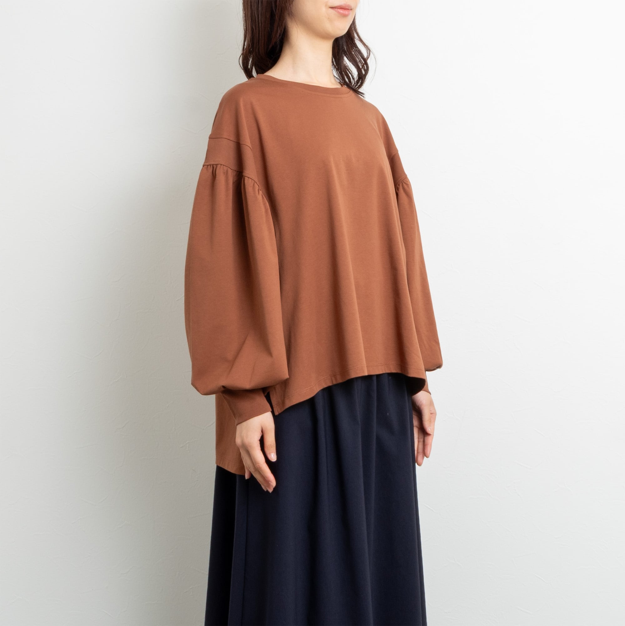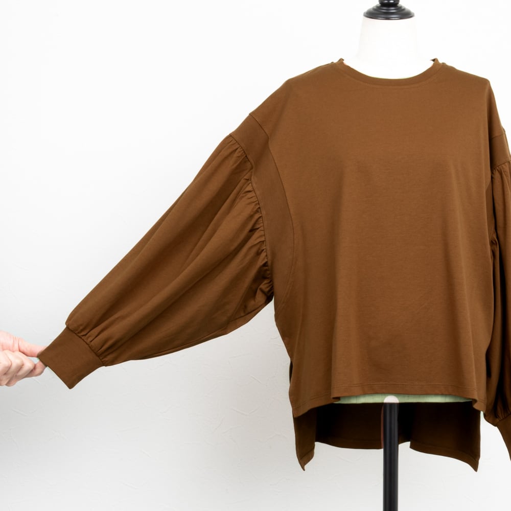 【RILATO/リラート】高密度ソロナシルケット袖ボリュームカットソー(ブラウン)