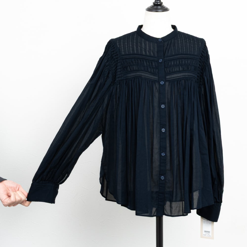 【cafune/カフネ】コットンボイルレースピンタックブラウス(ネイビー)