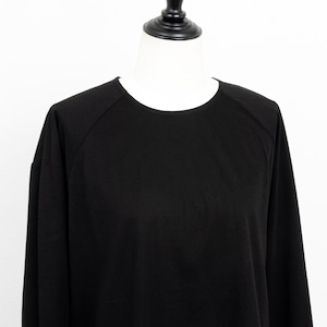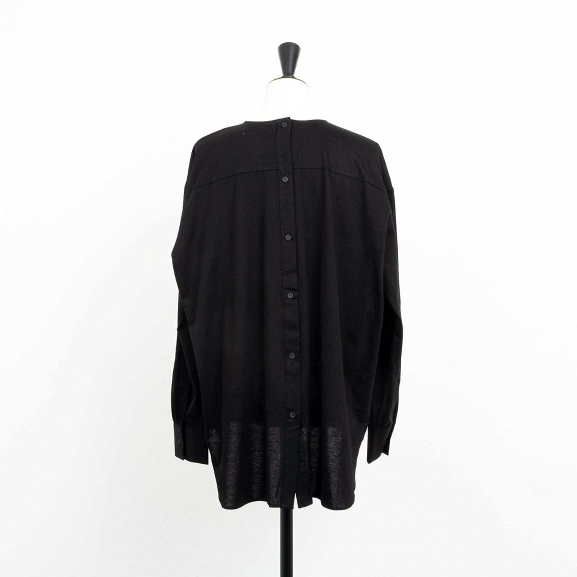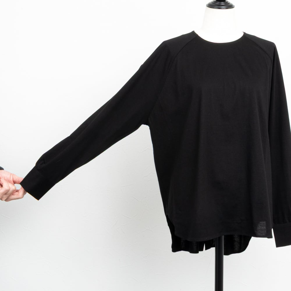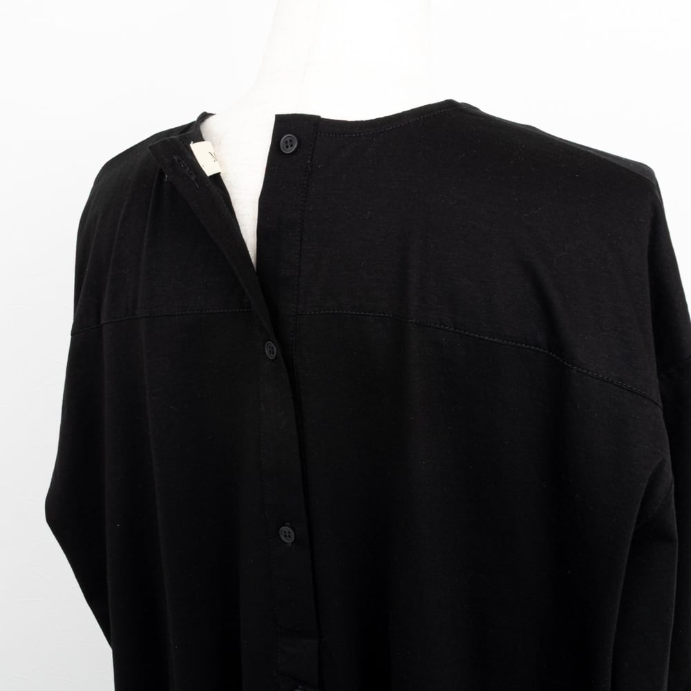 バックボタンに袖口のカフスで、シャツディティールのデザインを取り入れた長袖カットソー。
