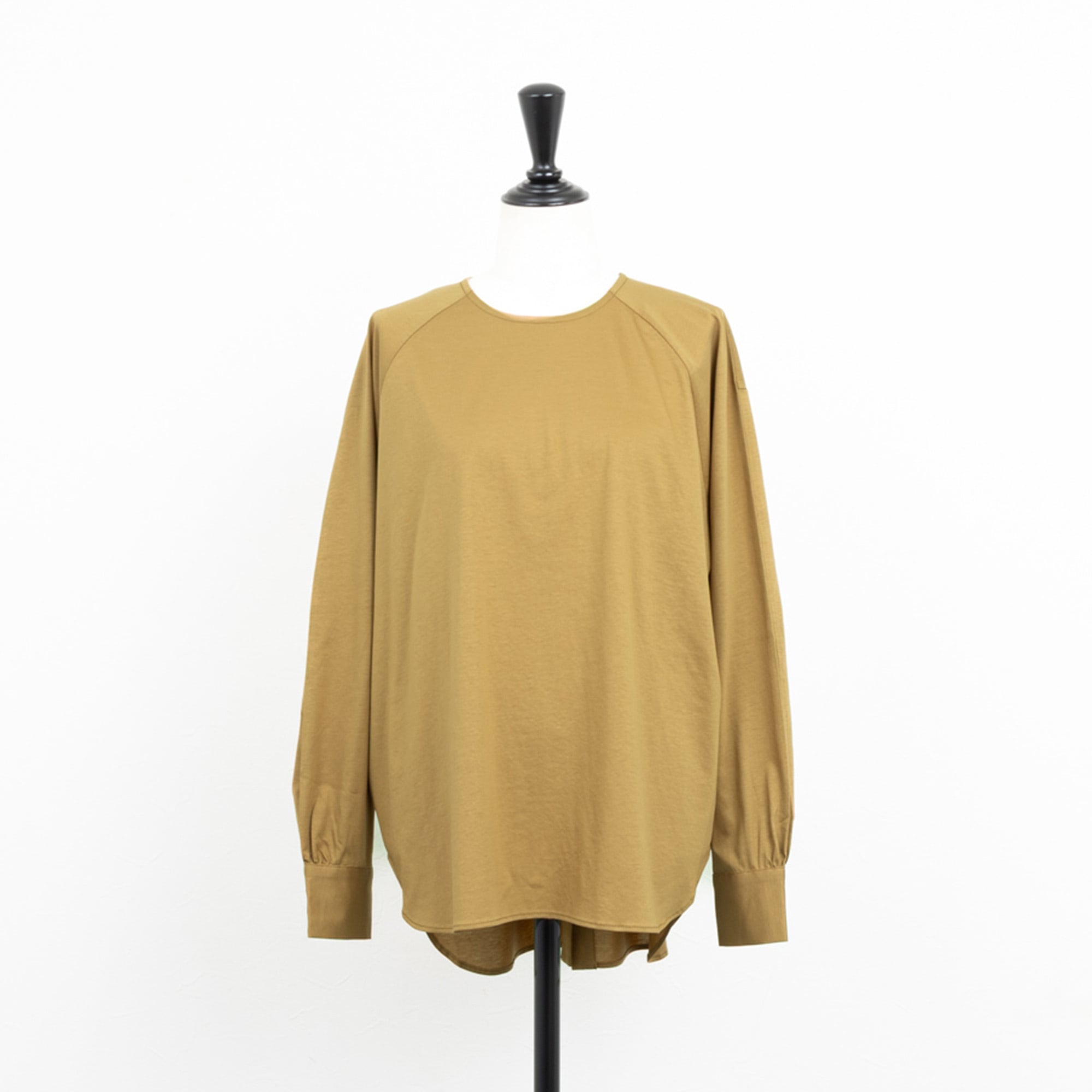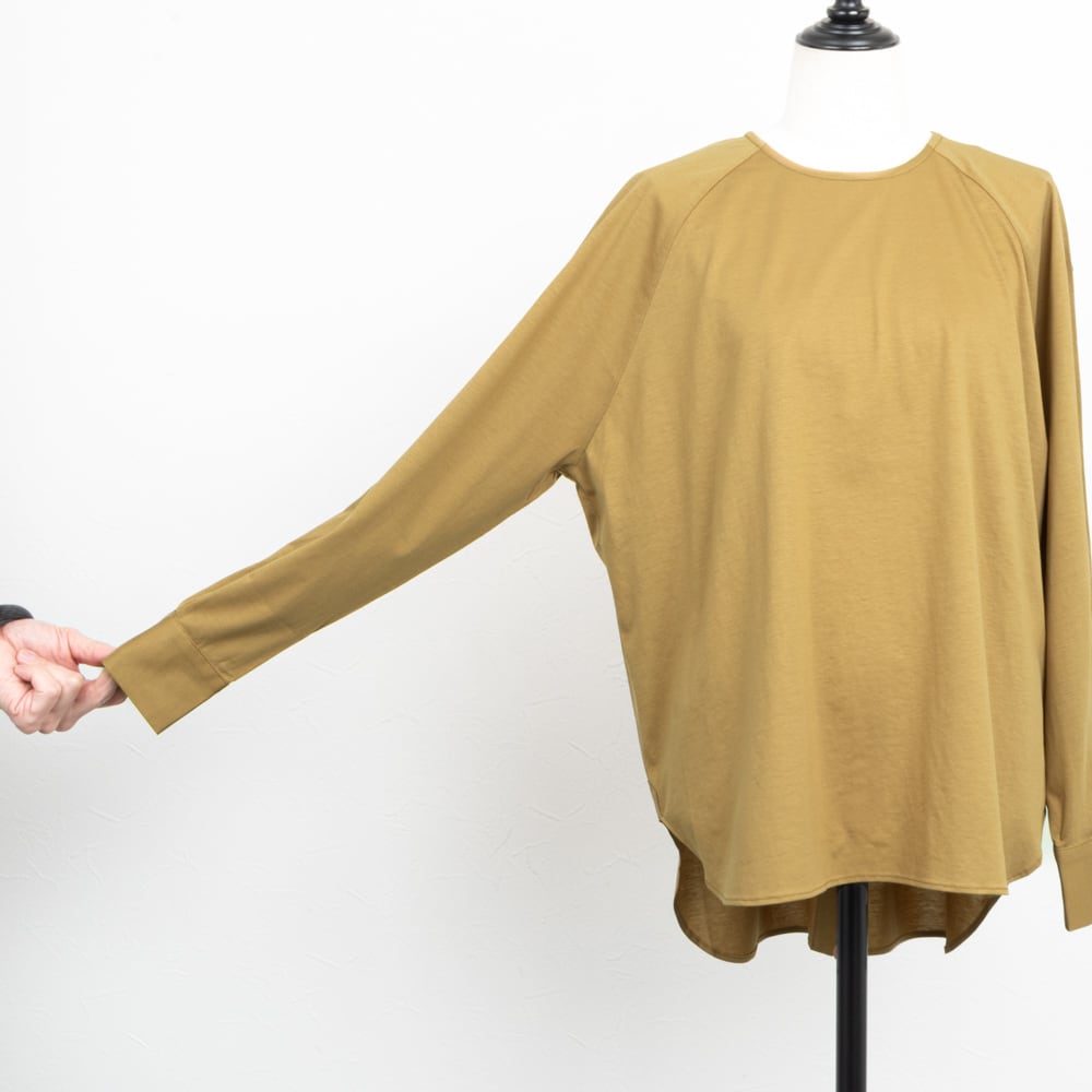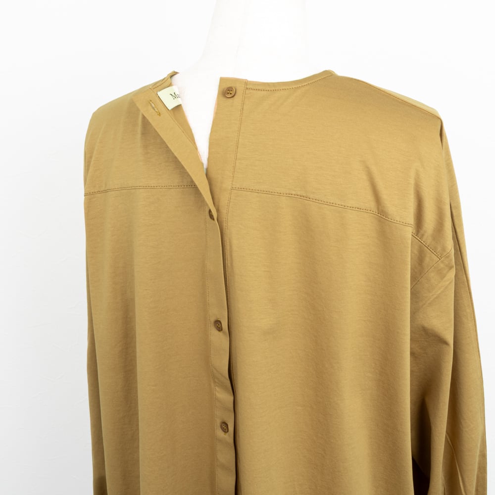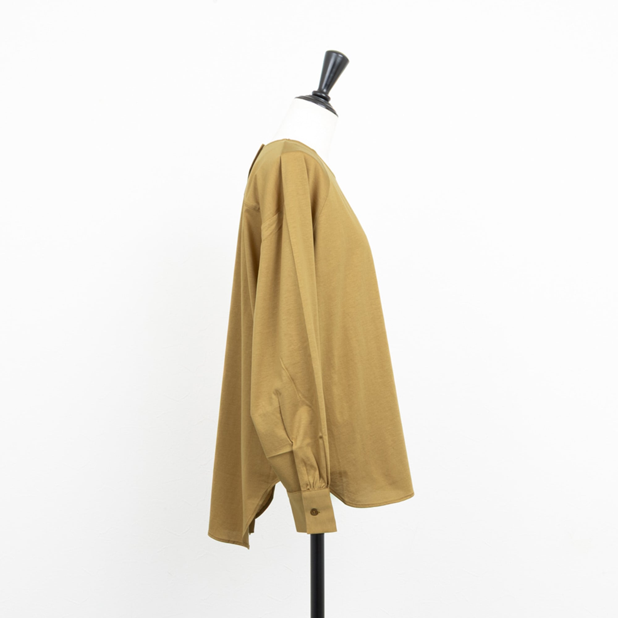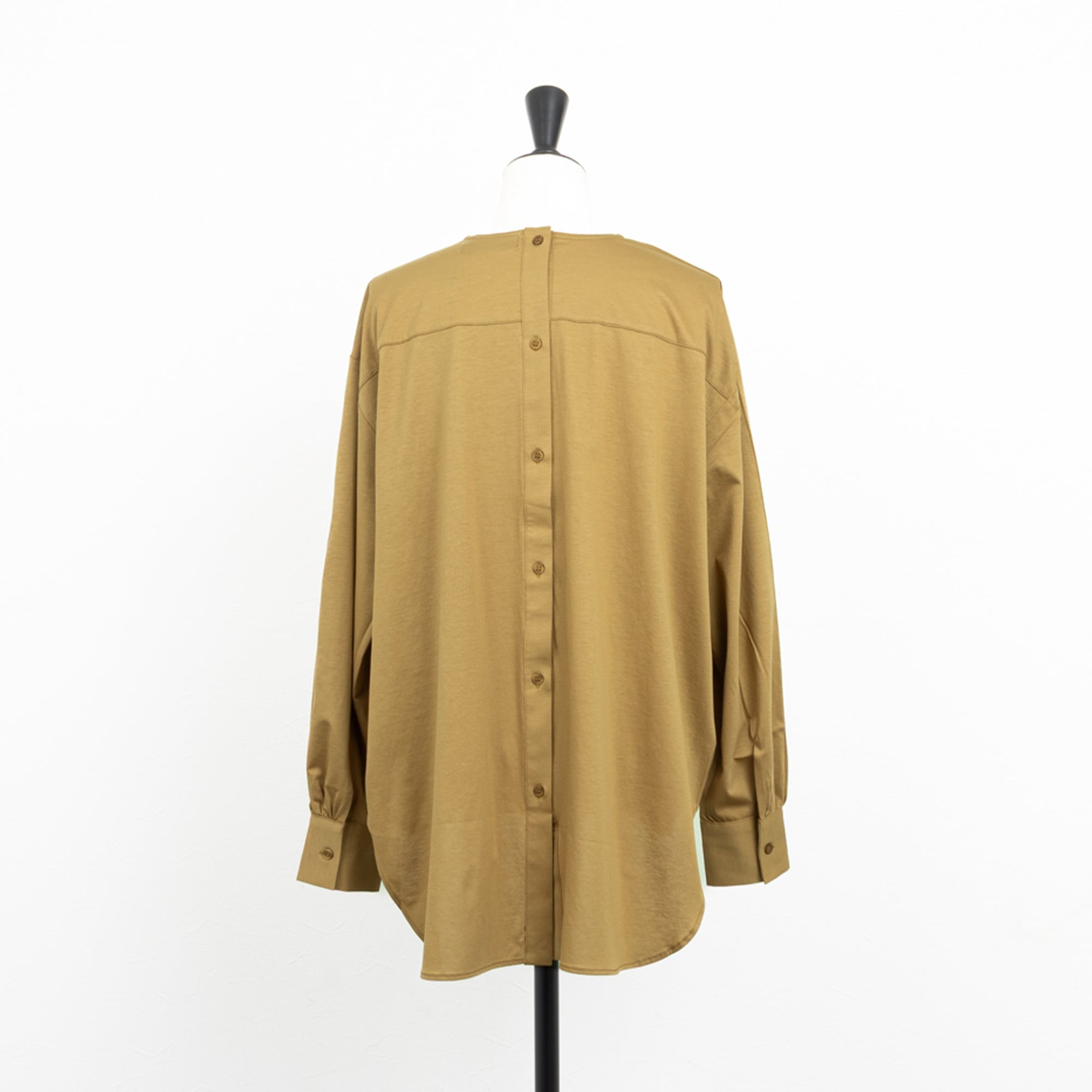 バックボタンに袖口のカフスで、シャツディティールのデザインを取り入れた長袖カットソー。